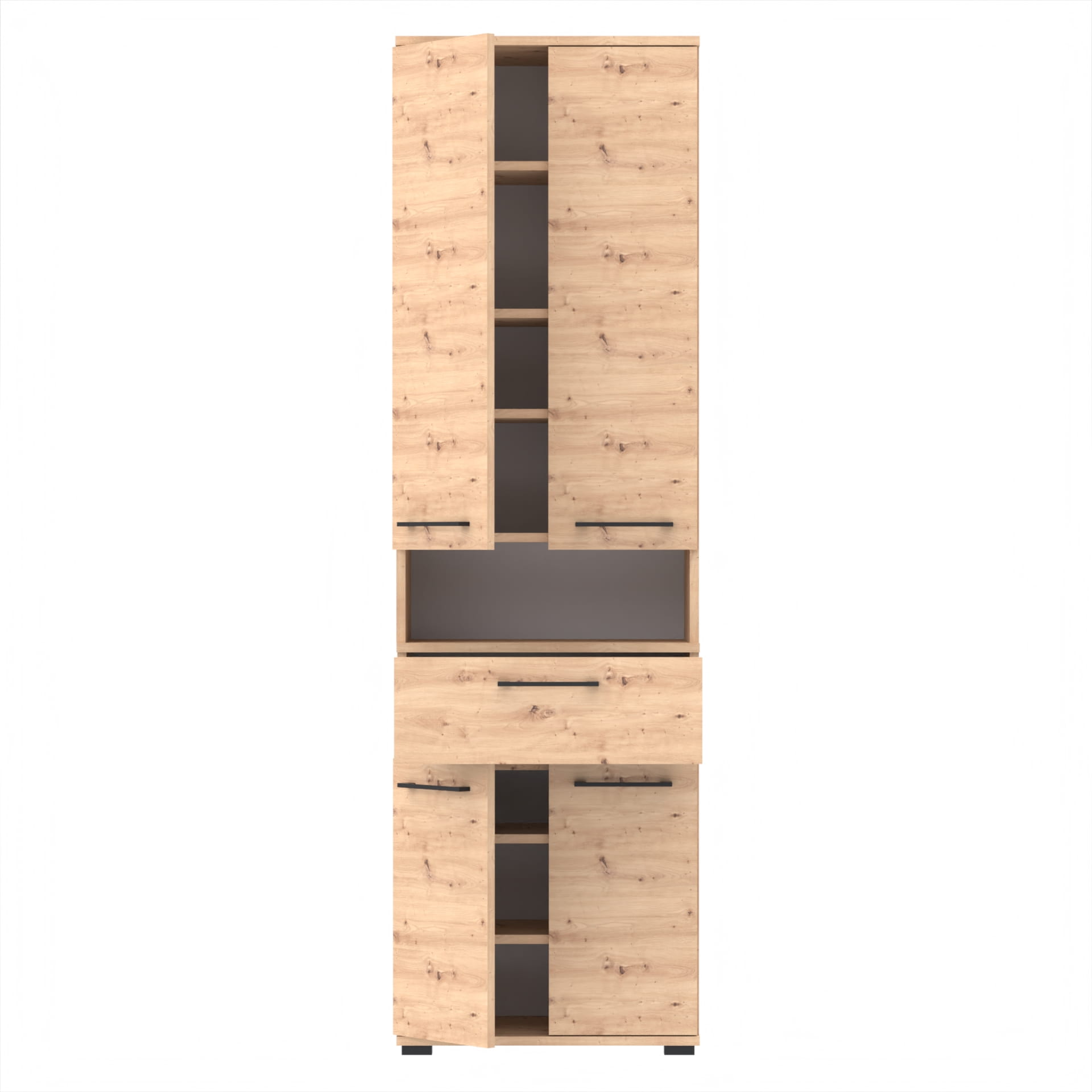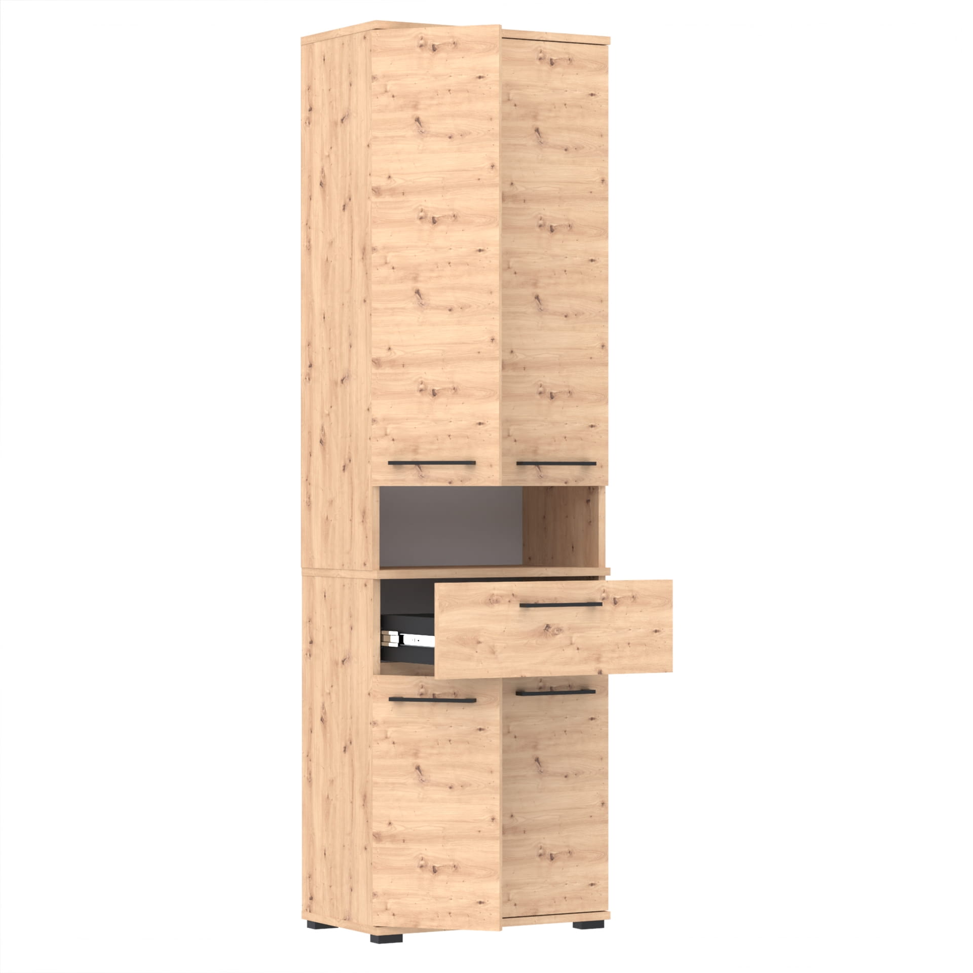 Szafa składa się z dwóch części. W dolnej części znajduje się szafka z 3 poziomami oraz szuflada TRES. Górna część - nadstawka posiada szafkę z czterema poziomami oraz otwartą półkę. Górna część nakłada się na dolną, tak by stanowiły całość.