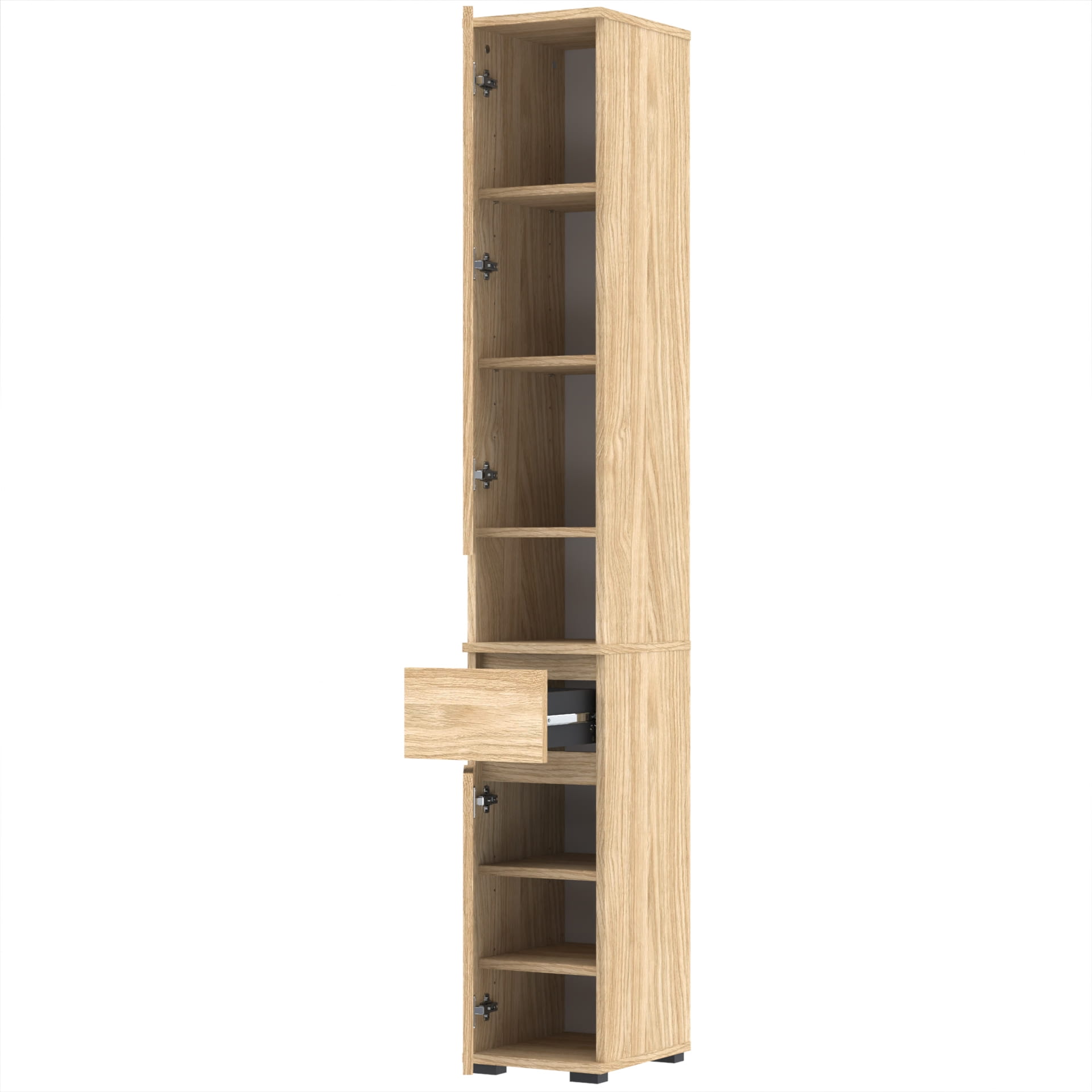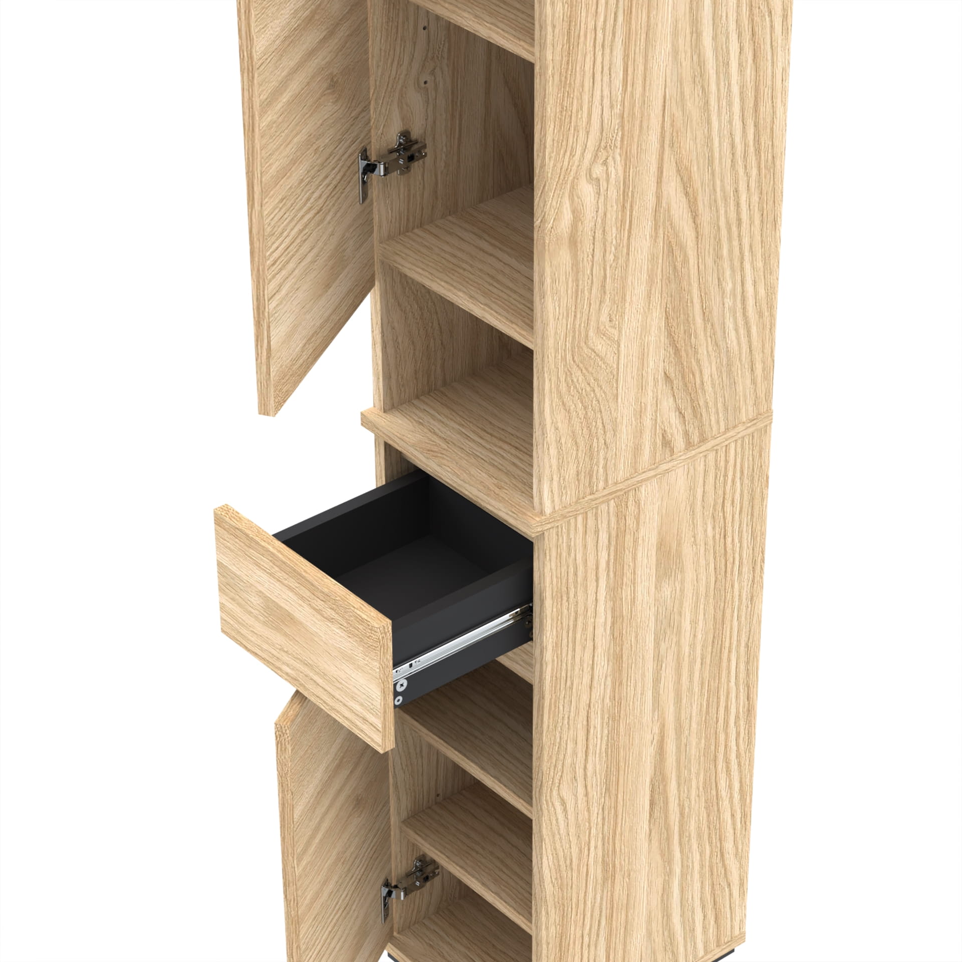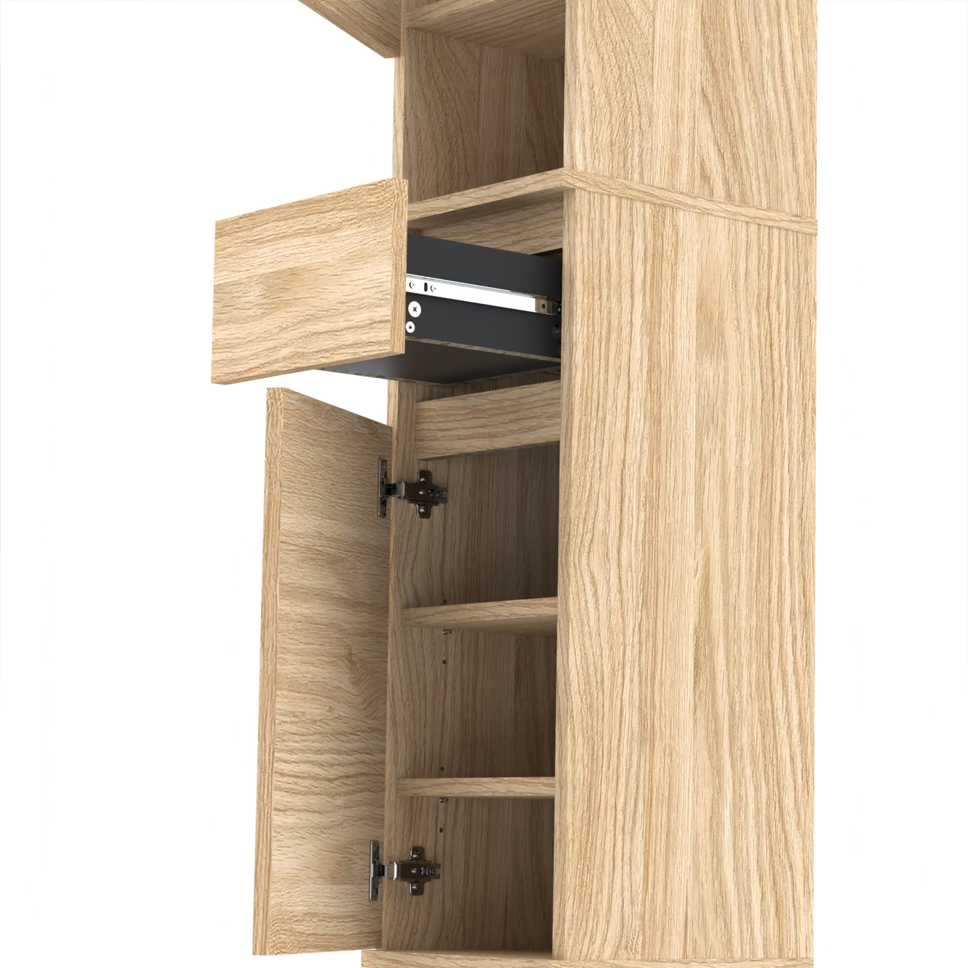 Szafa składa się z dwóch części. W dolnej części znajduje się szafka z 3 poziomami oraz szuflada TRES. Górna część - nadstawka posiada szafkę z czterema poziomami oraz otwartą półkę. Górna część nakłada się na dolną, tak by stanowiły całość.