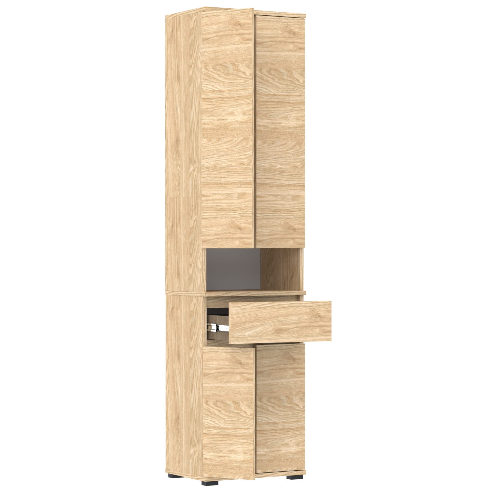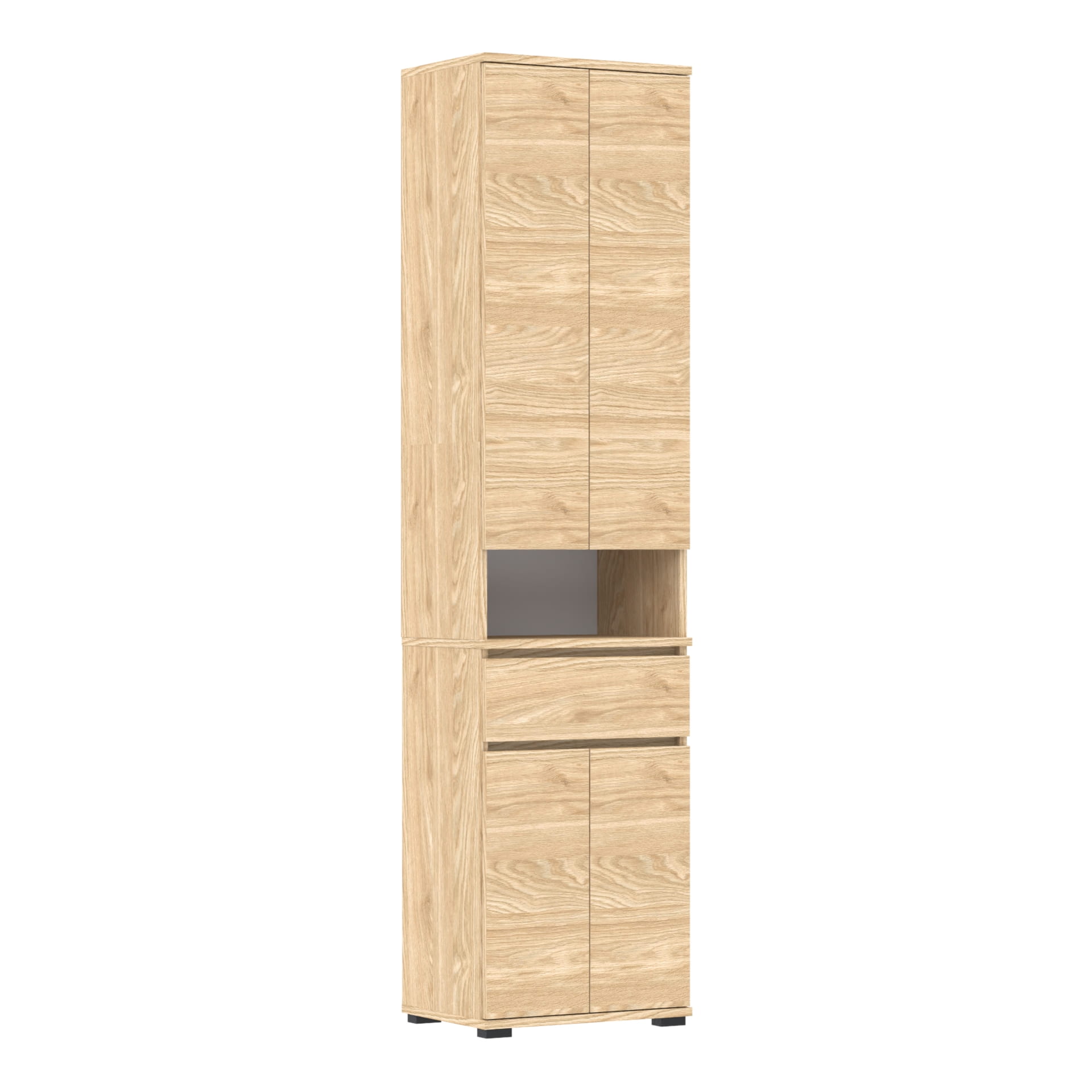 Górna część - nadstawka przynosi jeszcze więcej przestrzeni dzięki szafce z czterema poziomami oraz otwartej półce. Idealna do przechowywania butów lub ubrań. Górna część doskonale komponuje się z dolnym modułem, tworząc spójną i estetyczną całość.