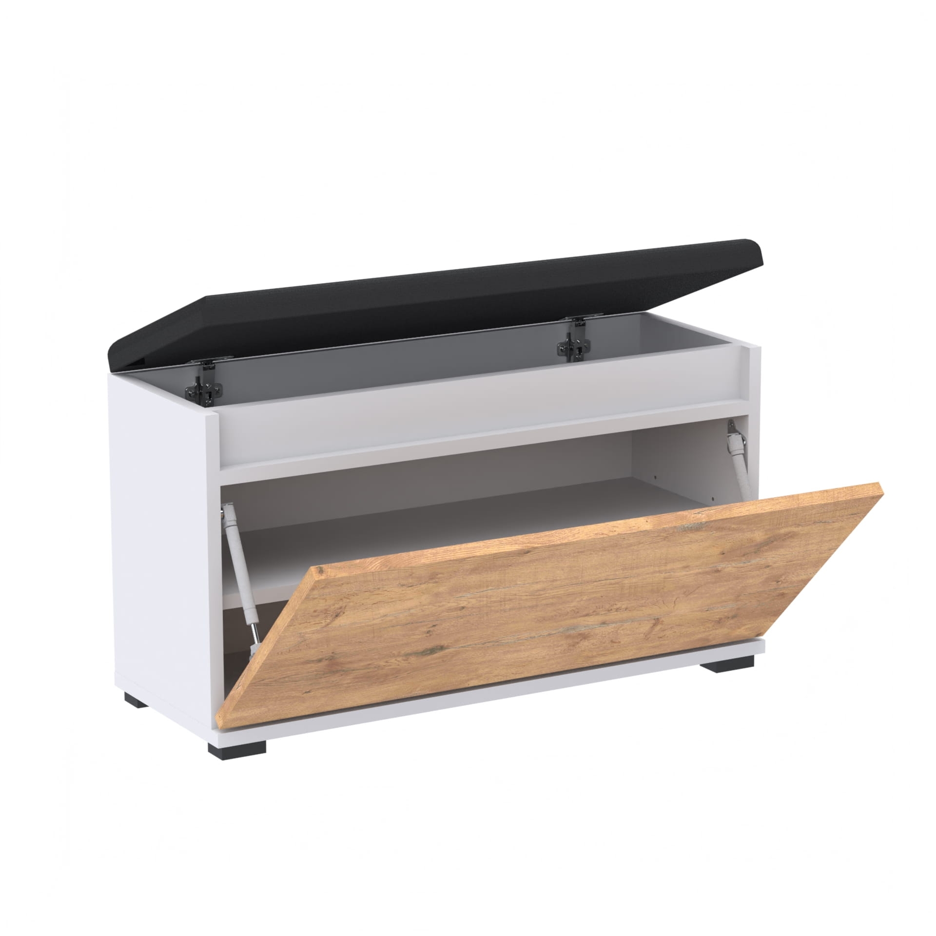 Szafka na buty z siedziskiem tapicerowanym i schowkiem