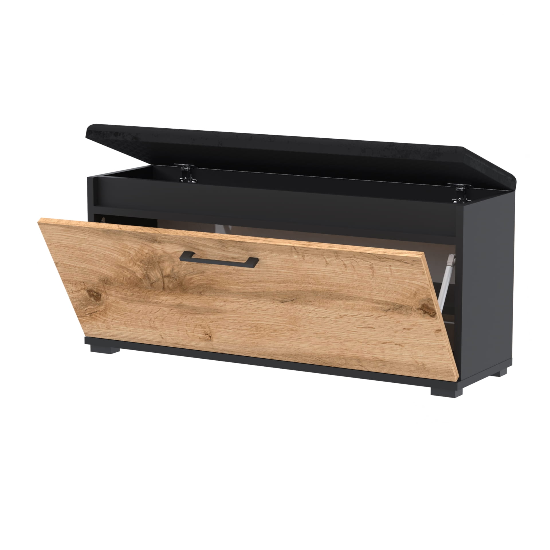 Szafka na buty z siedziskiem tapicerowanym i schowkiem