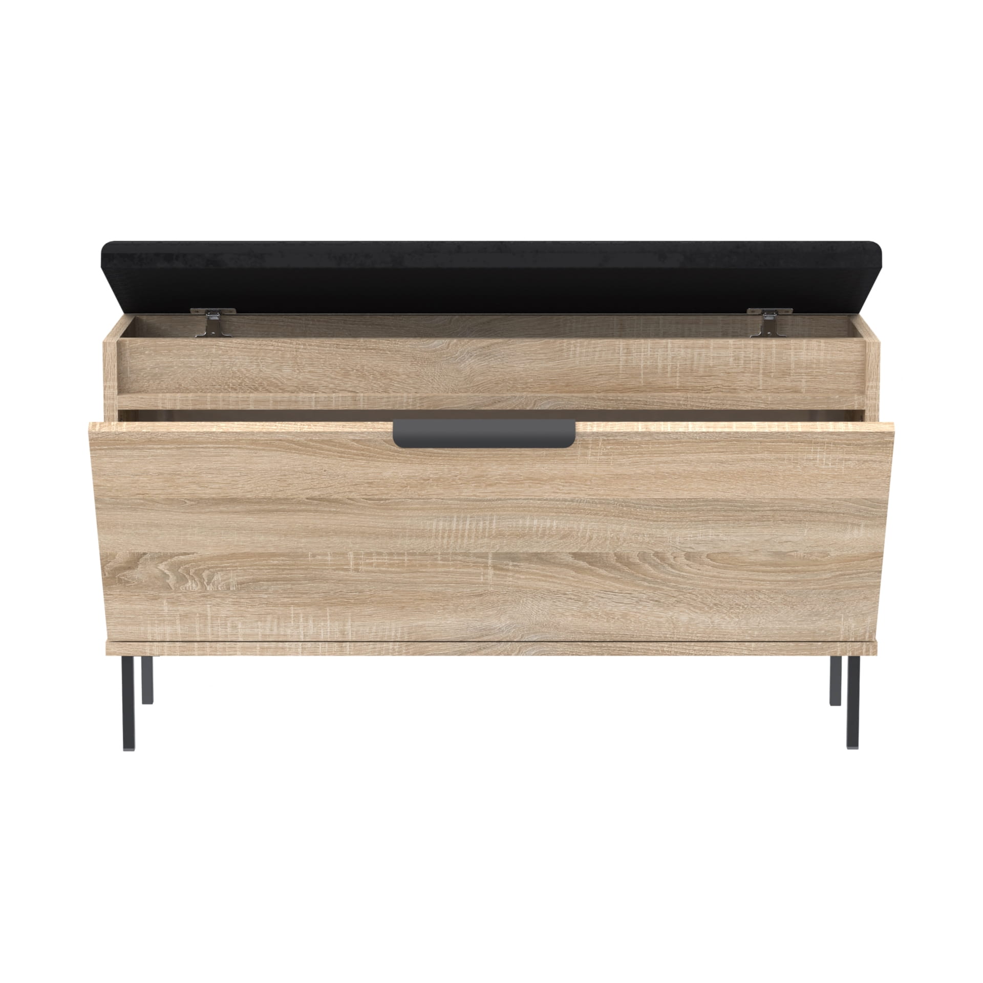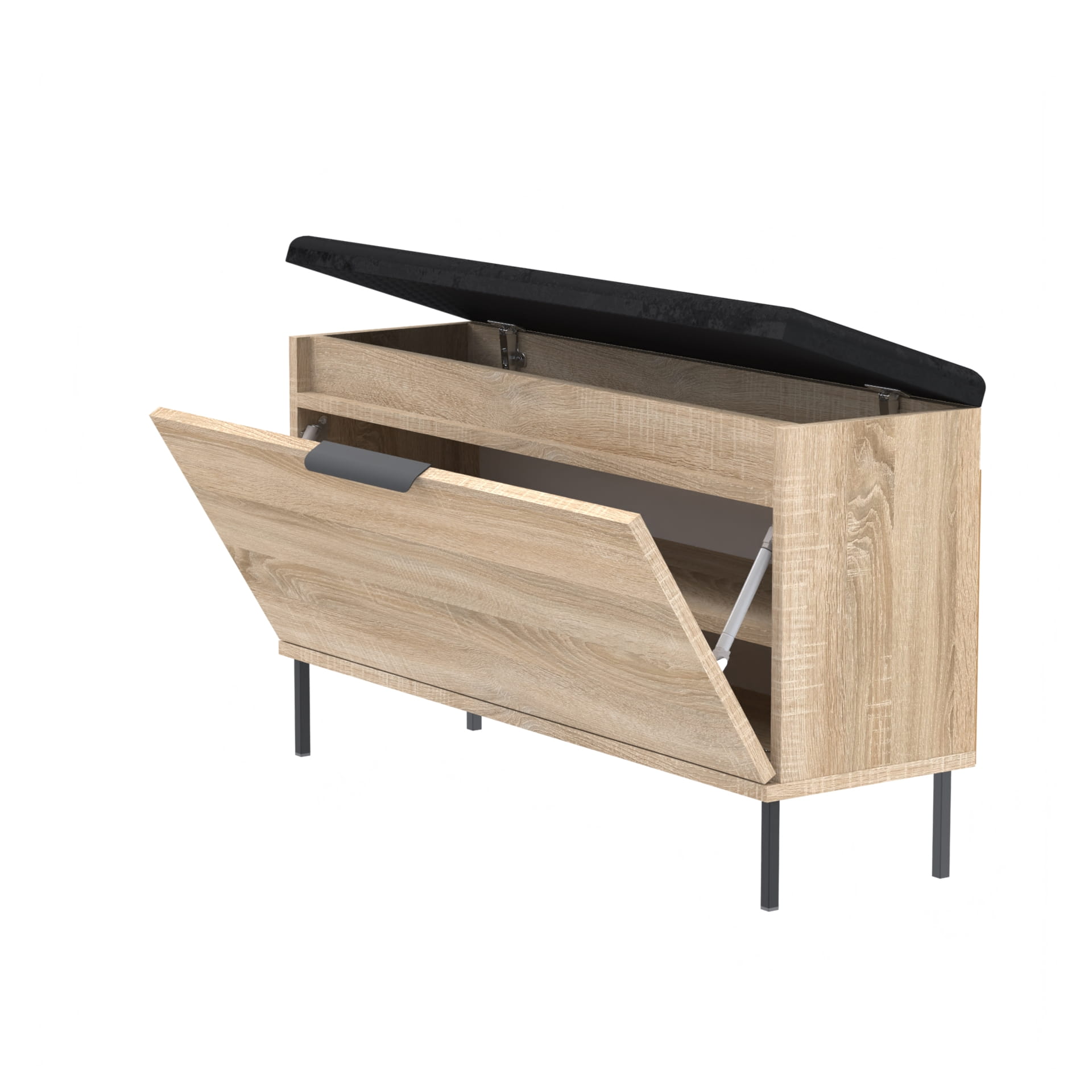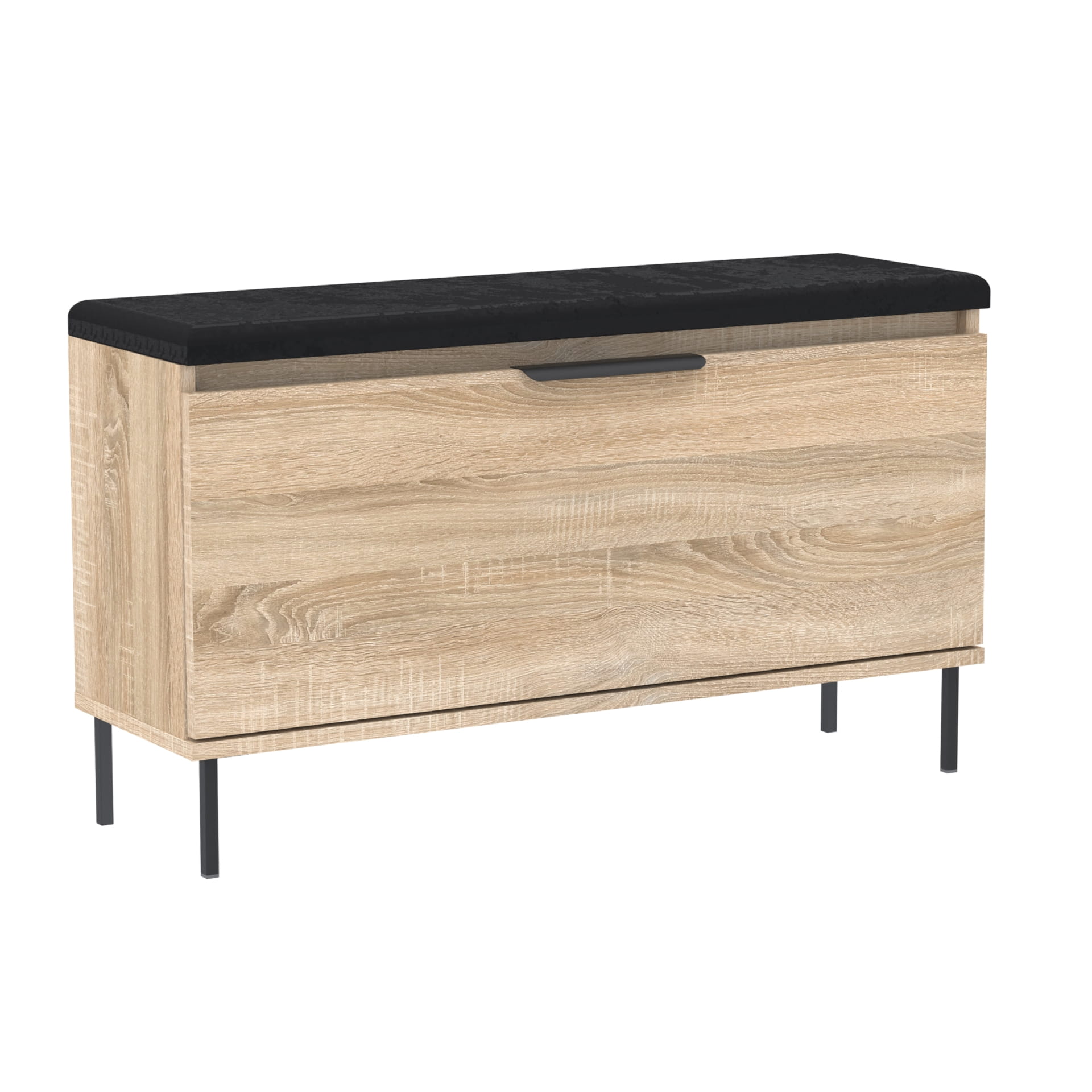 Funkcjonalna szafka na buty z pełnymi drzwiami, eleganckim metalowym uchwytem, wygodnym siedziskiem oraz dodatkowym schowkiem na drobne akcesoria. Doskonały wybór do przedpokoju – łączy estetykę z praktycznością.