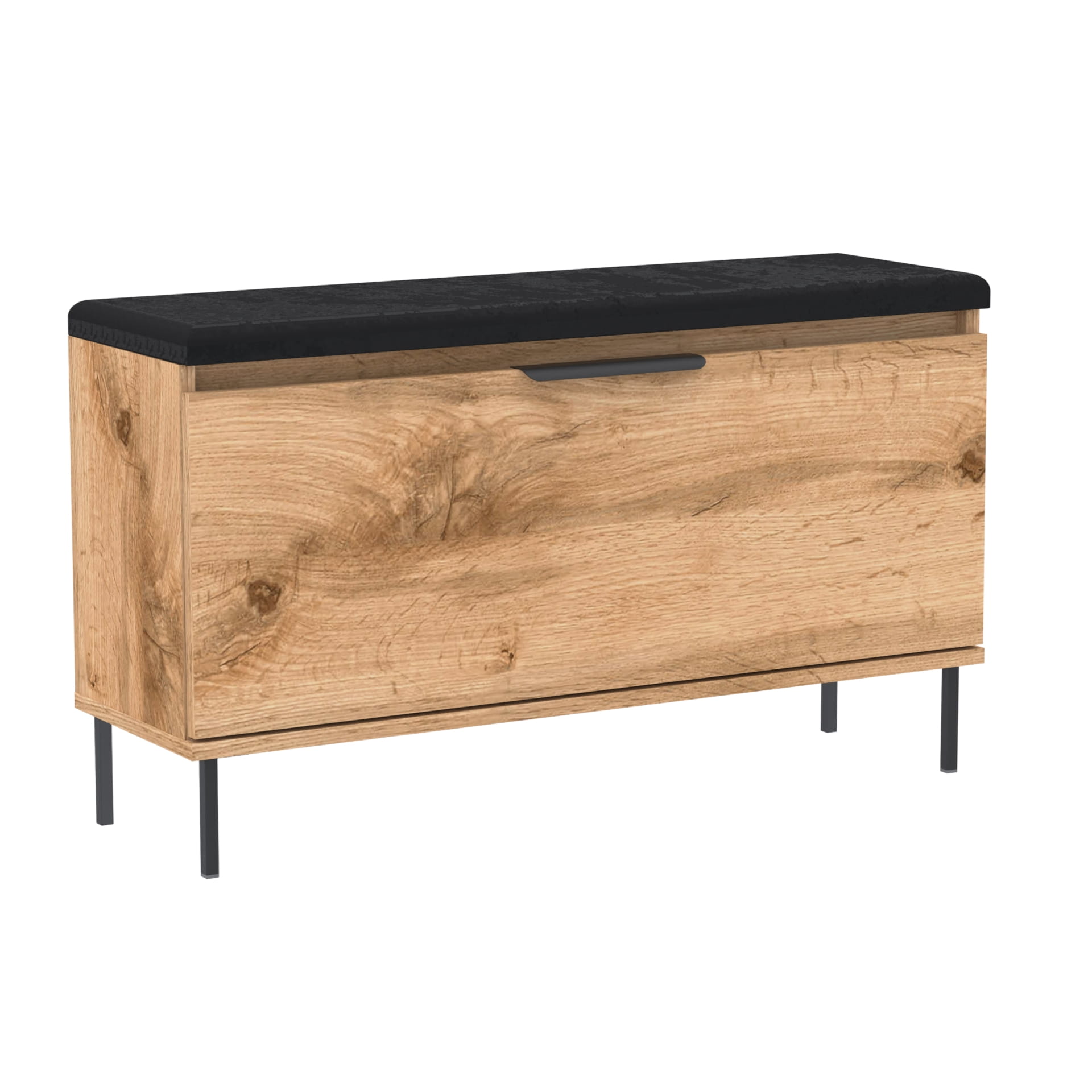Praktyczna i stylowa szafka na buty z pełnymi drzwiami, solidnym metalowym uchwytem, miękkim siedziskiem oraz dodatkowym schowkiem na akcesoria. Idealnie sprawdzi się w przedpokoju, oferując wygodę i estetyczny wygląd w jednym.