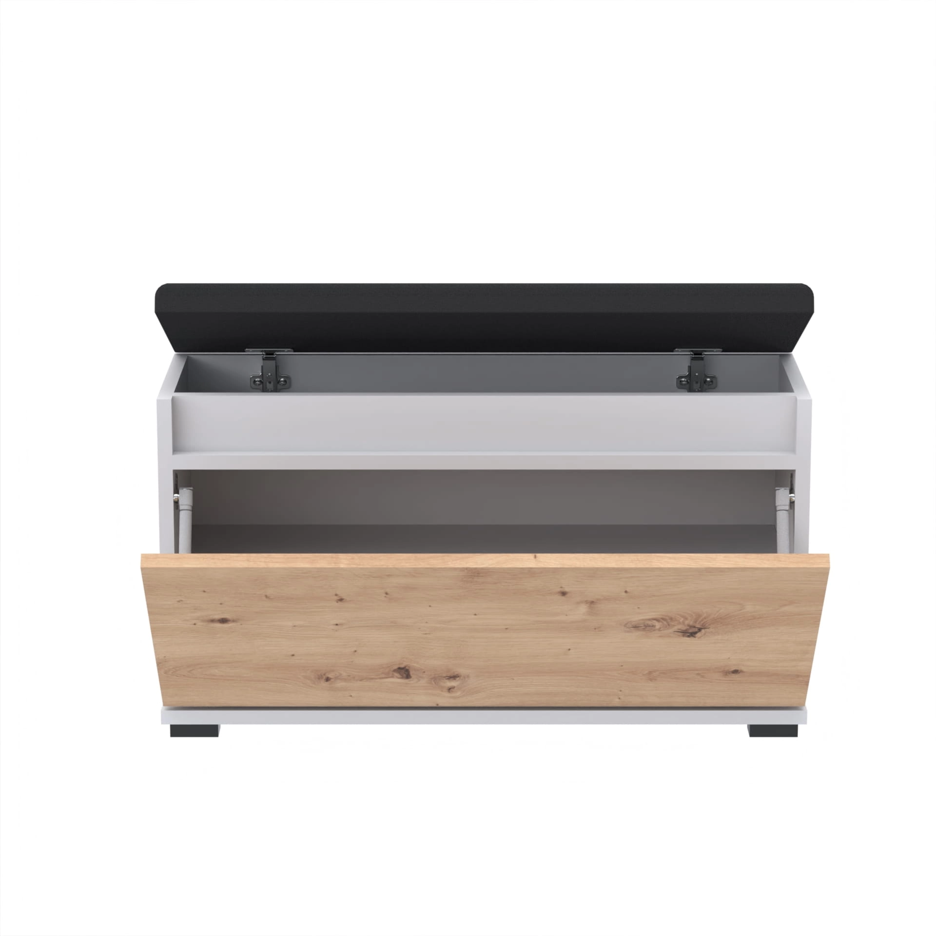 Szafka na buty z siedziskiem tapicerowanym i schowkiem