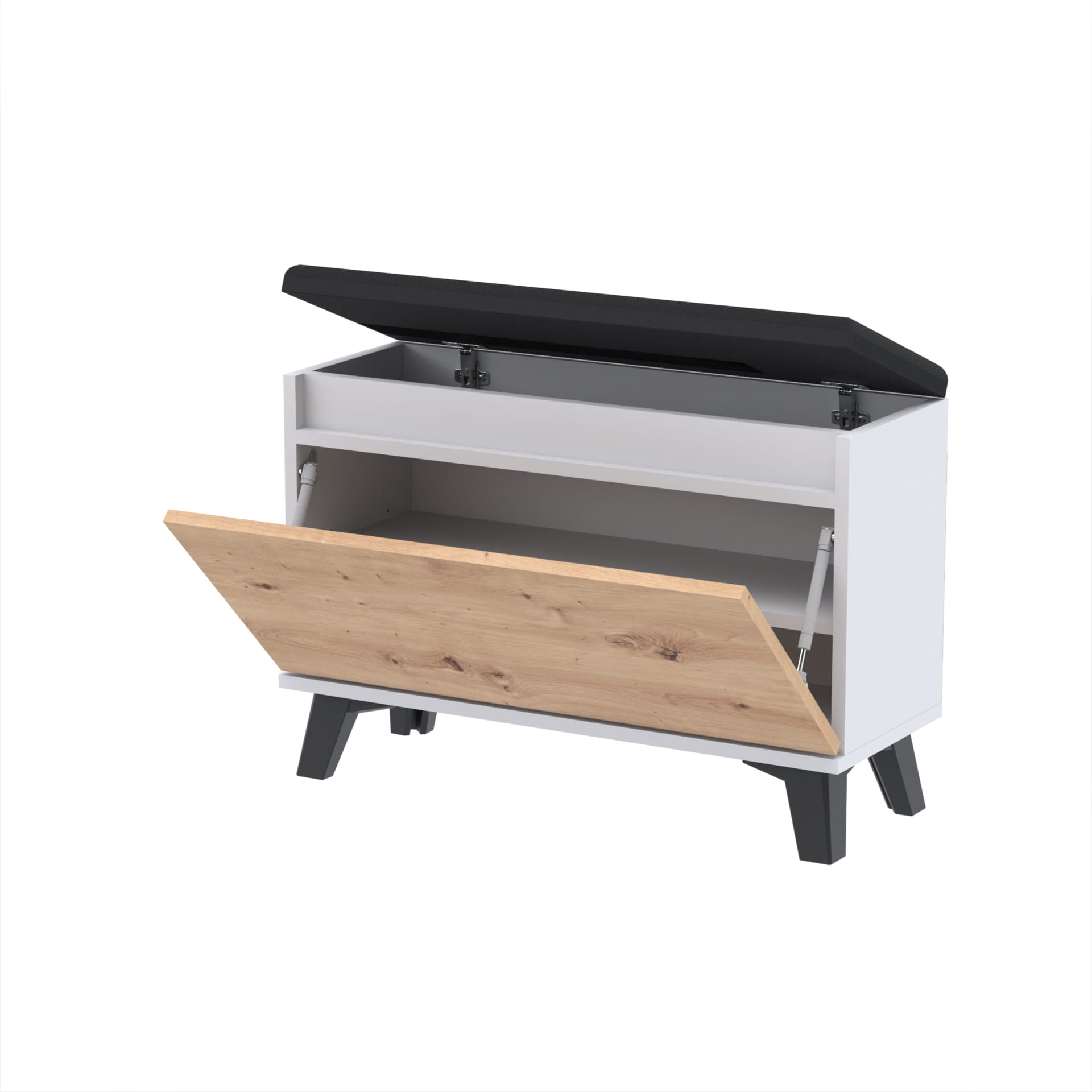 Szafka na buty z siedziskiem tapicerowanym i schowkiem