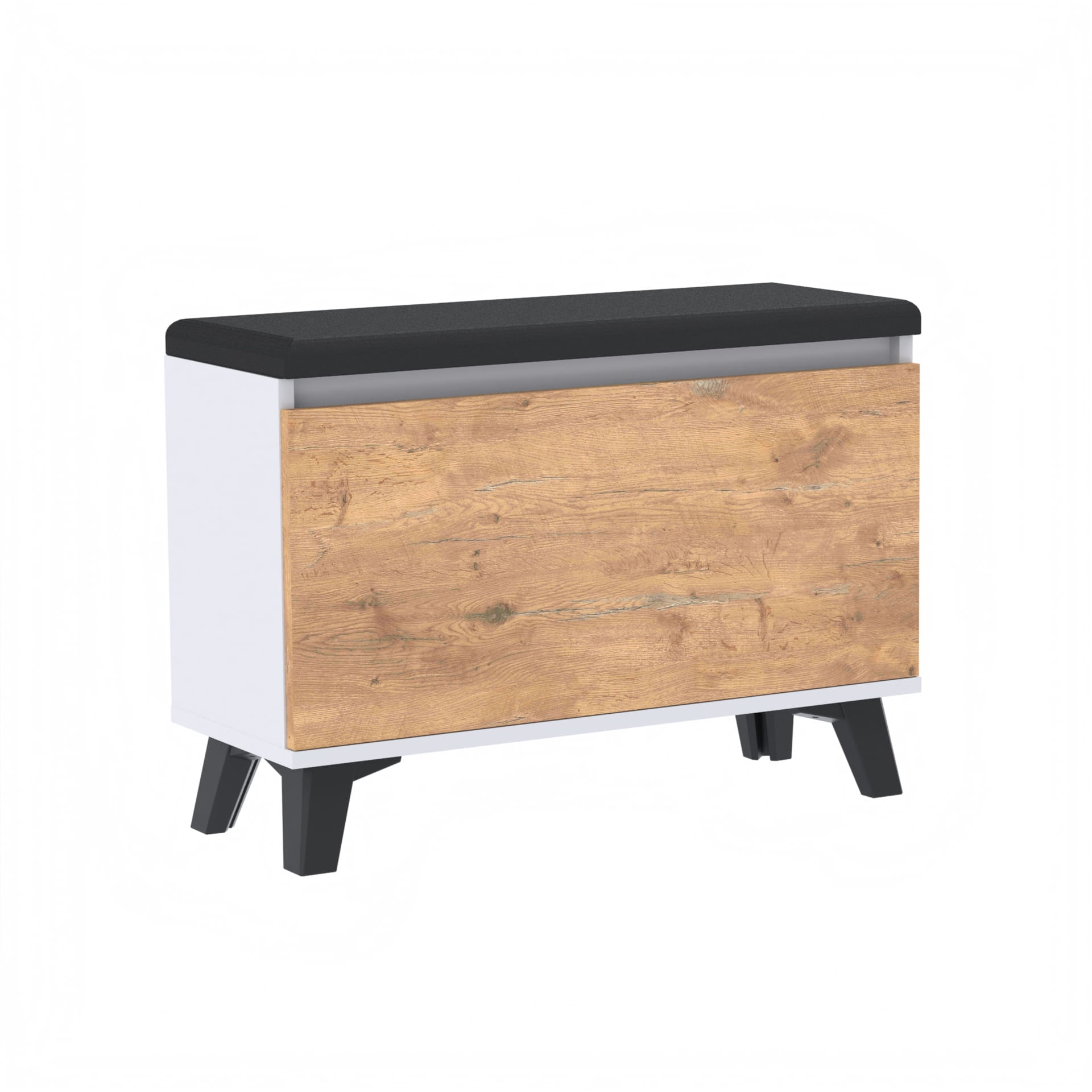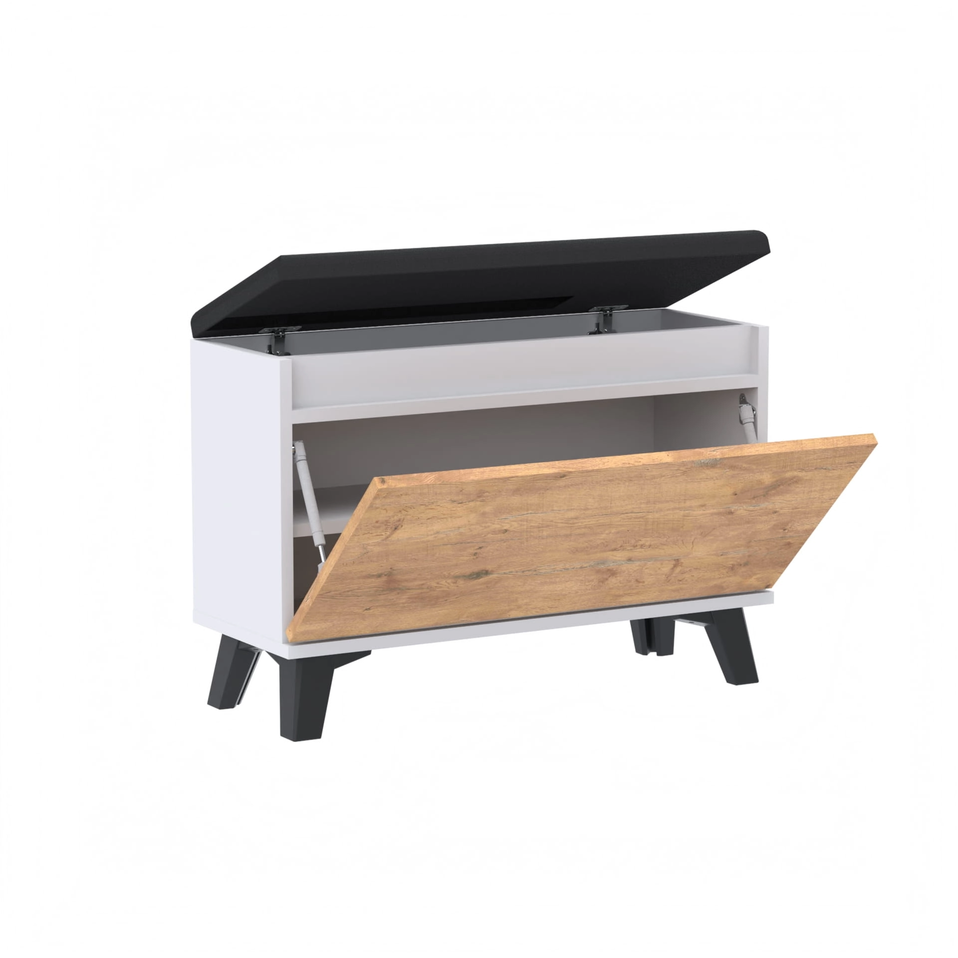 Szafka na buty z siedziskiem tapicerowanym i schowkiem
