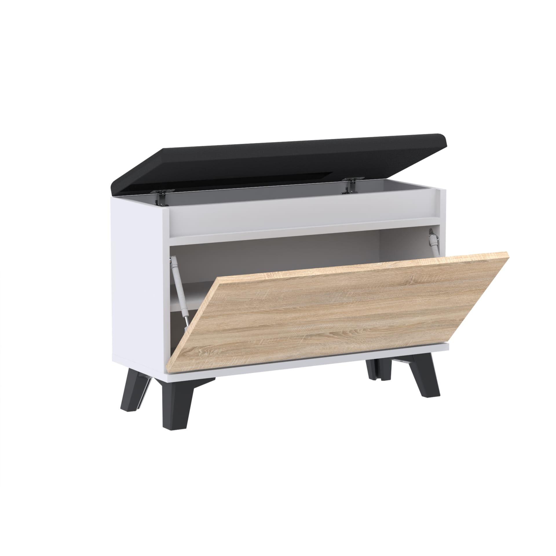Szafka na buty z siedziskiem tapicerowanym i schowkiem