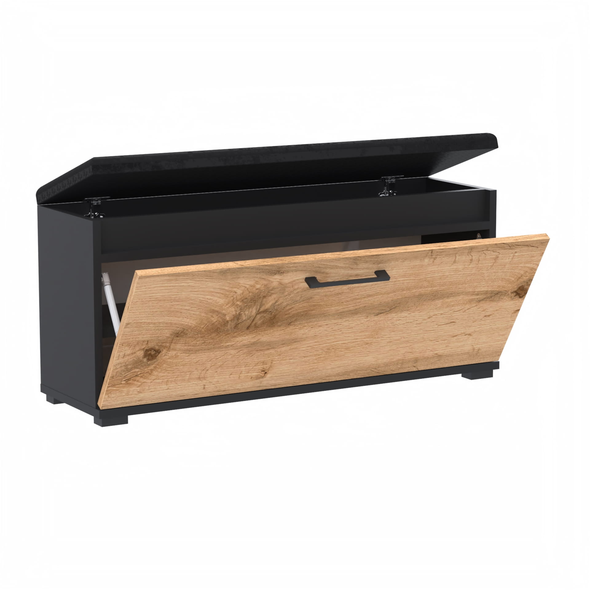 Szafka na buty z siedziskiem tapicerowanym i schowkiem