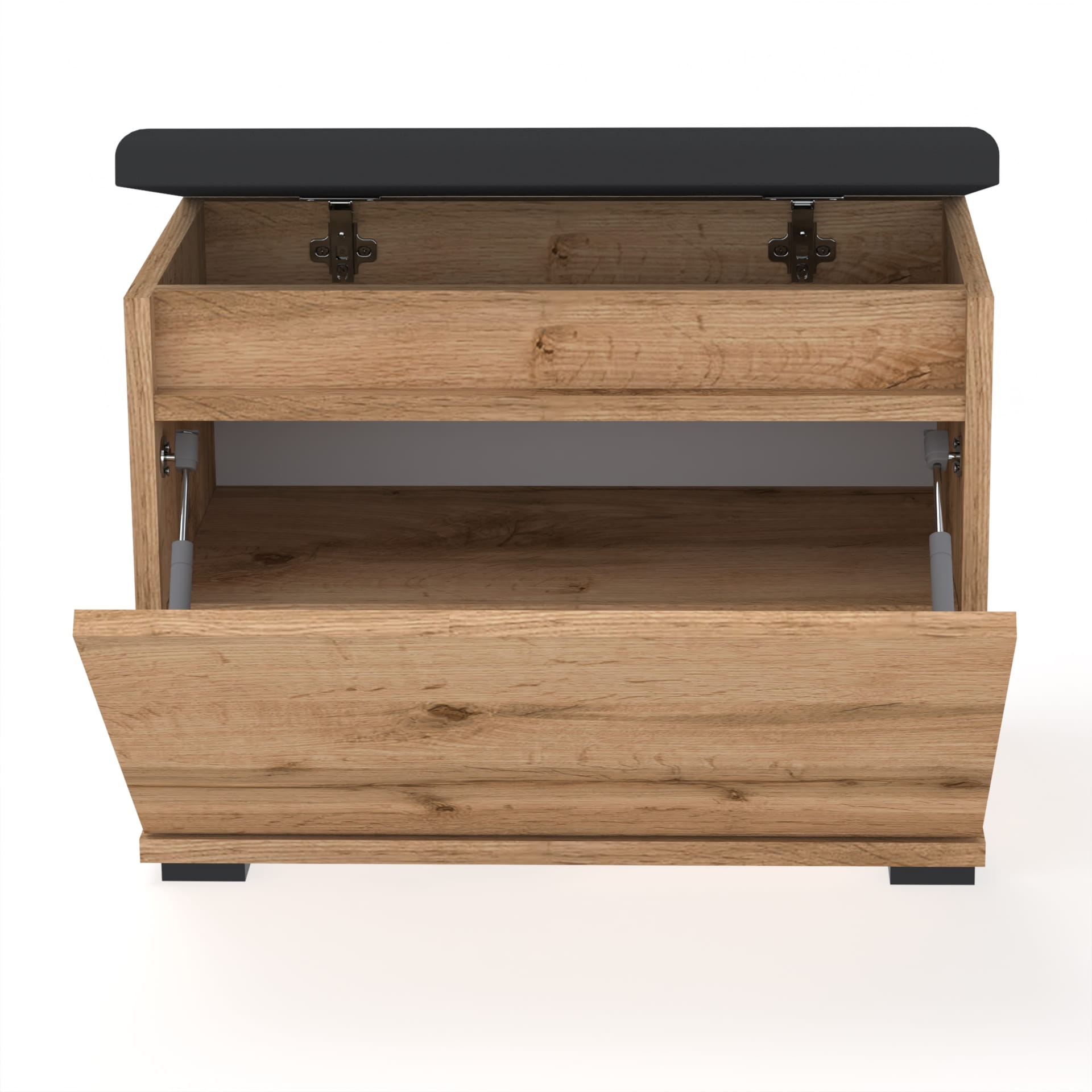 Szafka na buty z siedziskiem tapicerowanym i schowkiem