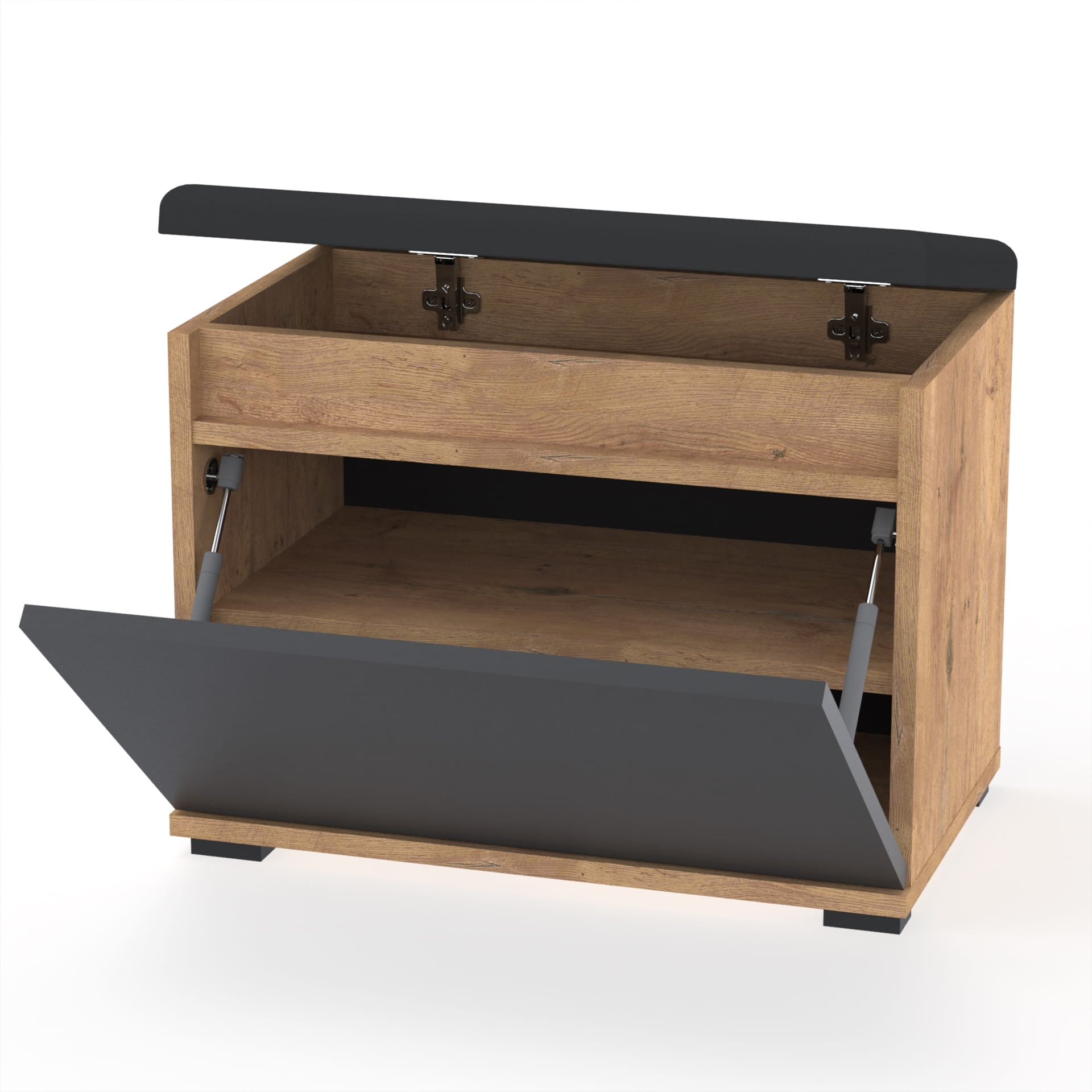 Szafka na buty z siedziskiem tapicerowanym i schowkiem
