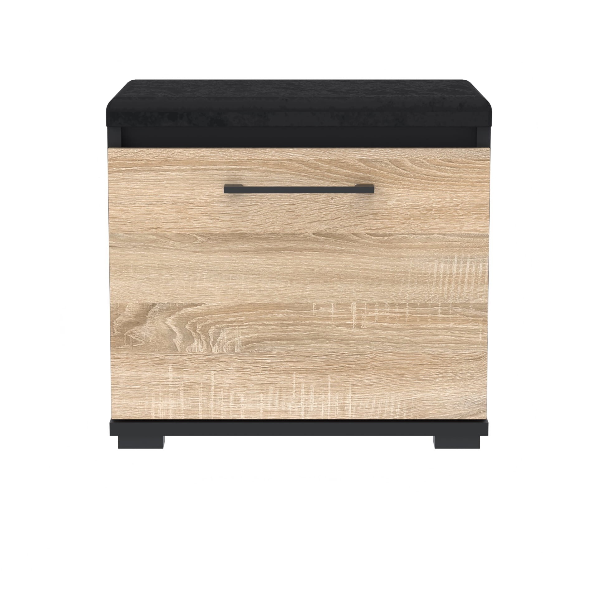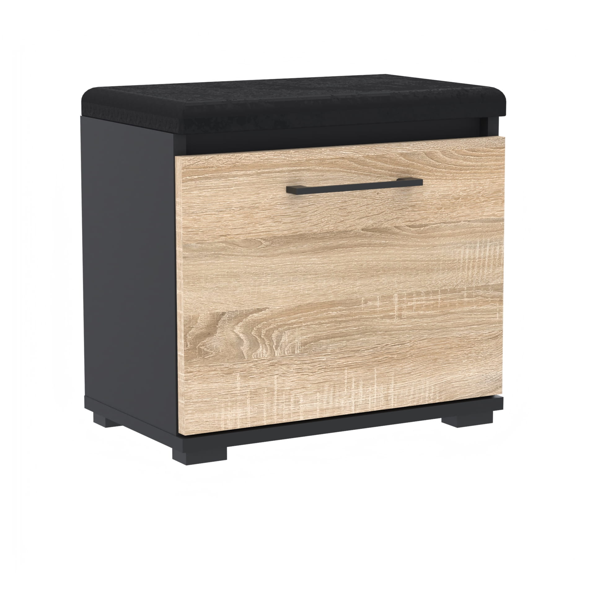 Szafka na buty, drzwi pełne z uchwytem metalowym, siedziskiem i schowkiem na przybory,