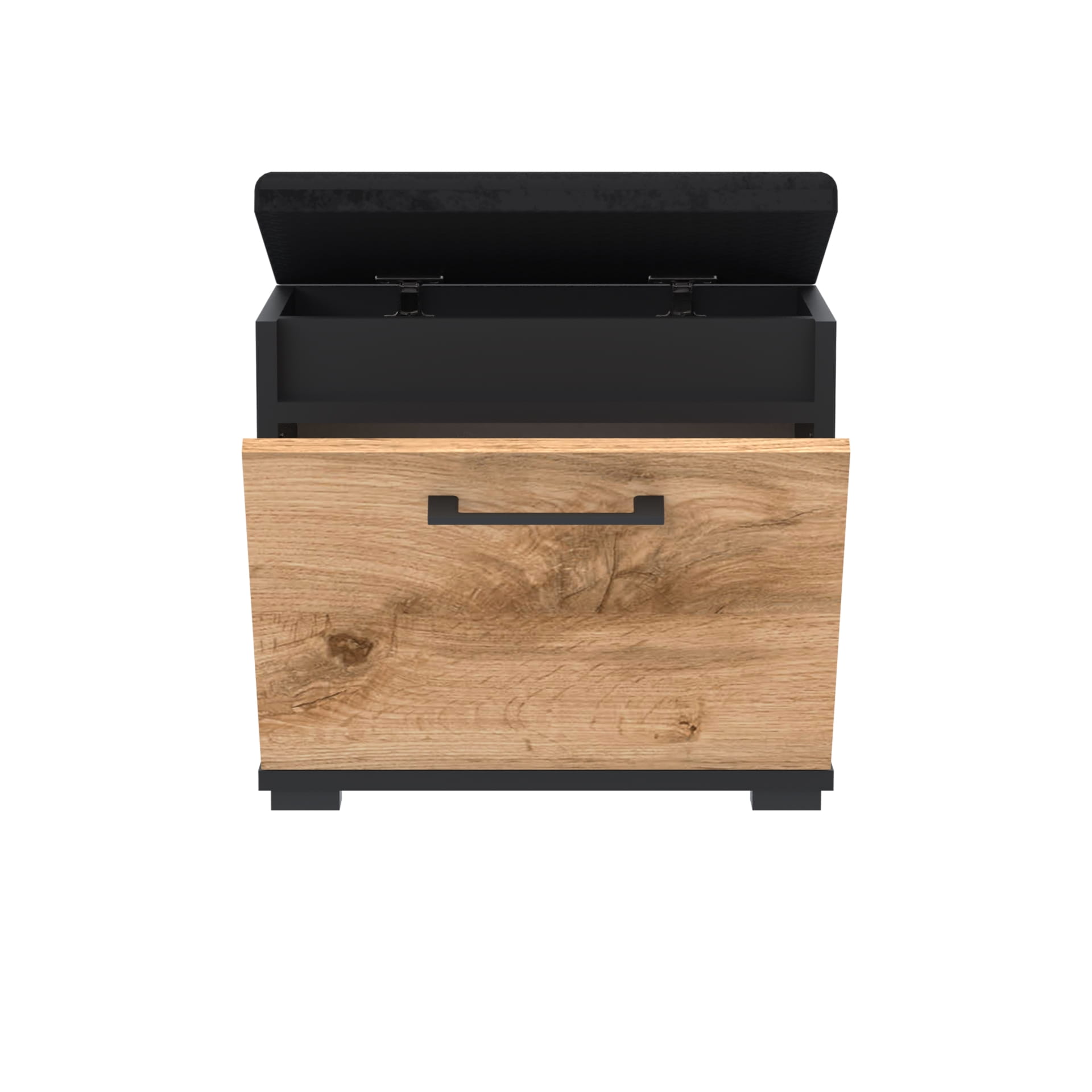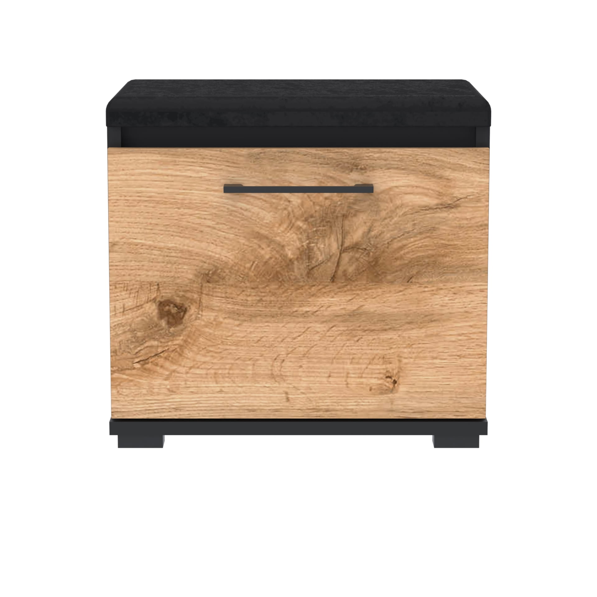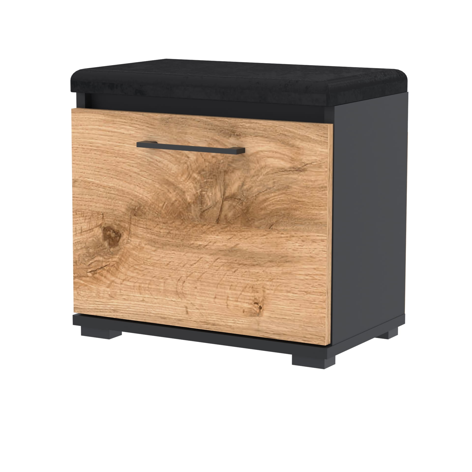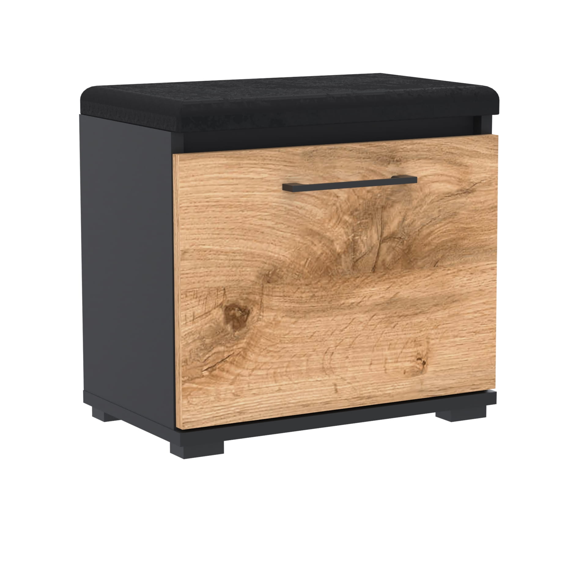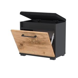 Szafka na buty, drzwi pełne z uchwytem metalowym, siedziskiem i schowkiem na przybory,