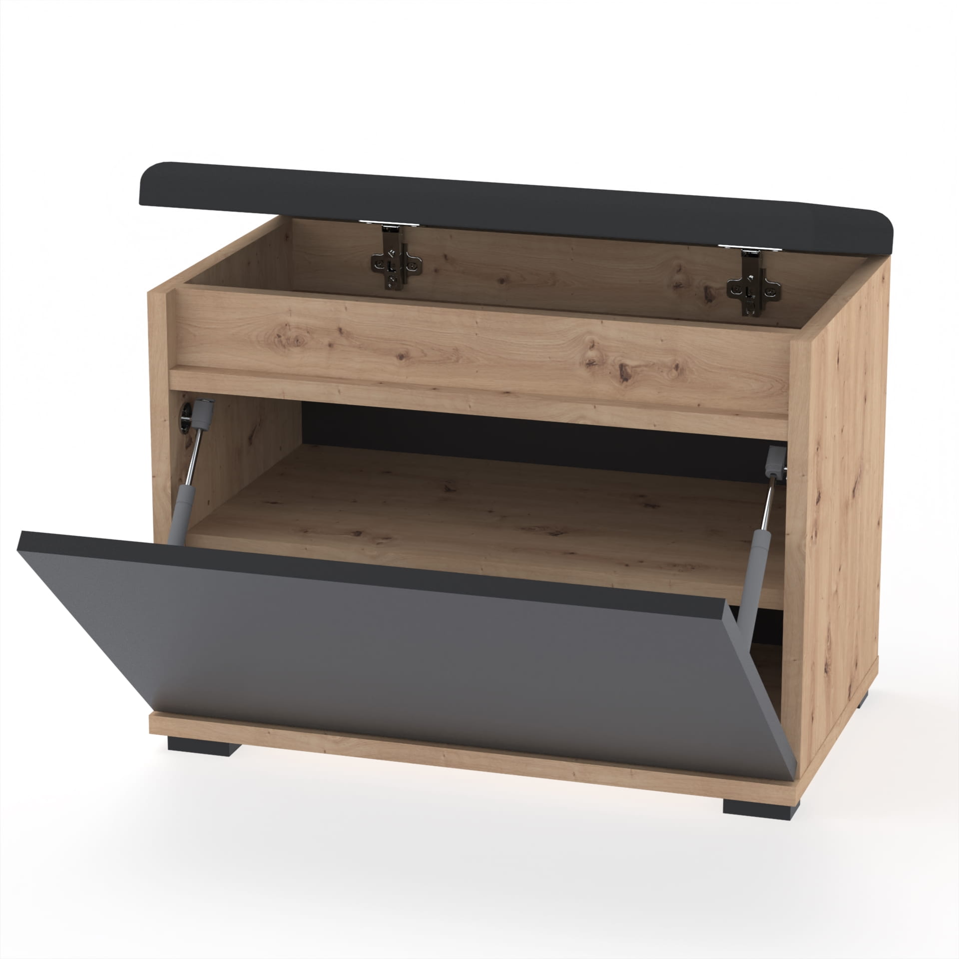 Szafka na buty z siedziskiem tapicerowanym i schowkiem