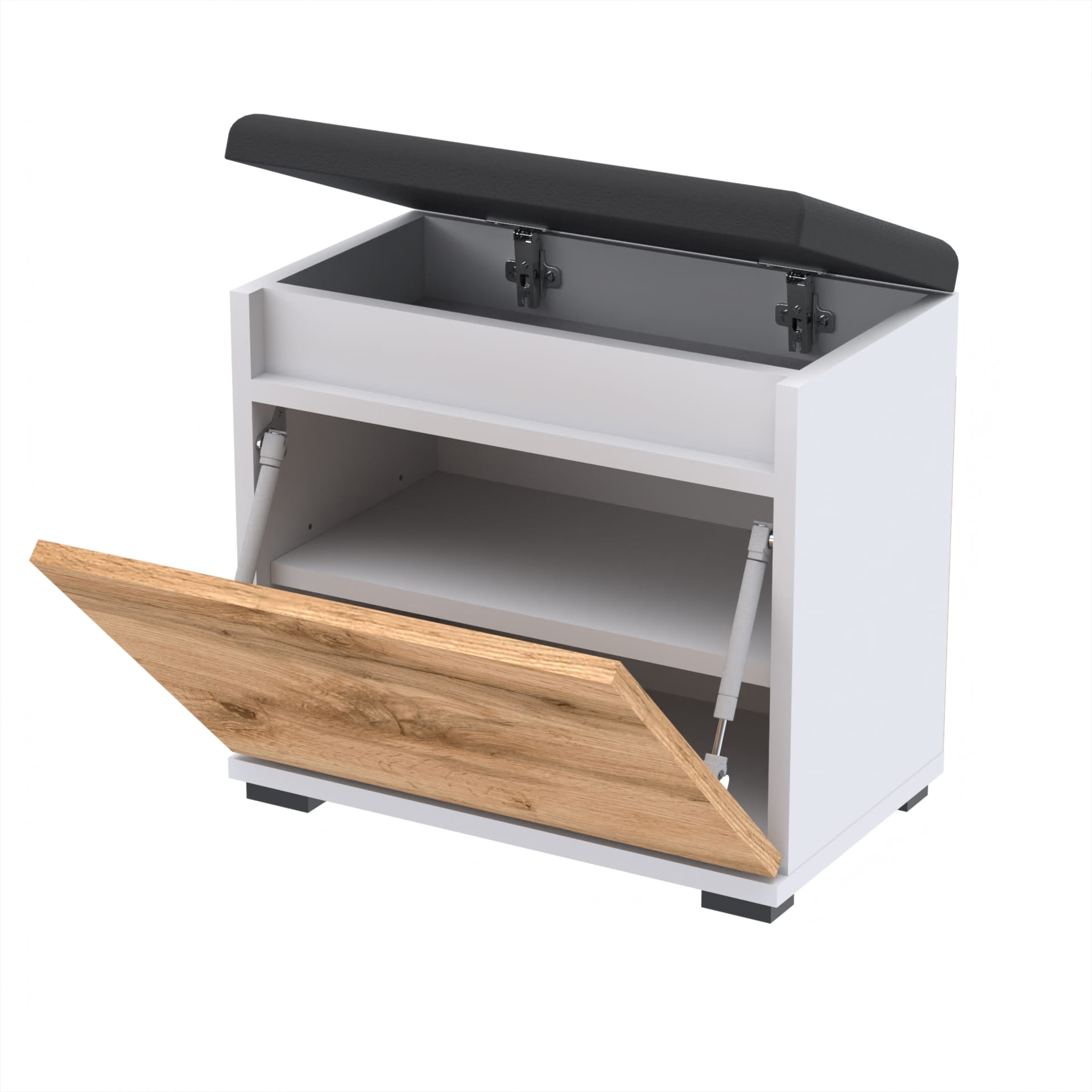 Szafka na buty z siedziskiem tapicerowanym i schowkiem