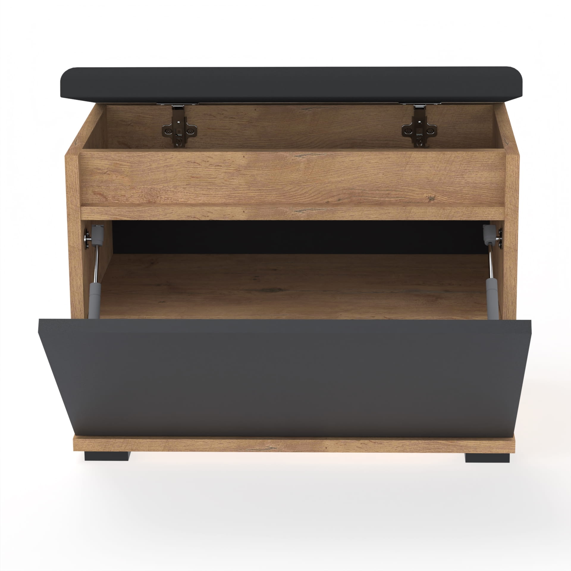 Szafka na buty z siedziskiem tapicerowanym i schowkiem