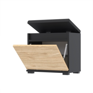 Szafka na buty jest nie tylko wygodna, ale także praktyczna - wewnątrz znajduje się półka, która pozwala na przechowywanie większej ilości obuwia. Dodatkowo, szafka jest wyposażona w schowek na przybory, dzięki czemu wszystko, czego potrzebujesz, jest zawsze pod ręką.