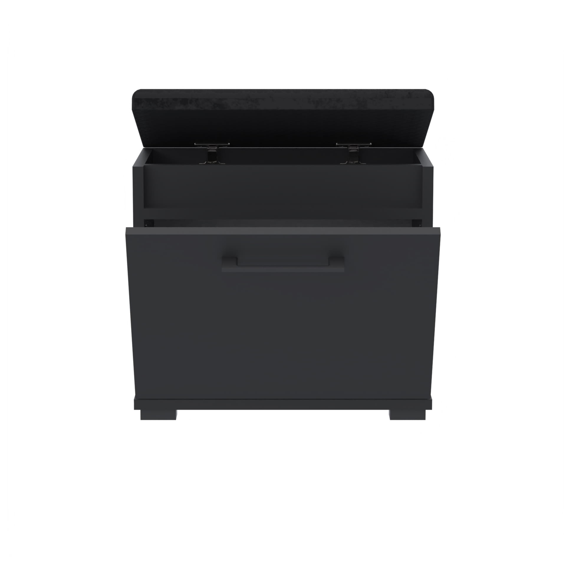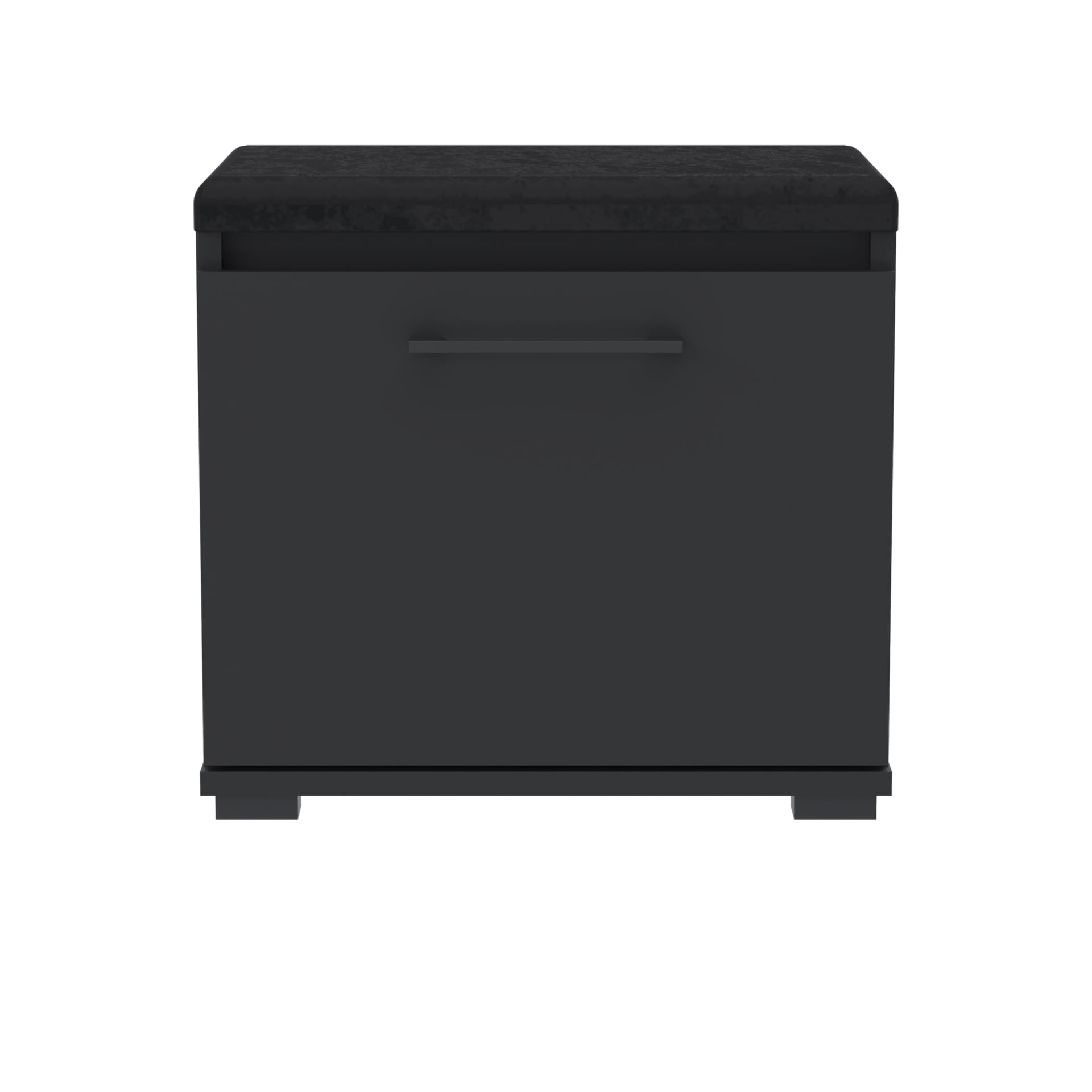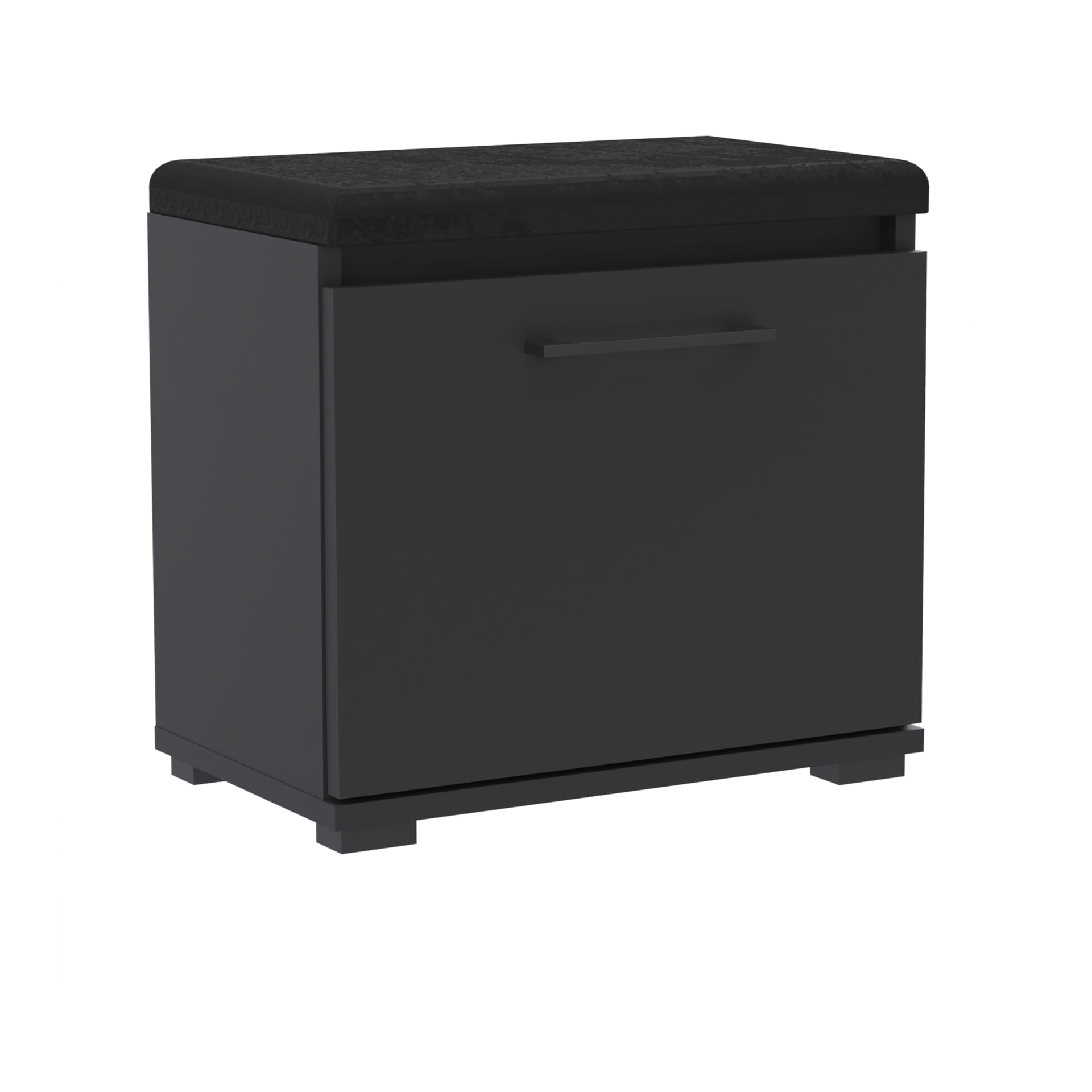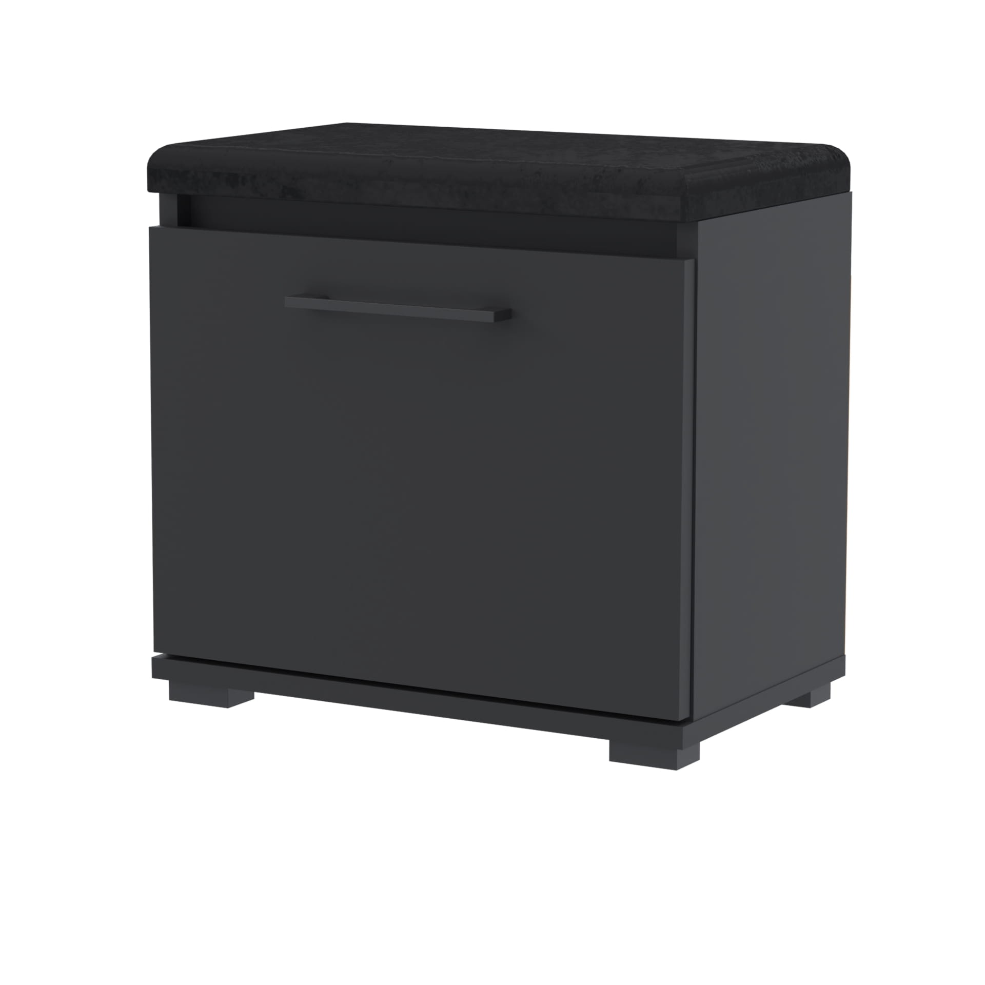 Szafka na buty, drzwi pełne z uchwytem metalowym, siedziskiem i schowkiem na przybory,