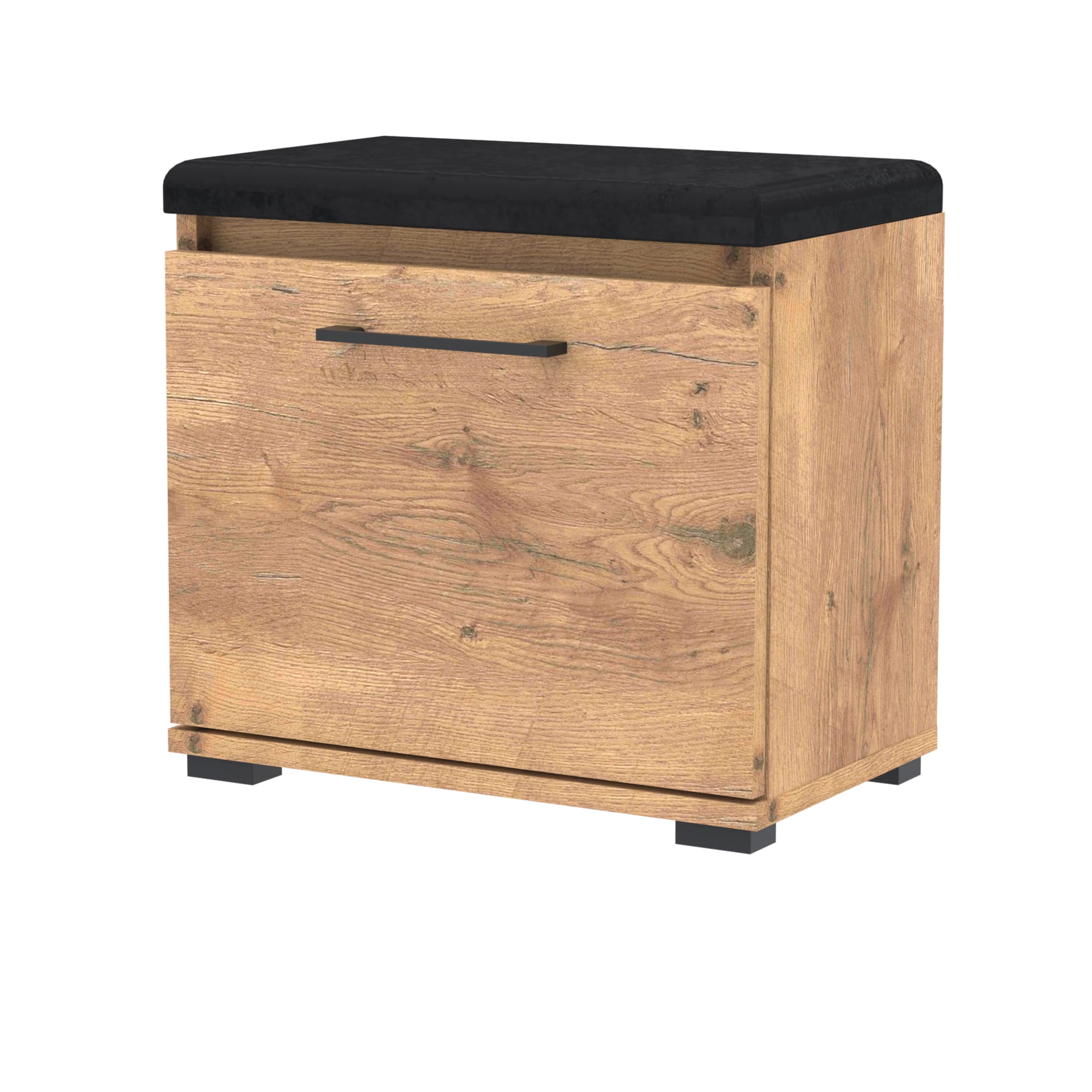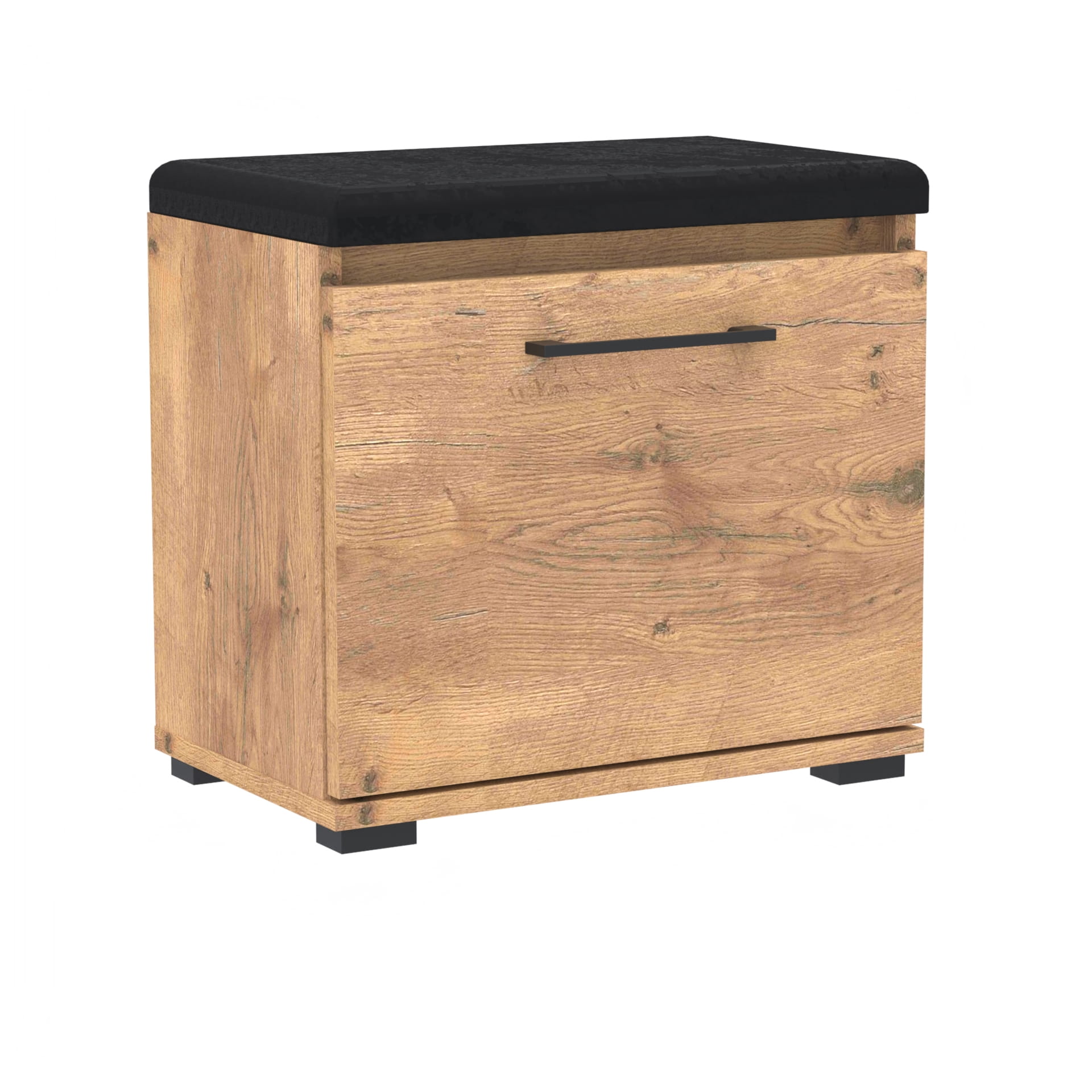 Szafka na buty, drzwi pełne z uchwytem metalowym, siedziskiem i schowkiem na przybory,