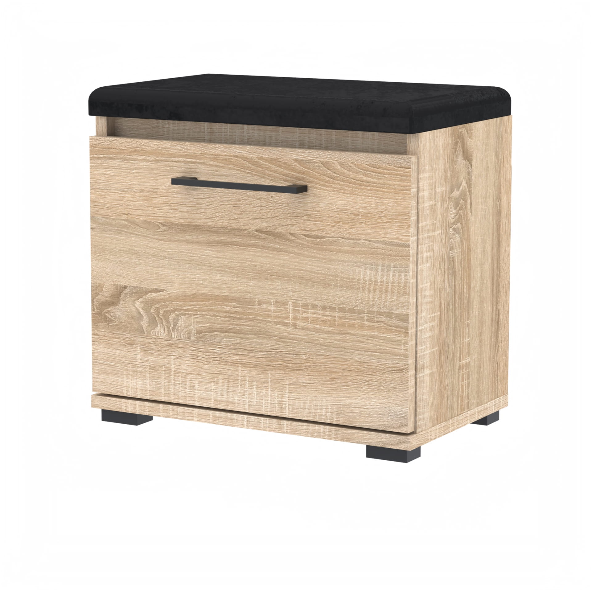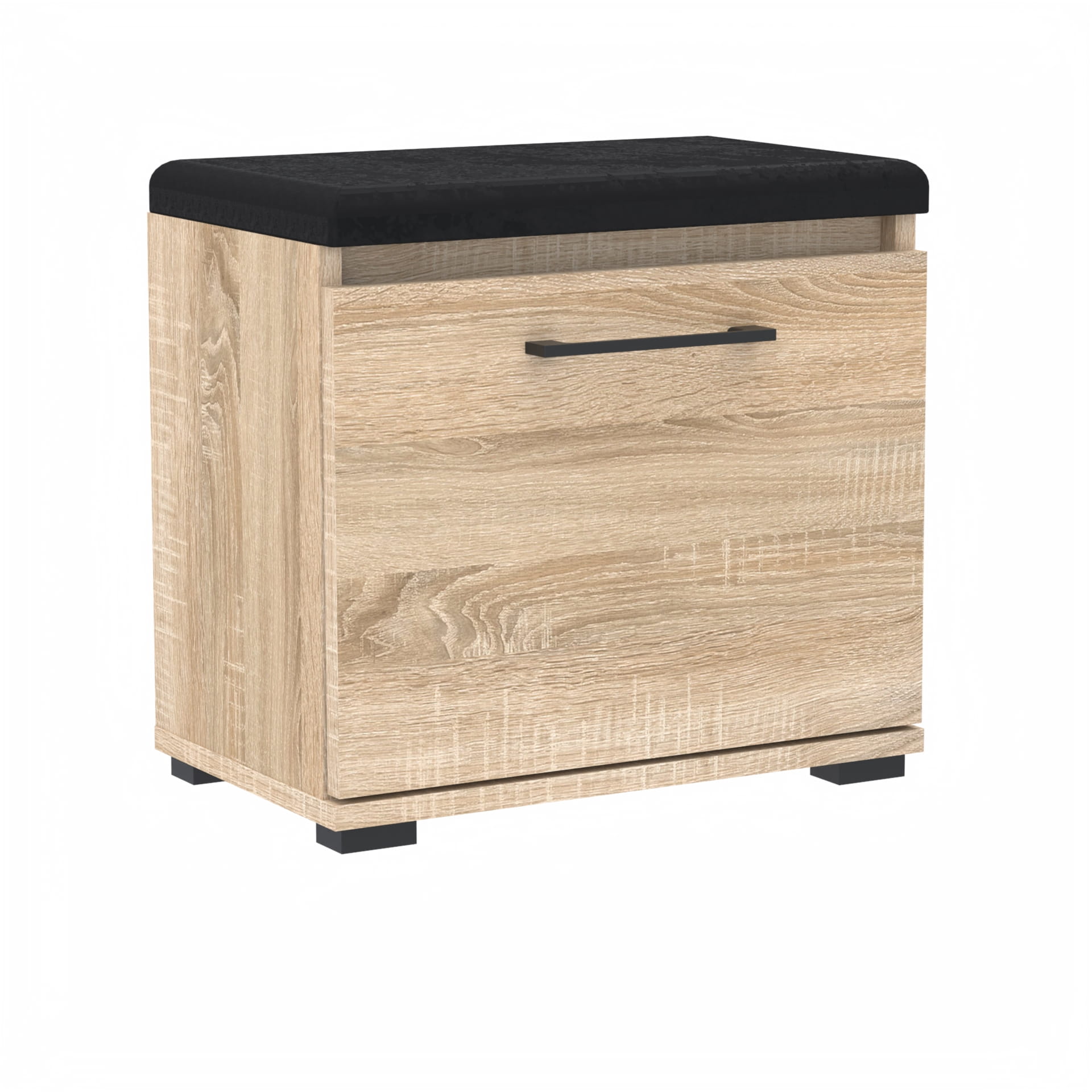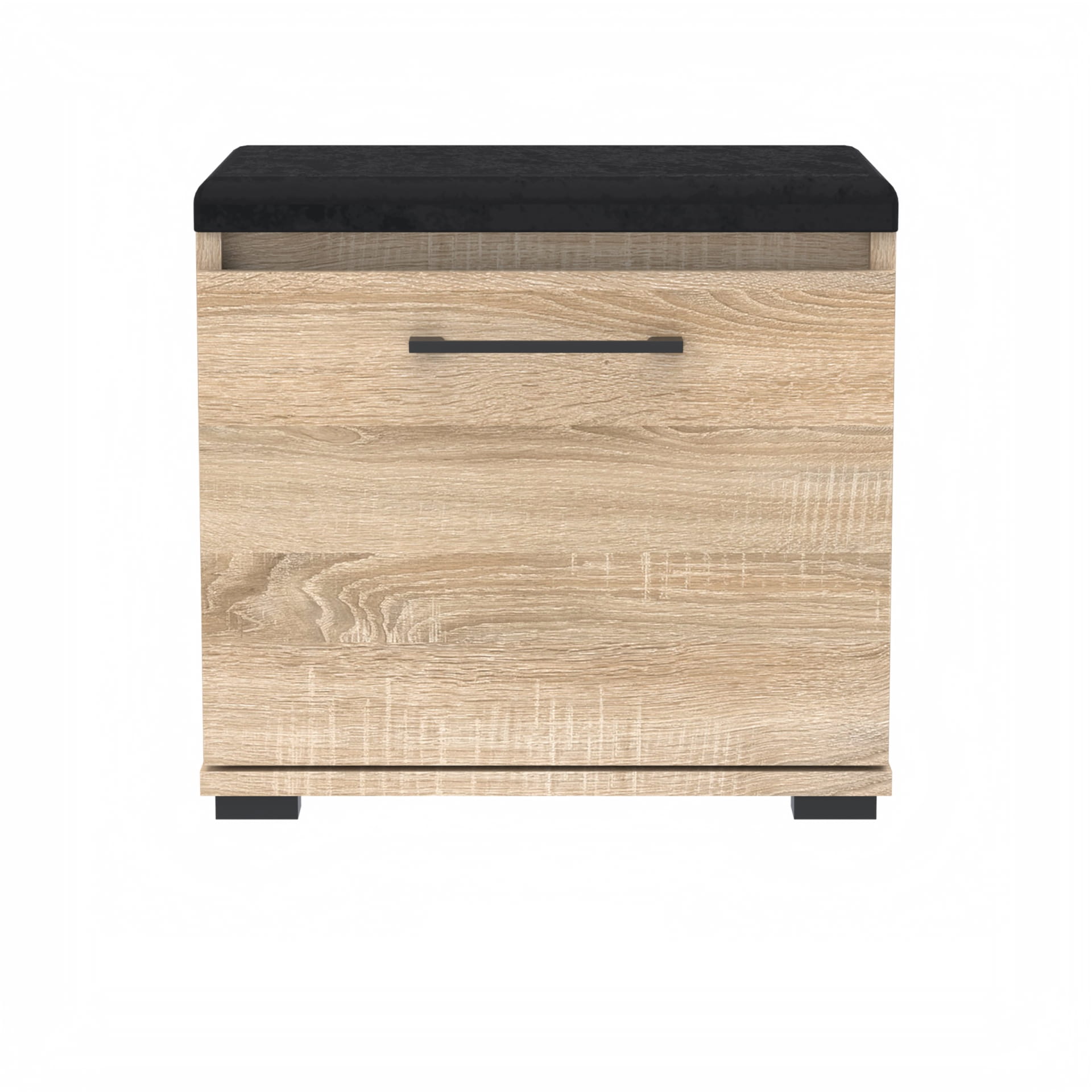 Szafka na buty, drzwi pełne z uchwytem metalowym, siedziskiem i schowkiem na przybory