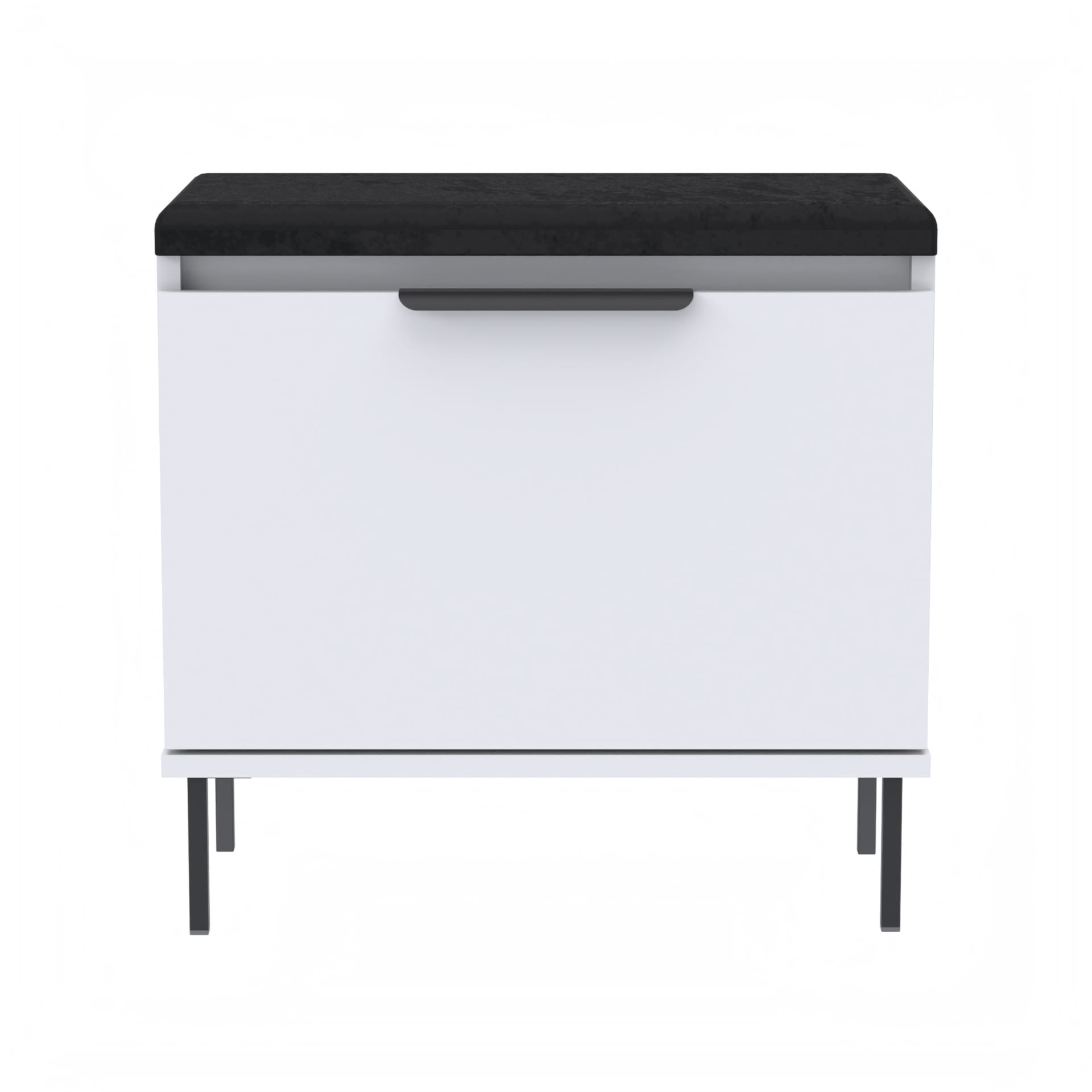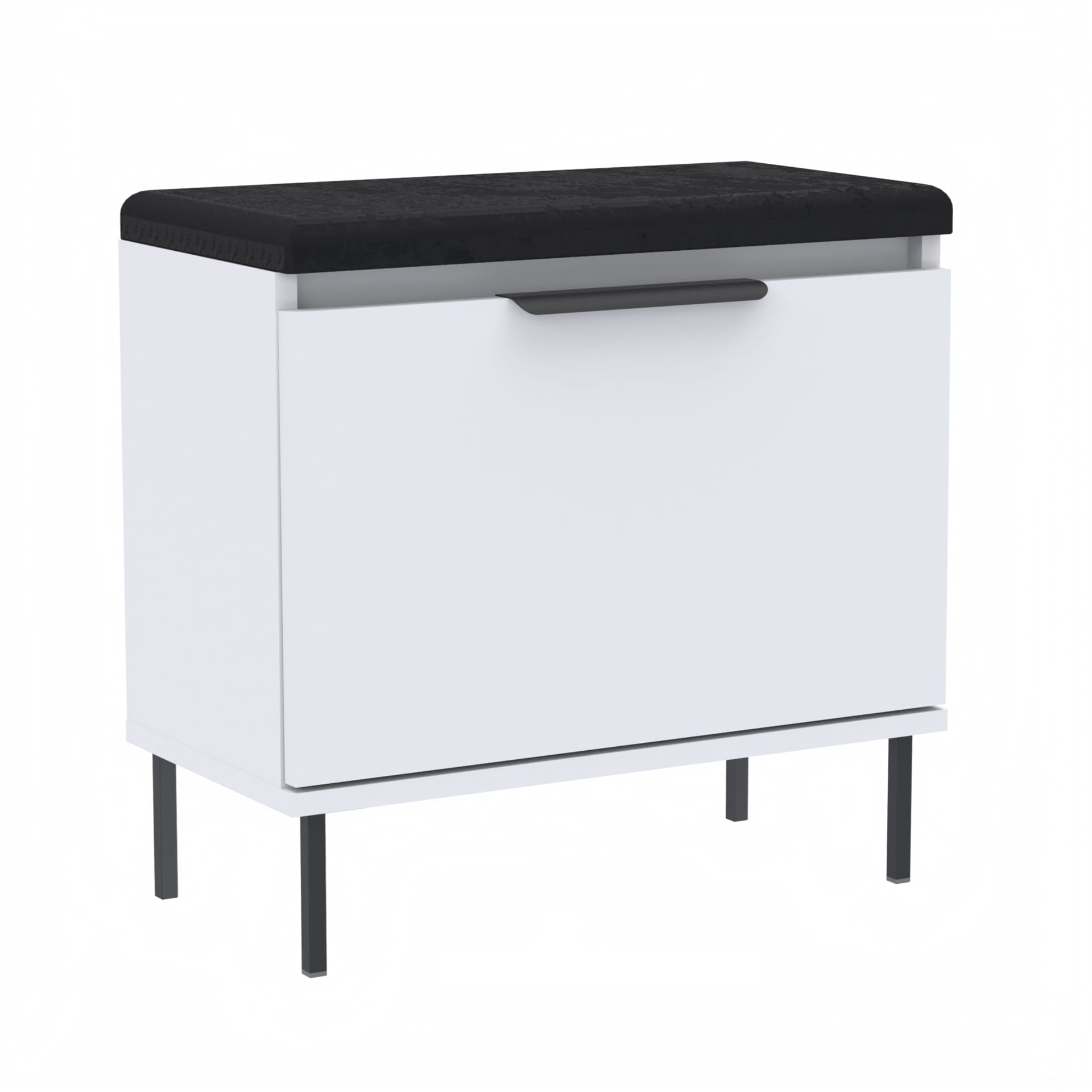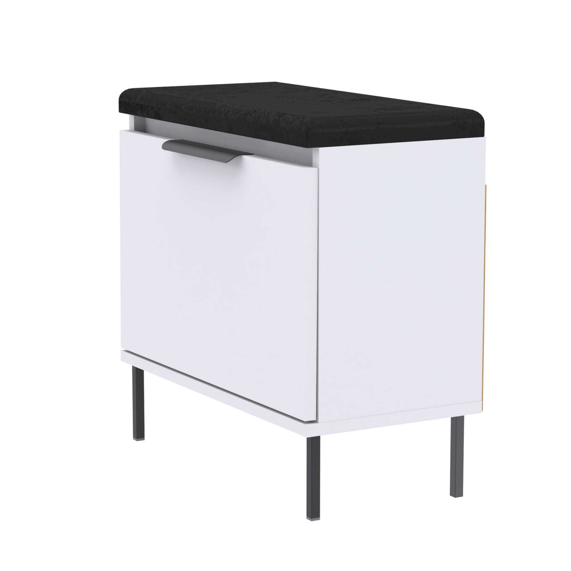 Szafka na buty, drzwi pełne z uchwytem metalowym, siedziskiem i schowkiem na przybory,