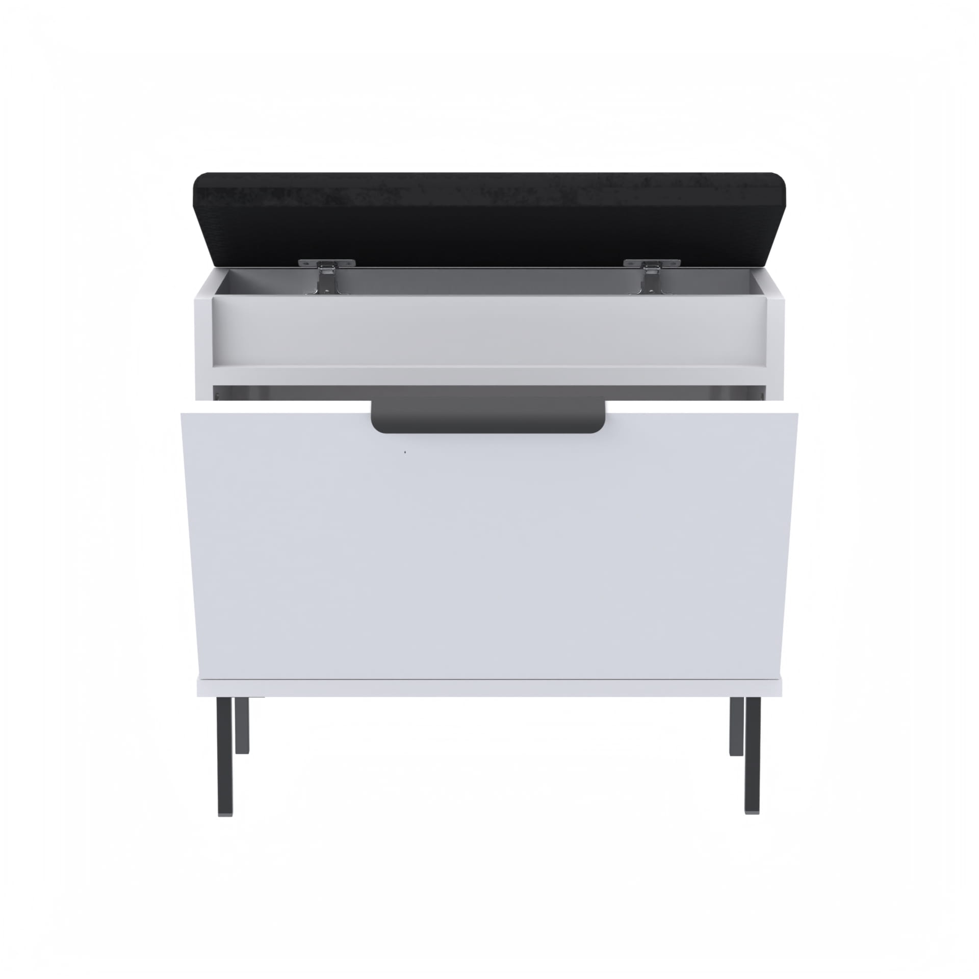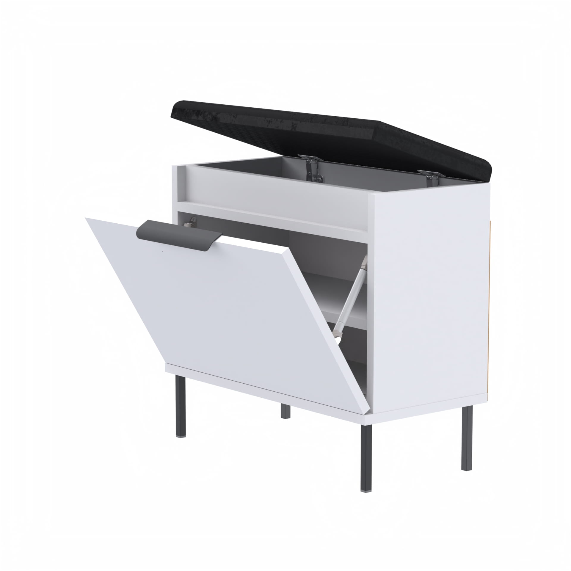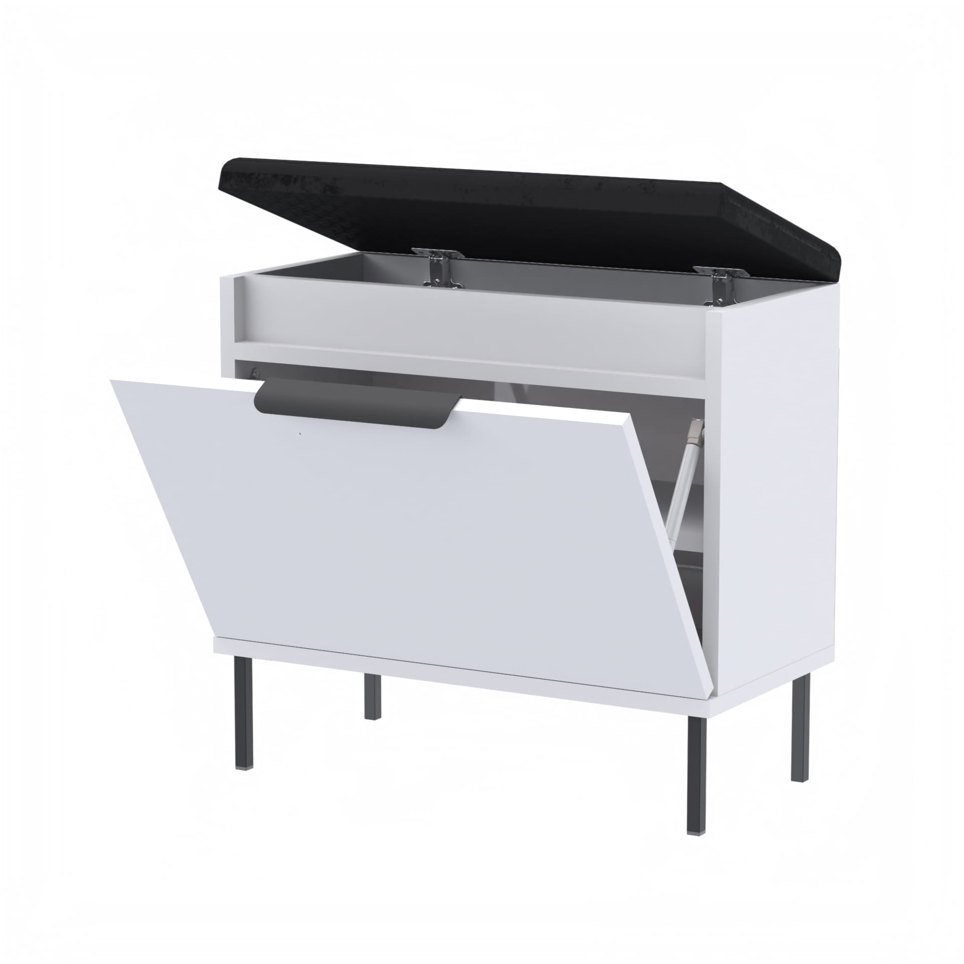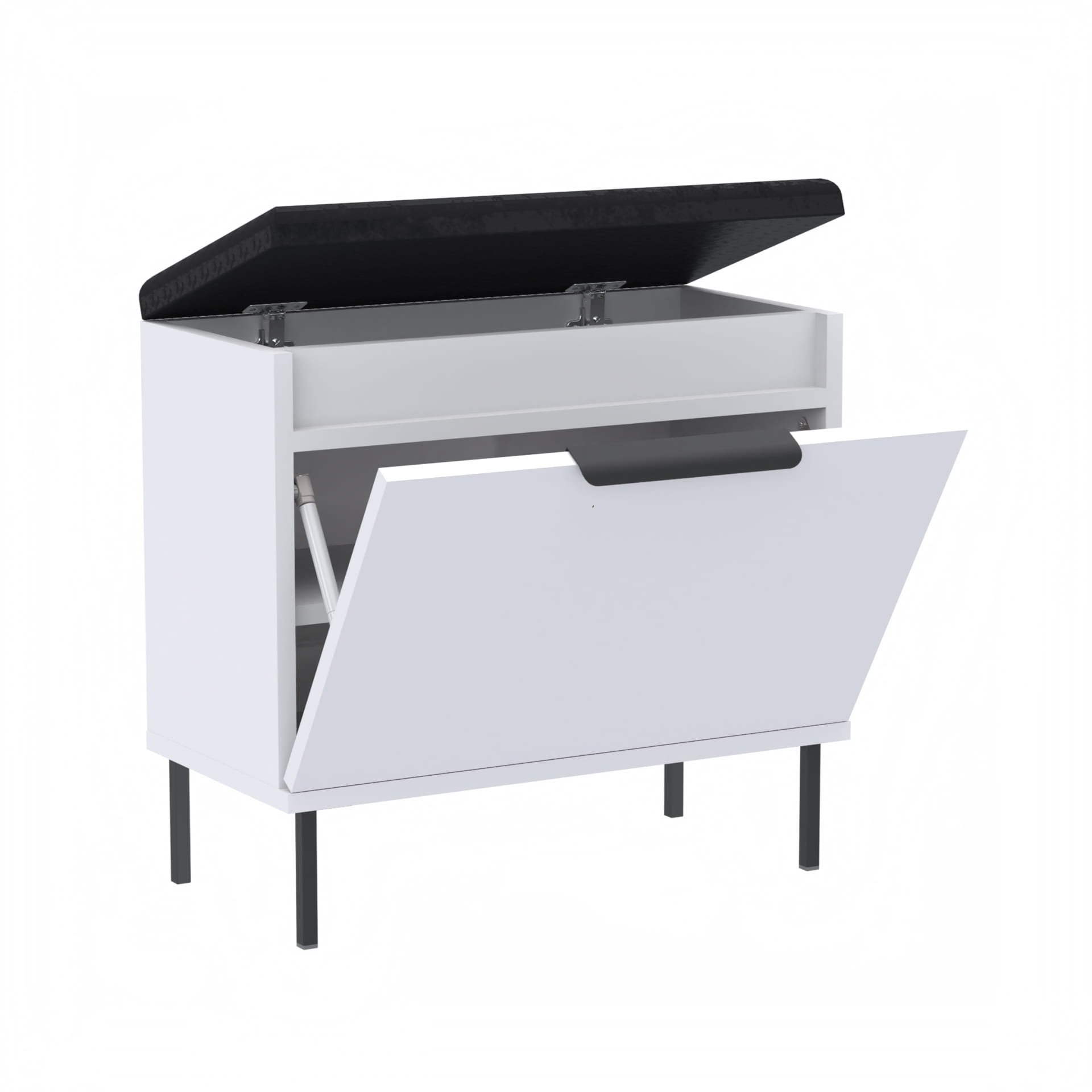 Szafka na buty, drzwi pełne z uchwytem metalowym, siedziskiem i schowkiem na przybory,