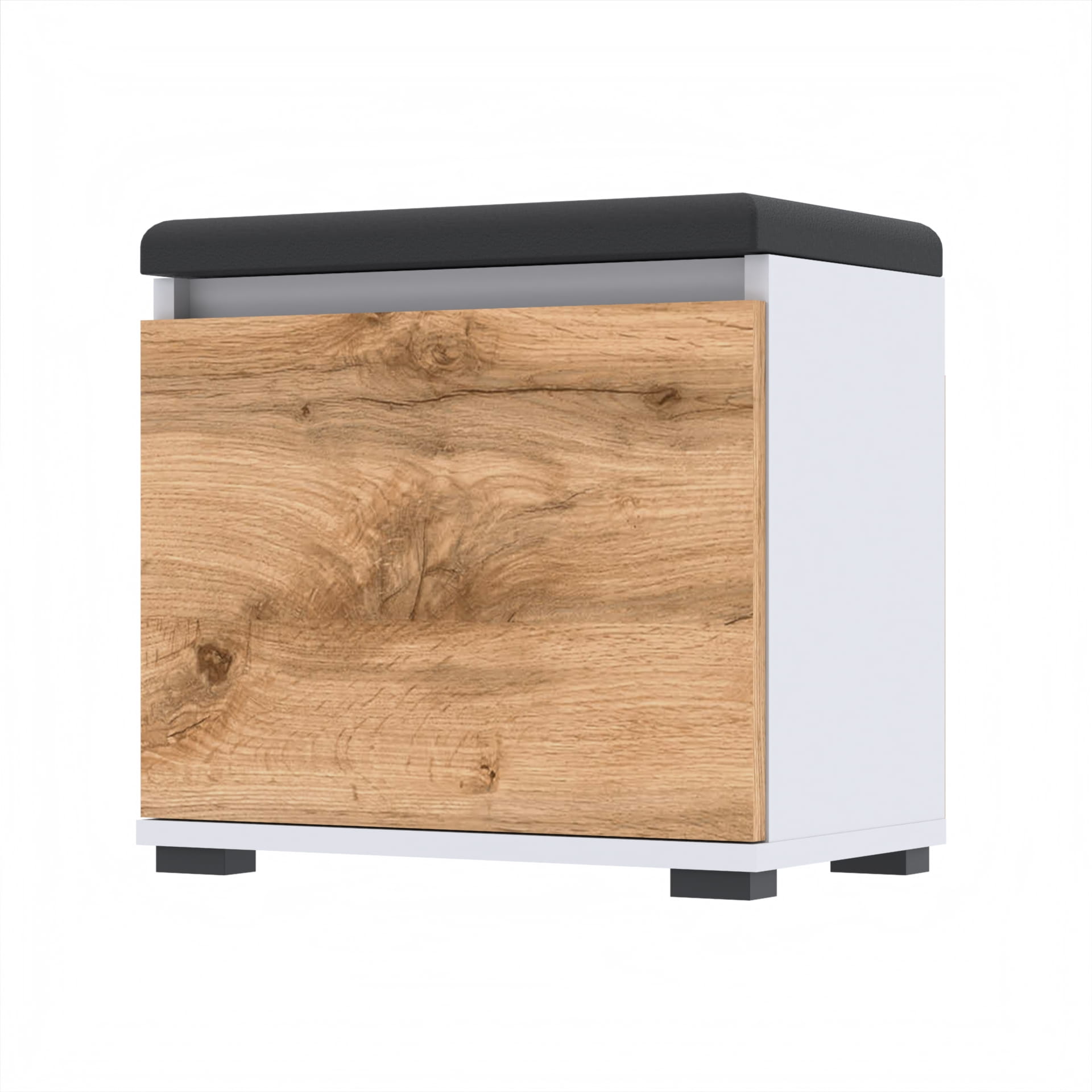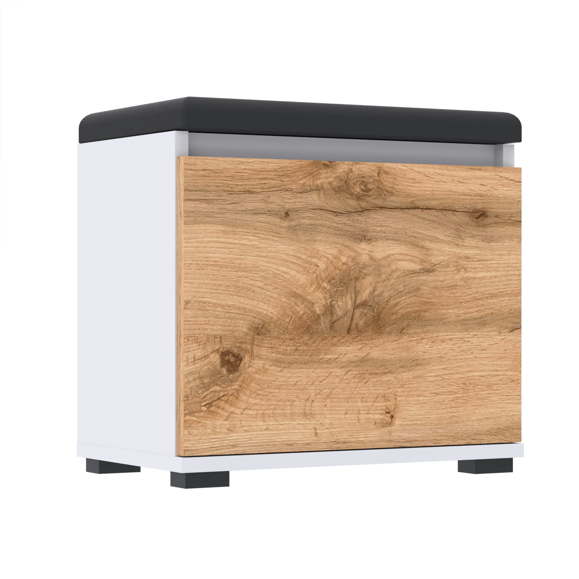 Szafka na buty z siedziskiem tapicerowanym i schowkiem