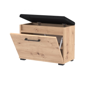 Szafka na buty, drzwi pełne z uchwytem metalowym, siedziskiem i schowkiem na przybory,