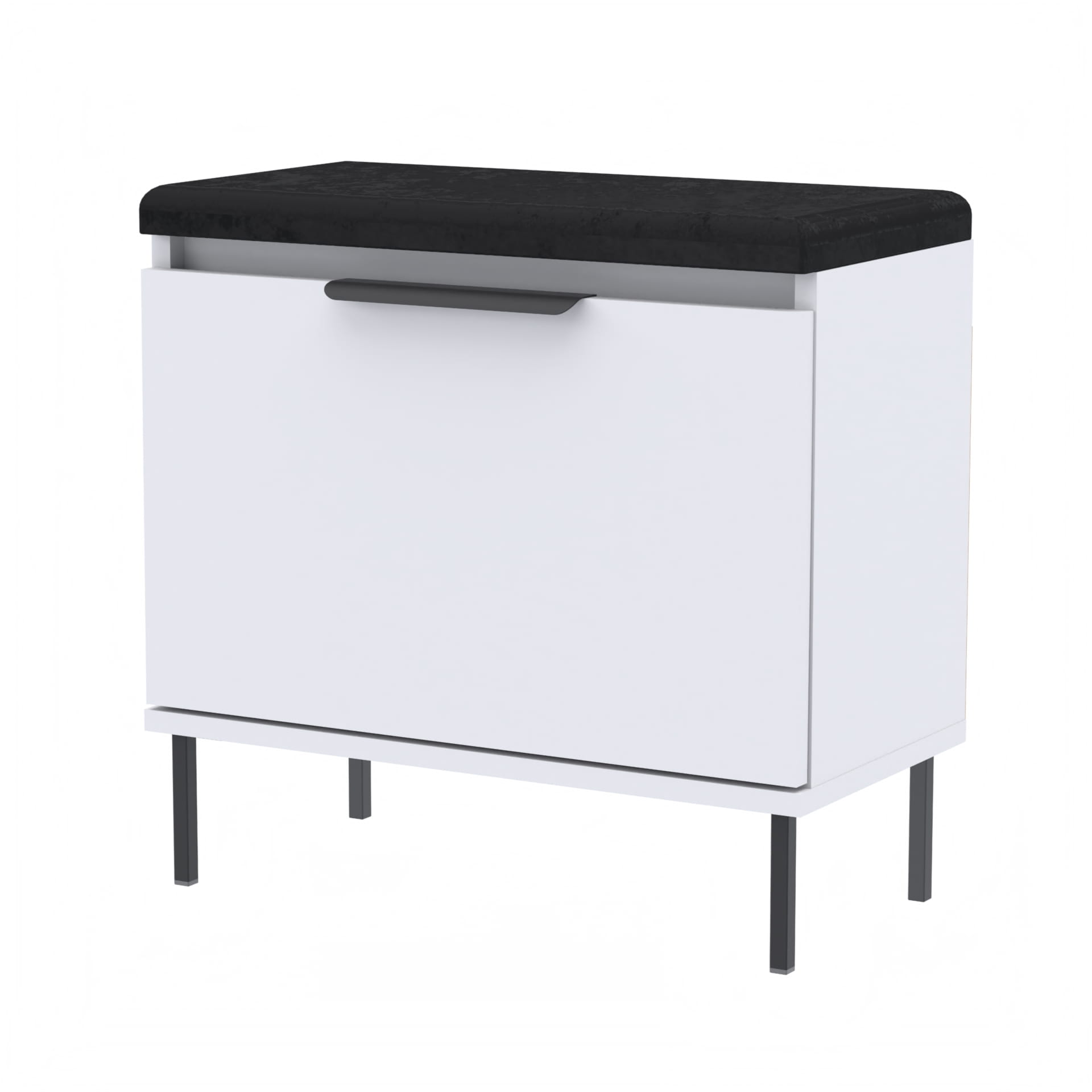 Szafka na buty, drzwi pełne z uchwytem metalowym, siedziskiem i schowkiem na przybory,