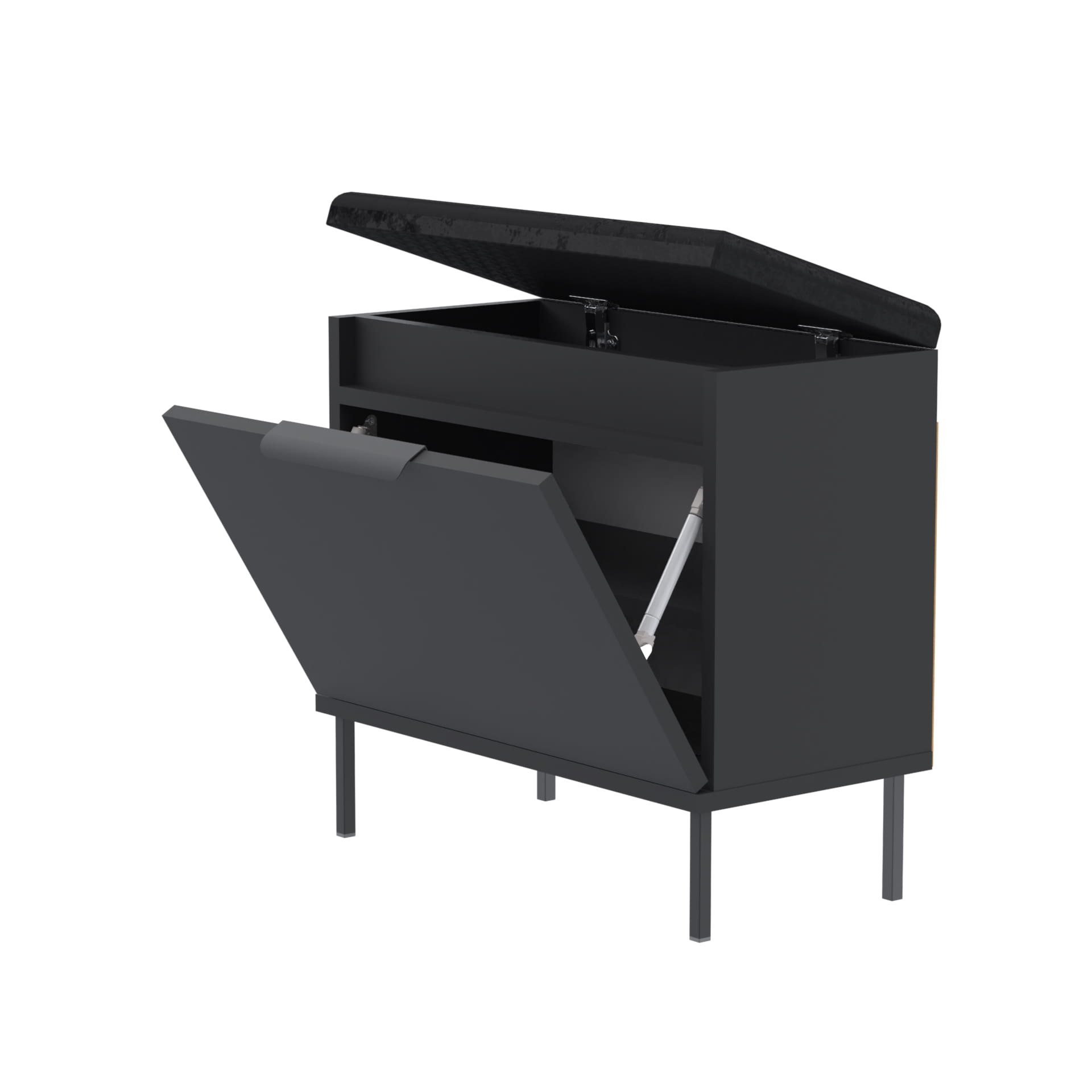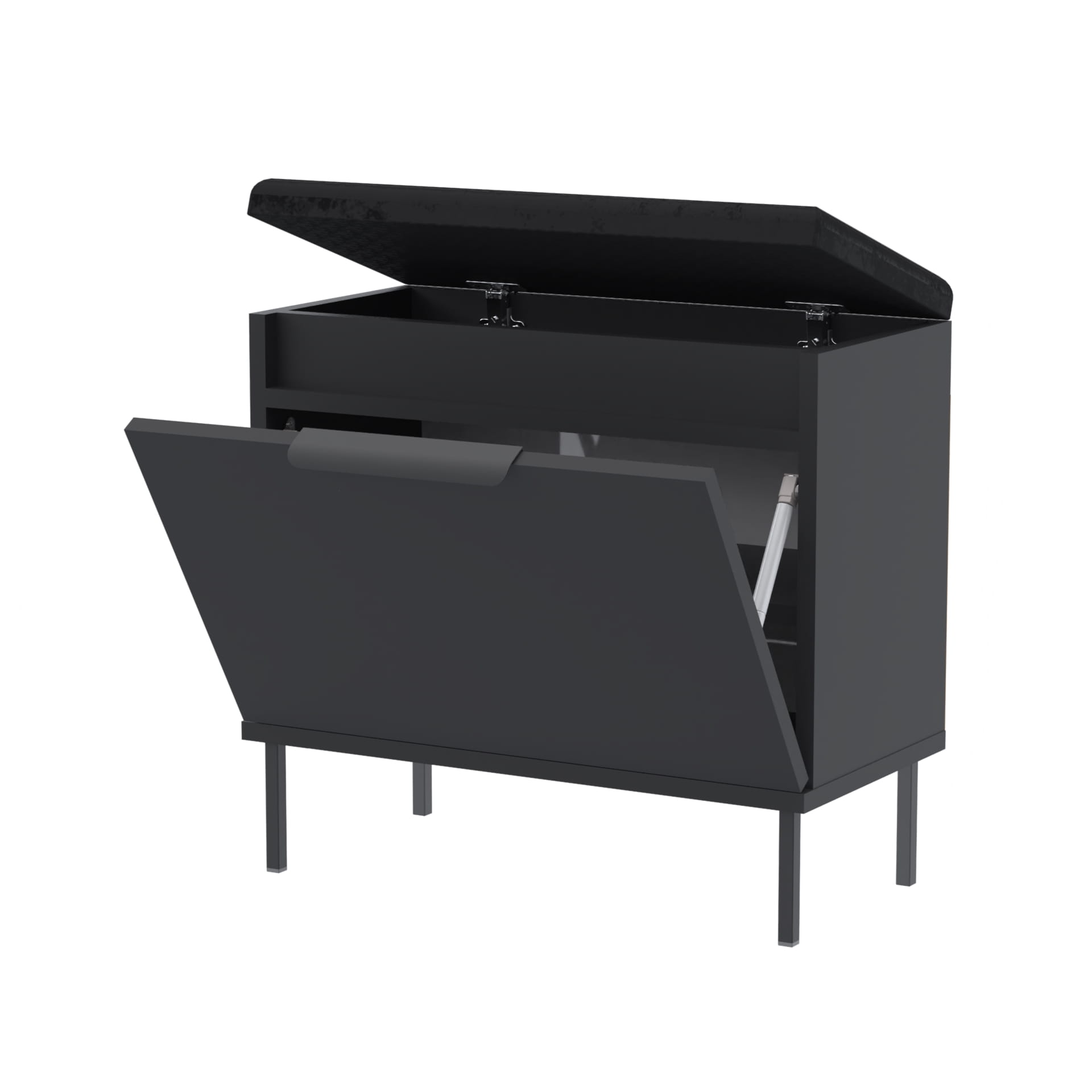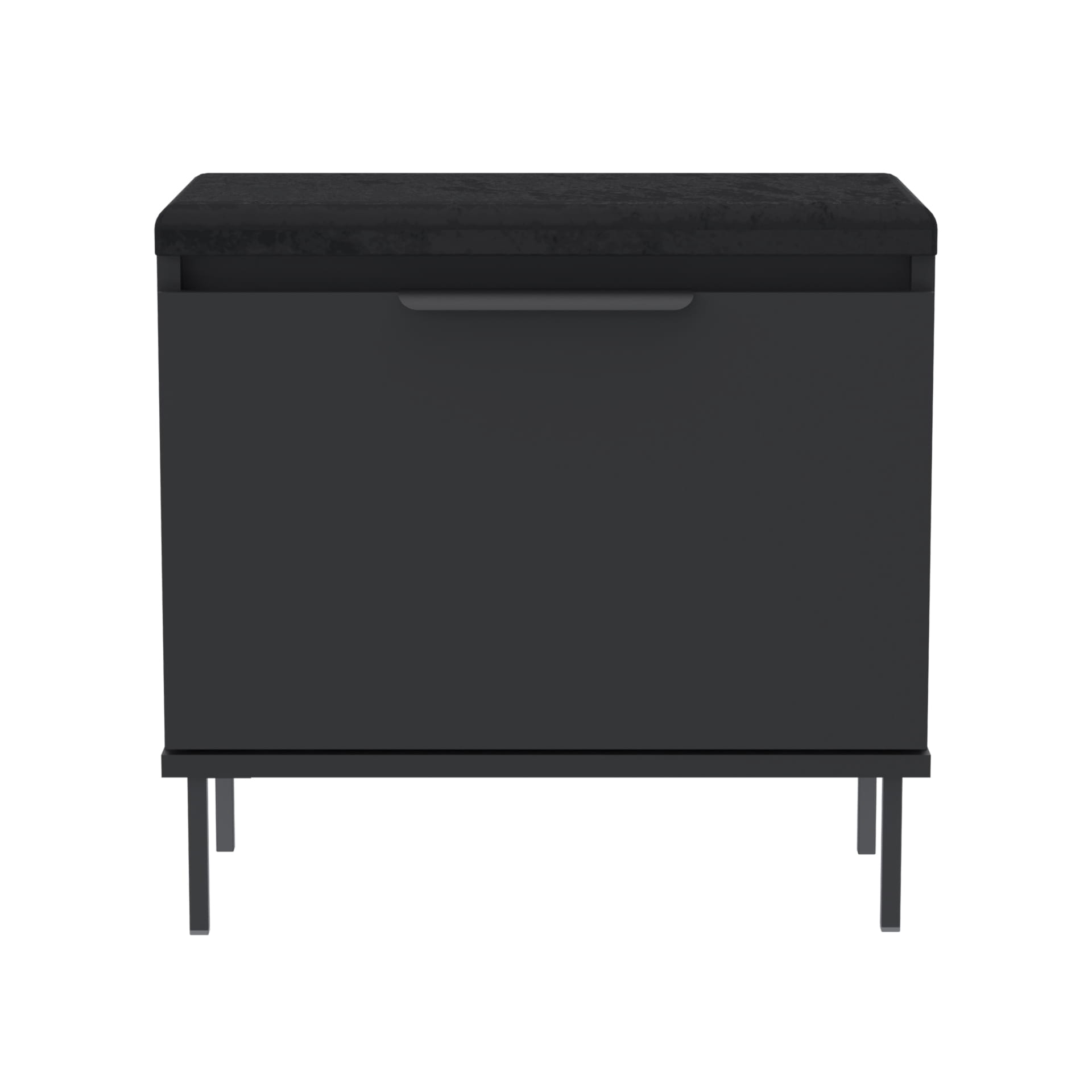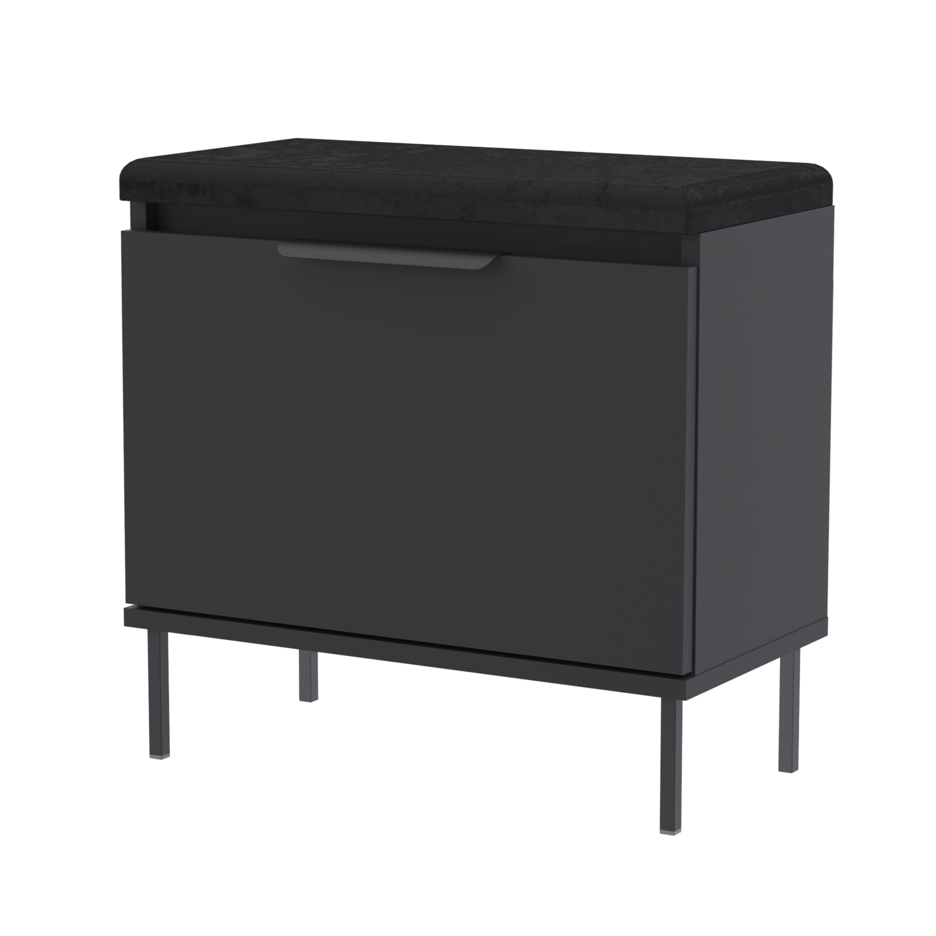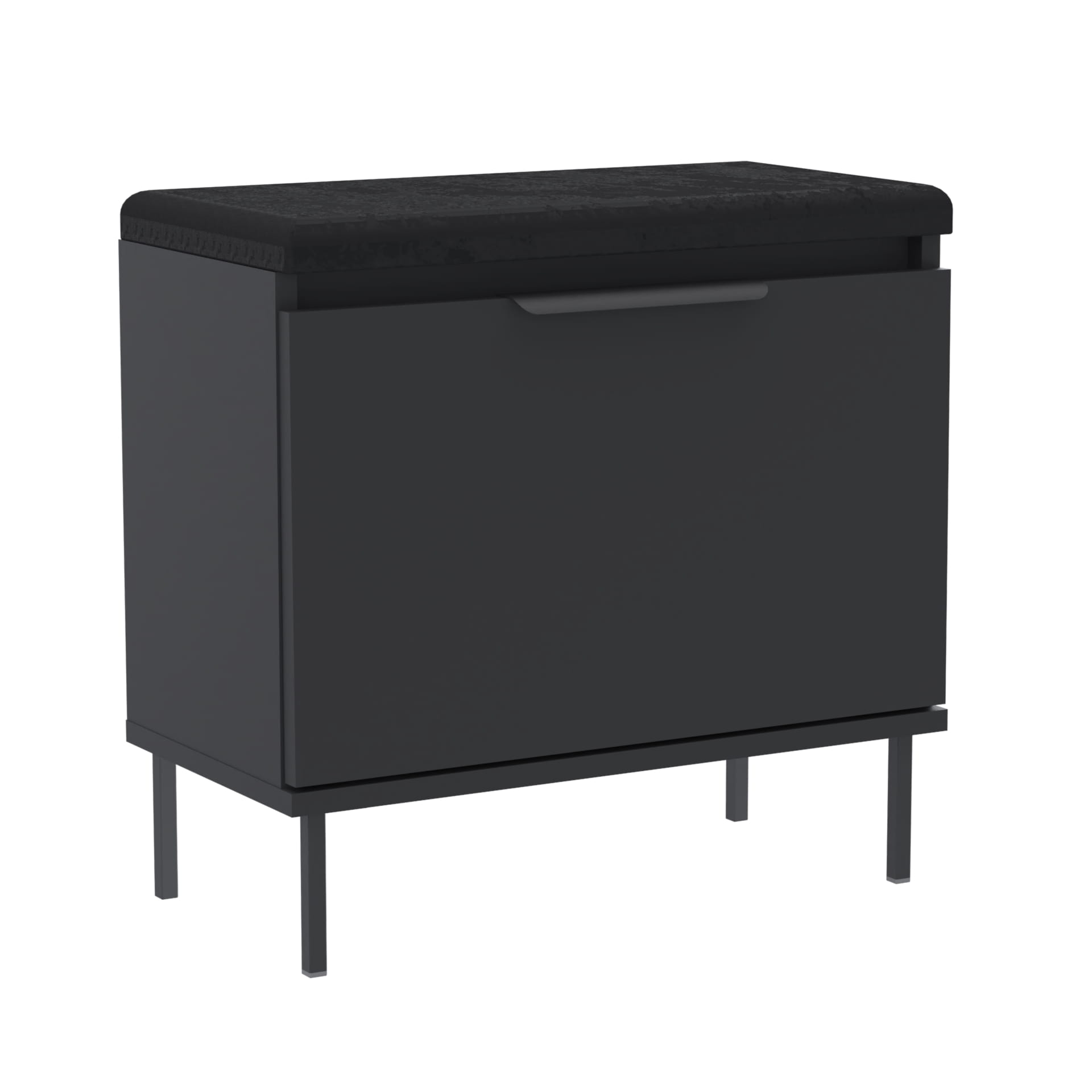 Szafka na buty, drzwi pełne z uchwytem metalowym, siedziskiem i schowkiem na przybory,