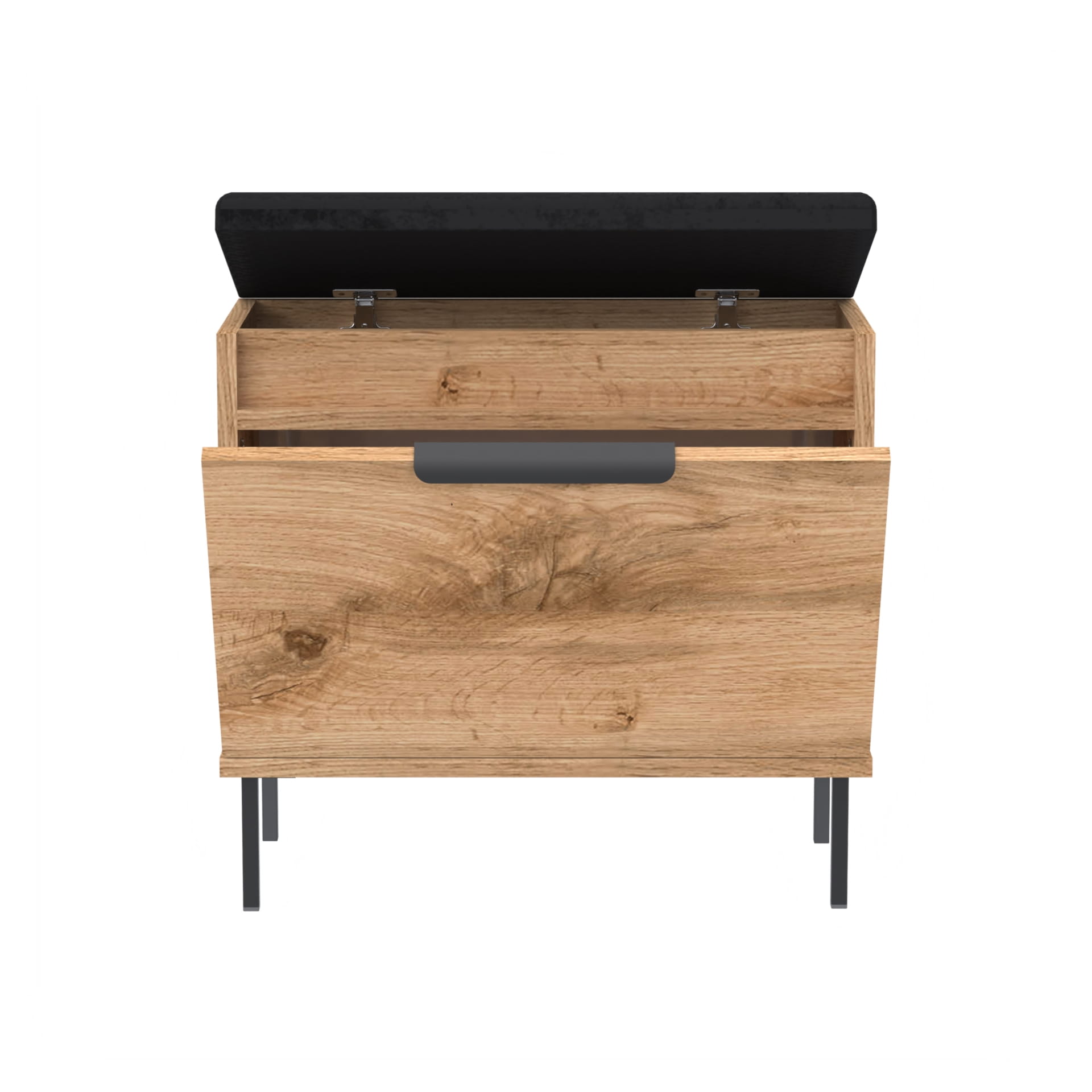 Mebel wykonany z wysokiej jakości laminowanej płyty meblowej o grubości 18 mm, w wyrazistym dekorze dąb Wotan – o głębokiej, ciepłej barwie z widocznym usłojeniem, inspirowanym naturalnym drewnem. Krawędzie wykończone trwałym obrzeżem ABS, odpornym na zarysowania i codzienne użytkowanie.