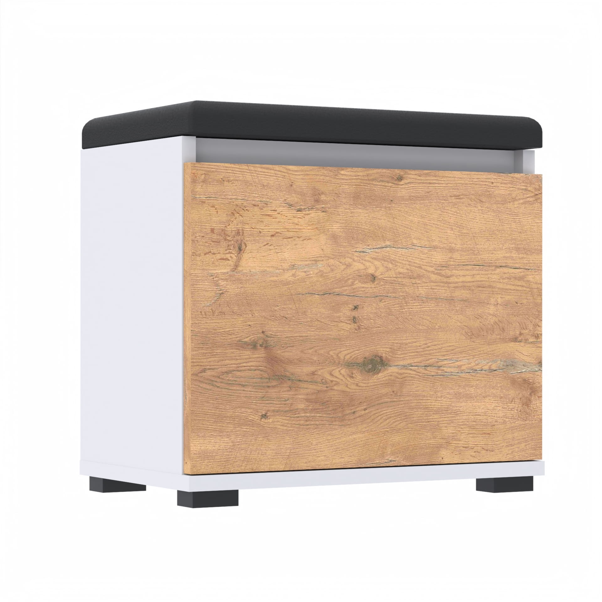 Szafka na buty z siedziskiem tapicerowanym i schowkiem