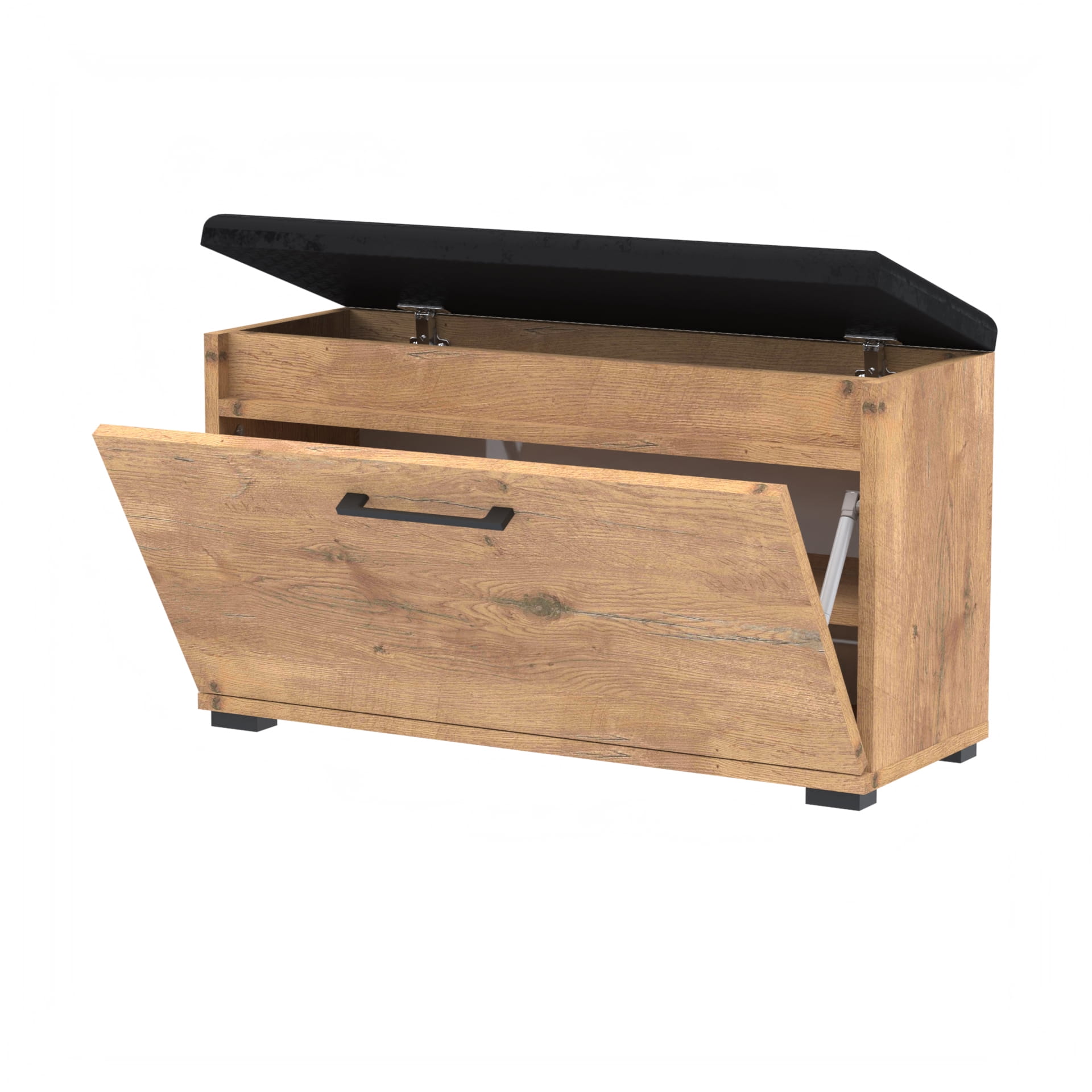 Szafka na buty z siedziskiem tapicerowanym i schowkiem