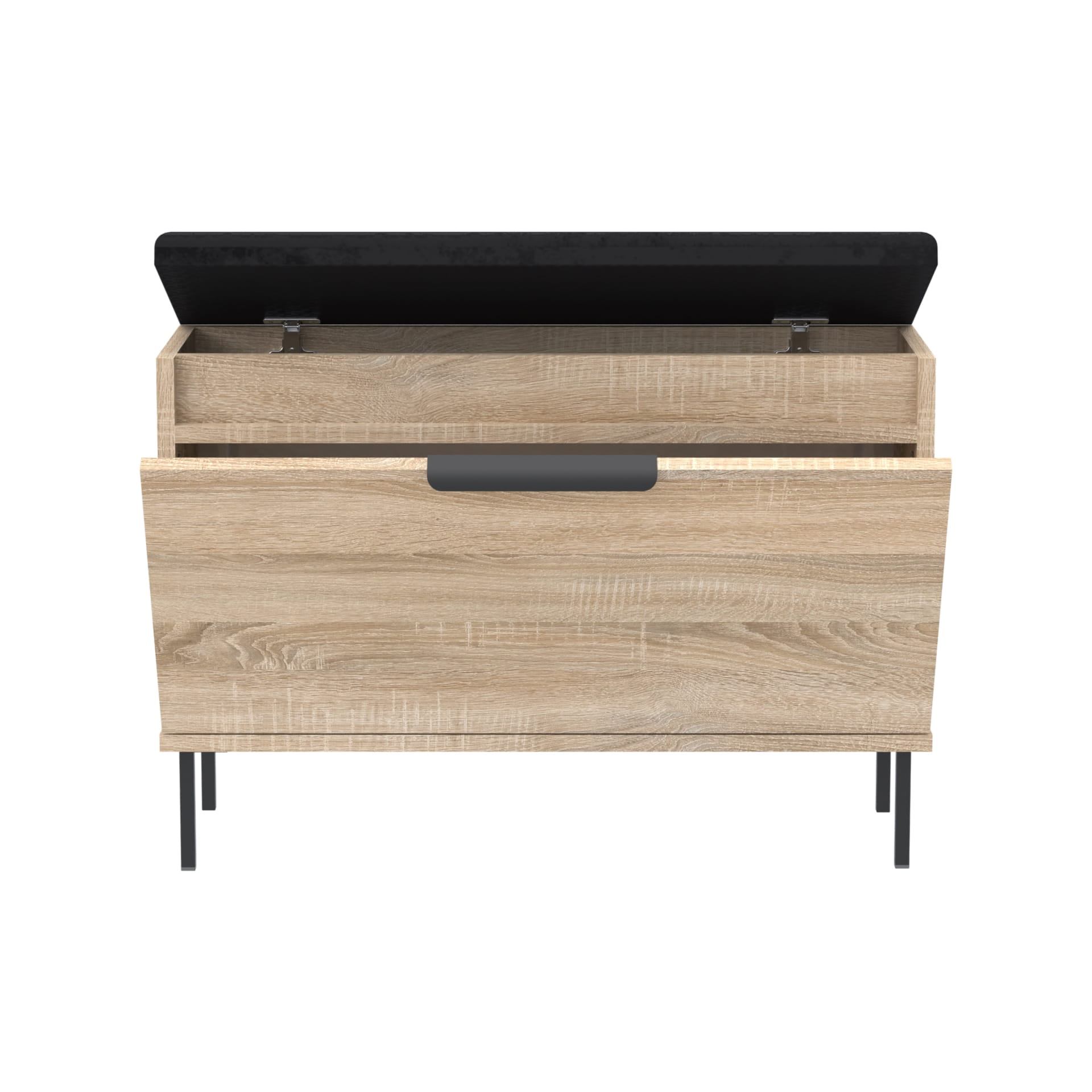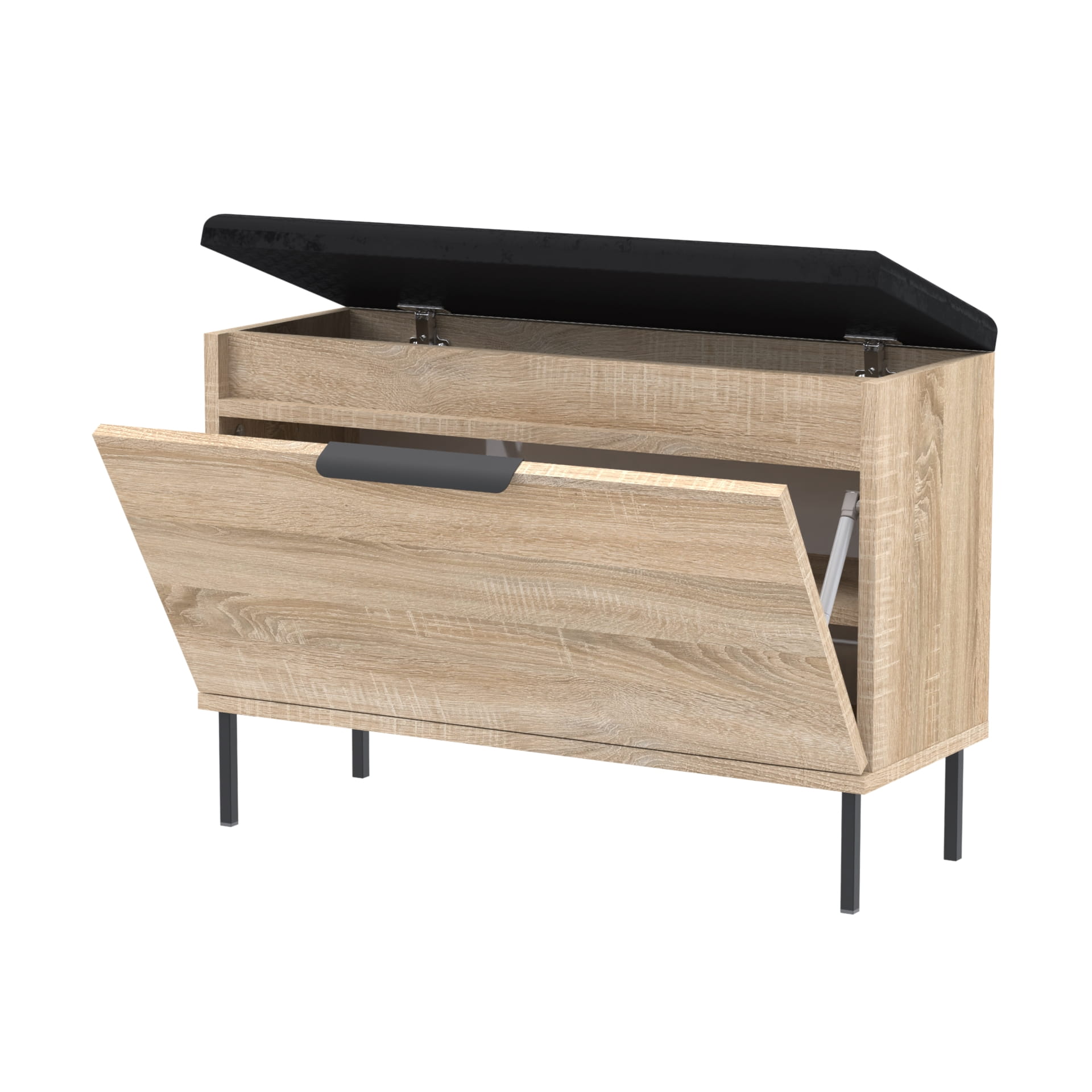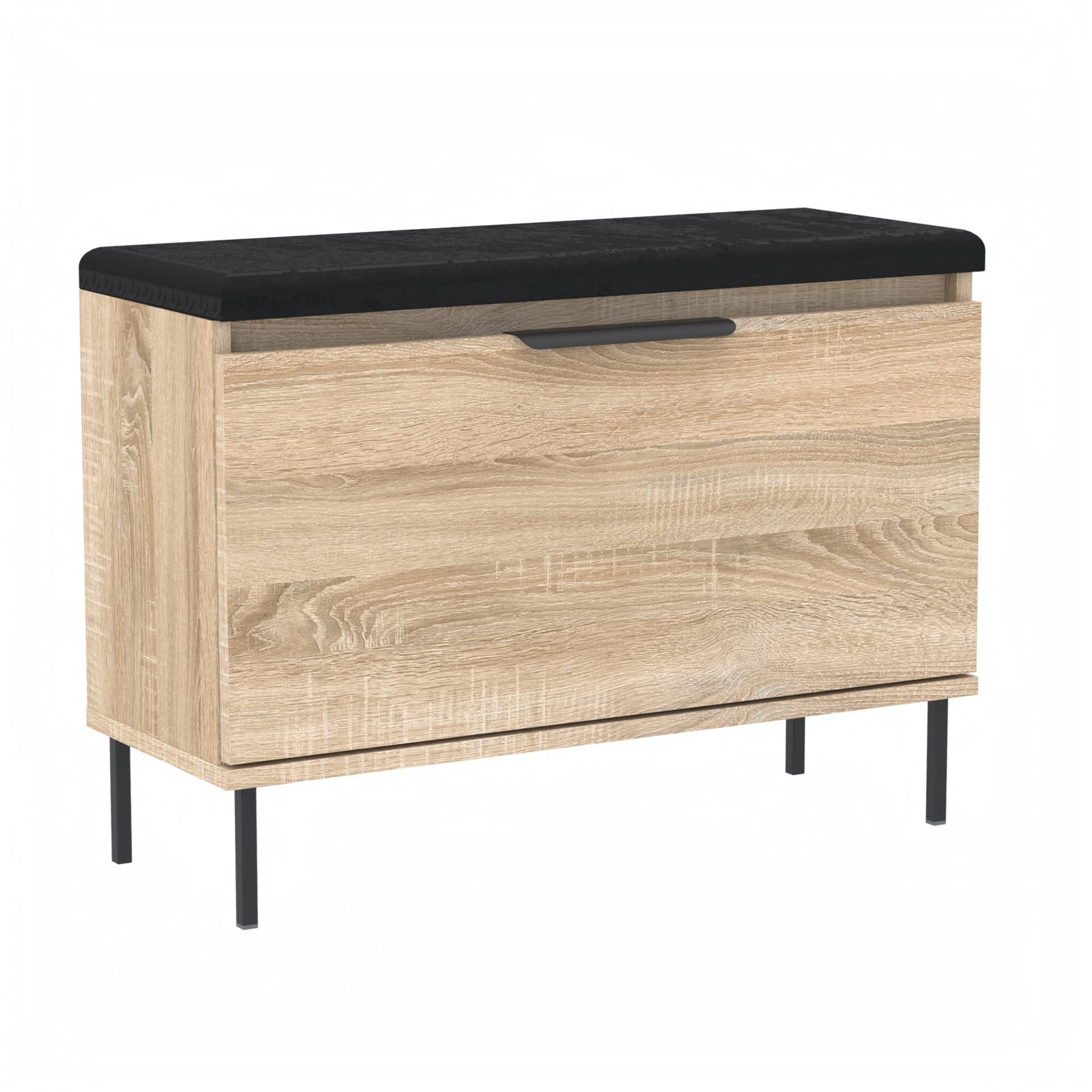 Funkcjonalna szafka na buty z pełnymi drzwiami, eleganckim metalowym uchwytem, wygodnym siedziskiem oraz dodatkowym schowkiem na drobne akcesoria. Doskonały wybór do przedpokoju – łączy estetykę z praktycznością.