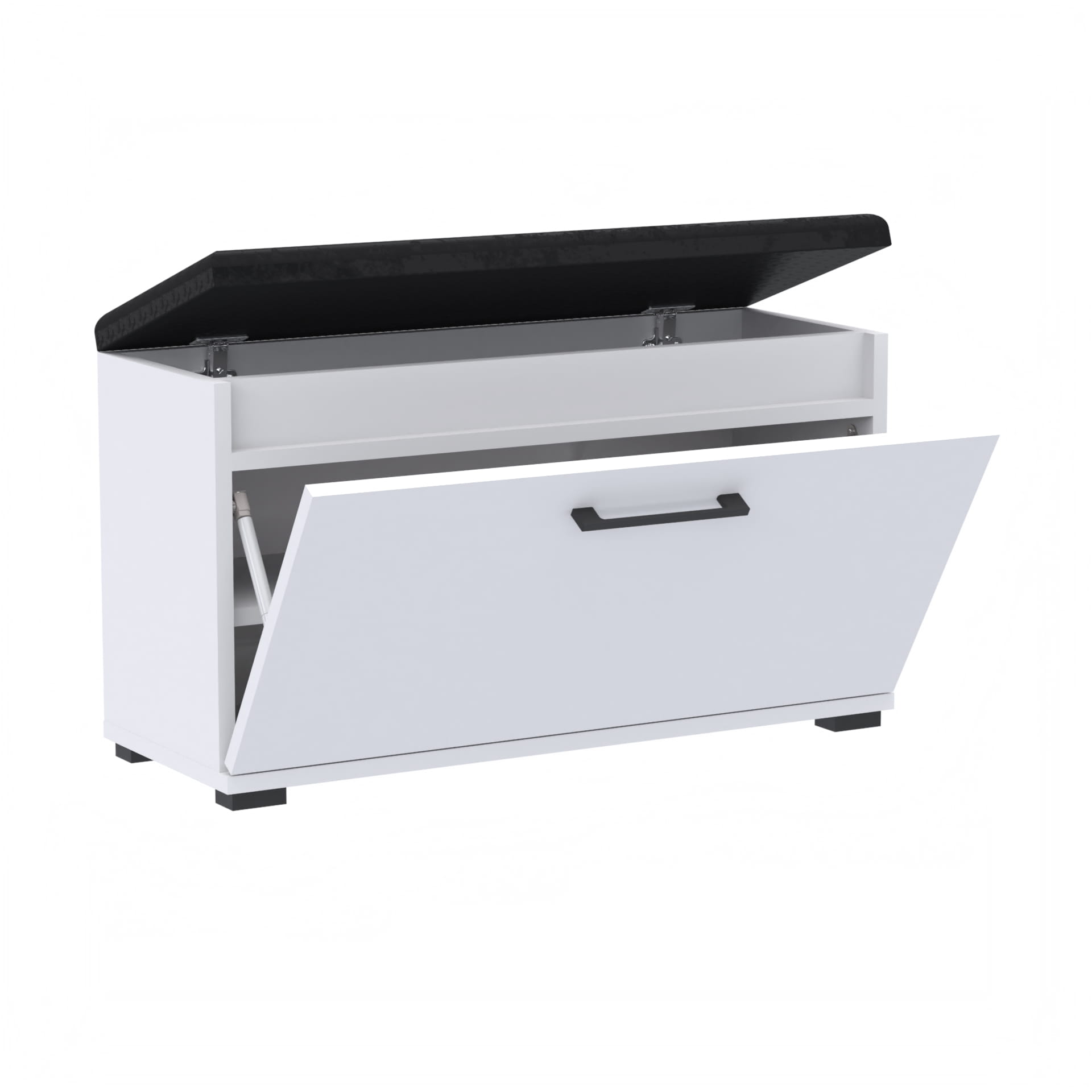 Szafka na buty z siedziskiem tapicerowanym i schowkiem