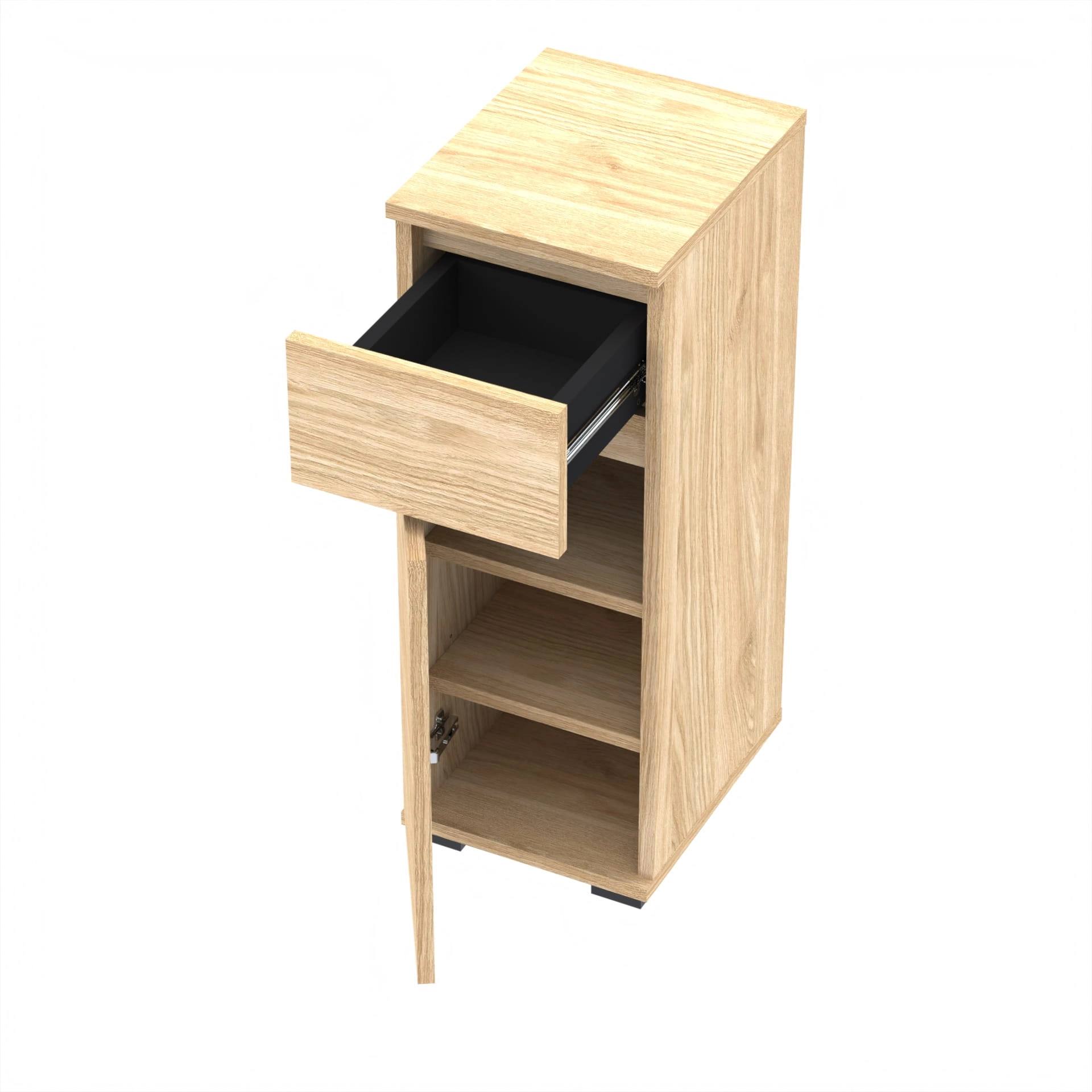 Konstrukcja i Wytrzymałość: Szuflada szafki została wyposażona w twardą, nieugiętą podstawę, która zapewnia stabilność i wytrzymałość nawet przy przechowywaniu cięższych przedmiotów. Dzięki zastosowaniu prowadnic kulkowych, szuflada działa płynnie i bezawaryjnie, co jest znaczącą zaletą w porównaniu do standardowych prowadnic rolkowych.