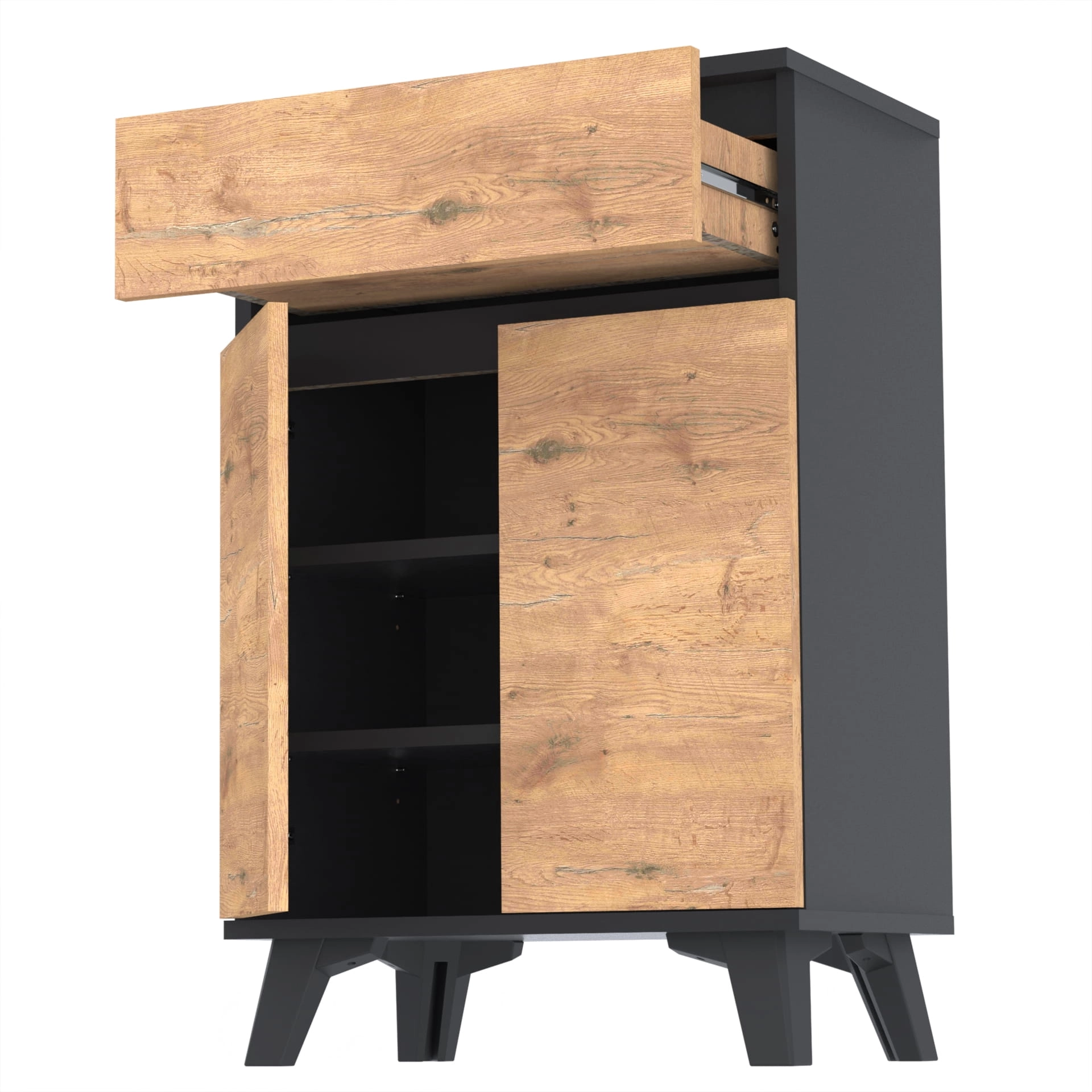 Wyprodukowana w Polsce, ta szafka jest doskonałym rozwiązaniem do przedpokoju. Idealna do przechowywania butów oraz innych przedmiotów codziennego użytku. Jej uniwersalny design sprawia, że pasuje do większości aranżacji wnętrz.