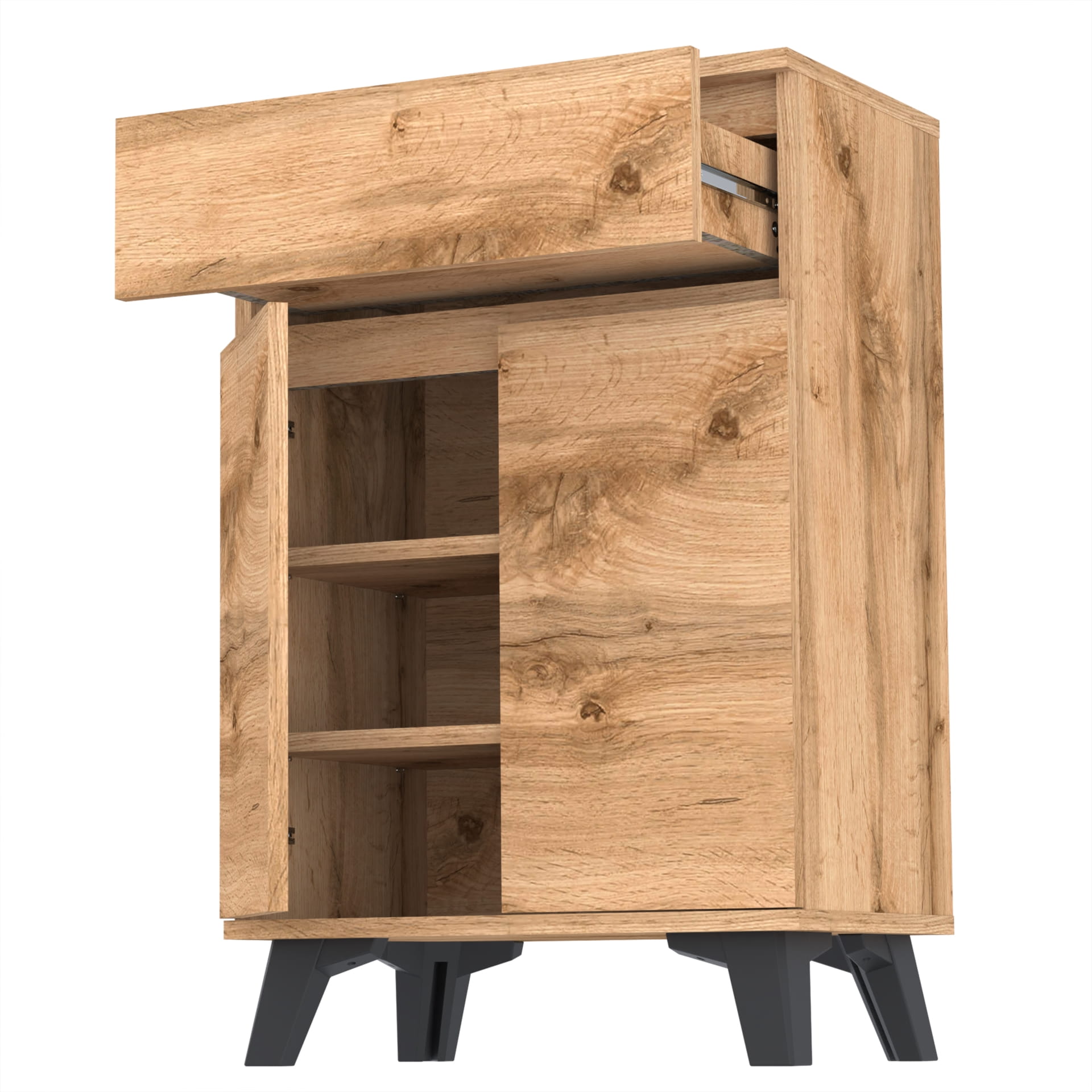 Wyprodukowana w Polsce, ta szafka jest doskonałym rozwiązaniem do przedpokoju. Idealna do przechowywania butów oraz innych przedmiotów codziennego użytku. Jej uniwersalny design sprawia, że pasuje do większości aranżacji wnętrz.