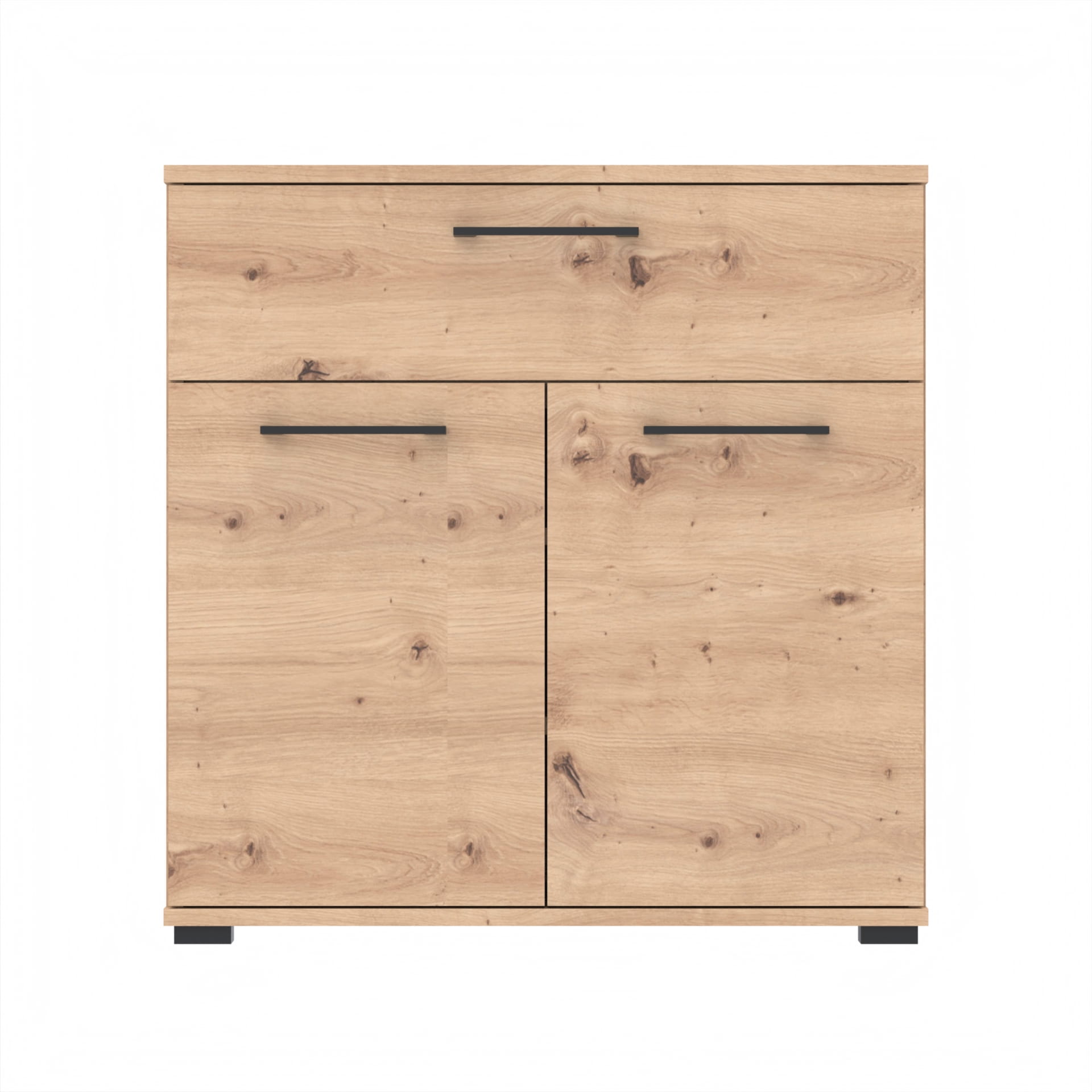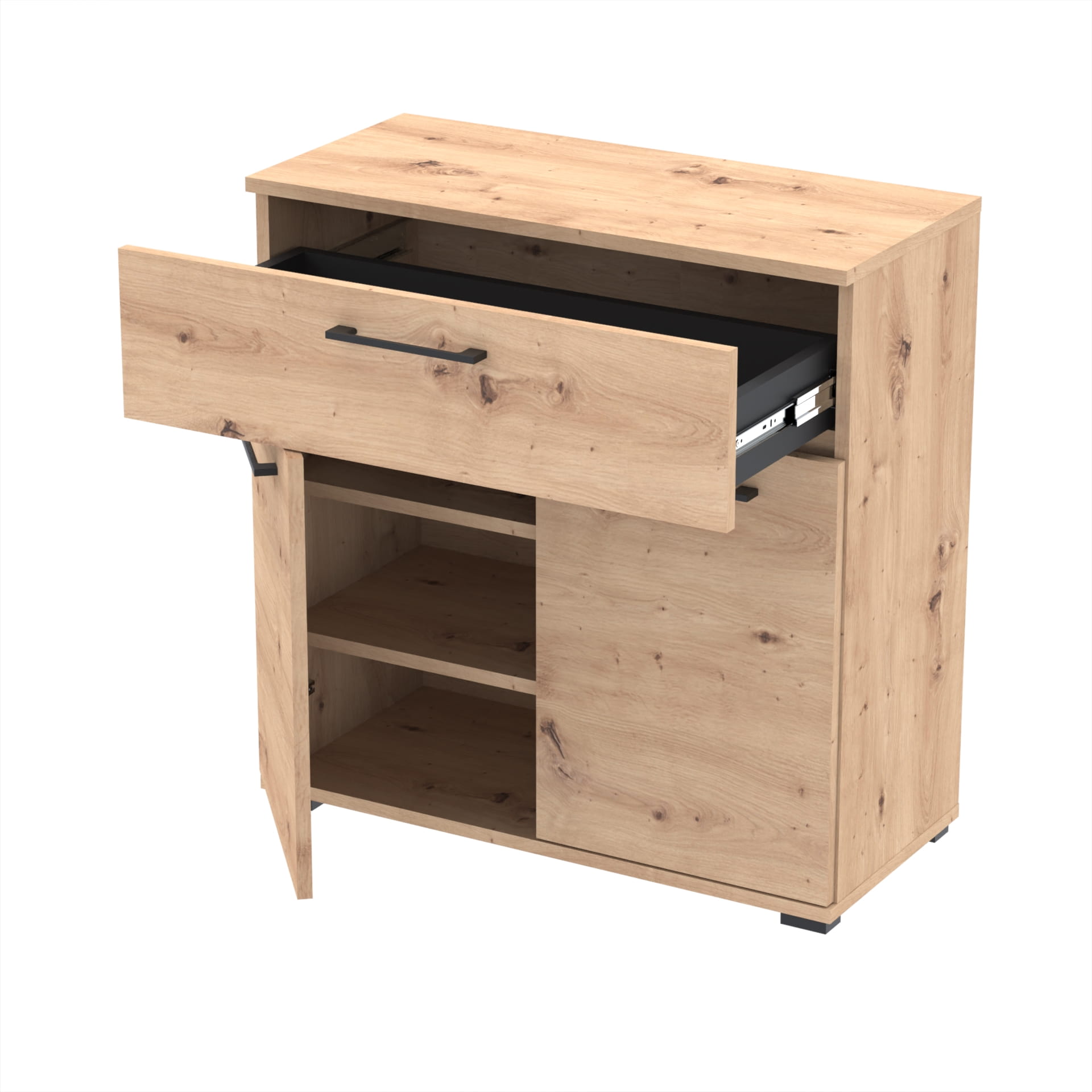 Szafka zawiera szufladę z twardym dnem który nie ugina się pod ciężarem przedmiotów.