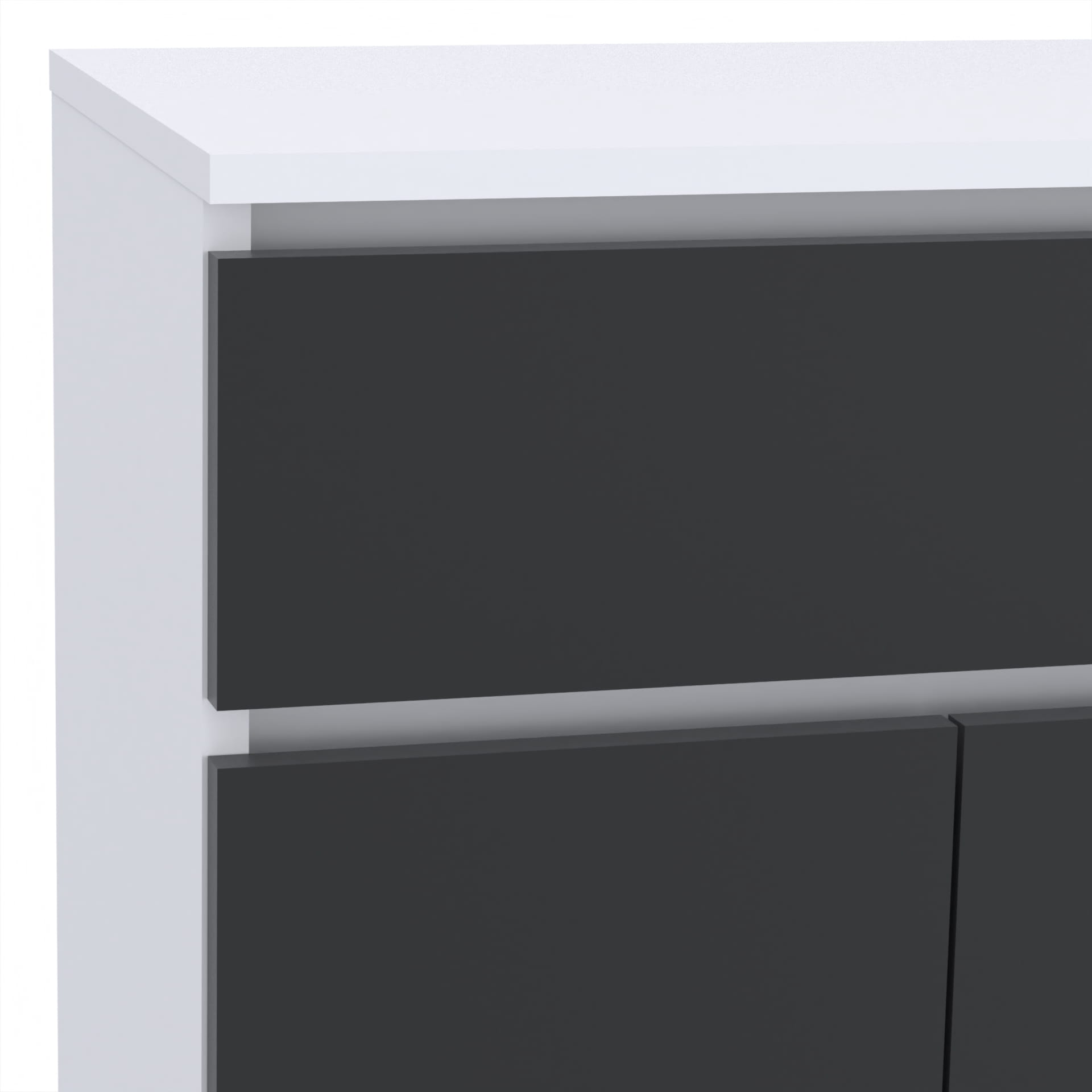 Wykonana z 18mm płyty meblowej, szafka posiada twarde, odporne na uderzenia obrzeże ABS, co zapewnia jej długą żywotność i odporność na codzienne użytkowanie. Szuflada jest wyposażona w twardy dół, który nie ugina się pod ciężarem przechowywanych przedmiotów, zapewniając bezpieczne przechowywanie.