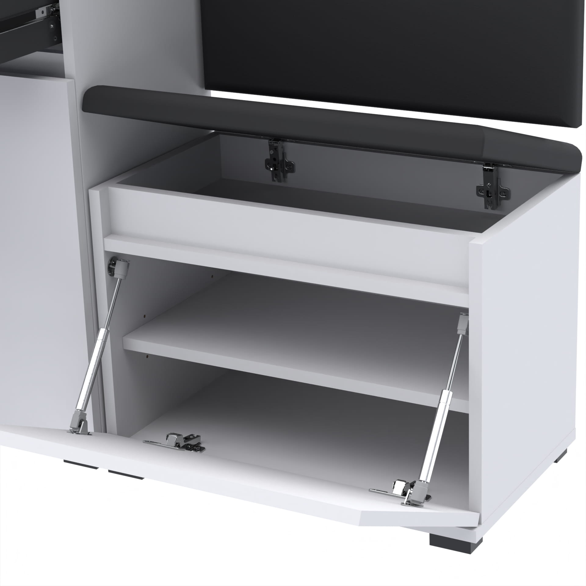 Wewnątrz szafki umieszczona jest regulowana w 3 pozycjach półka, dająca możliwość umieszczenia większej ilości butów.