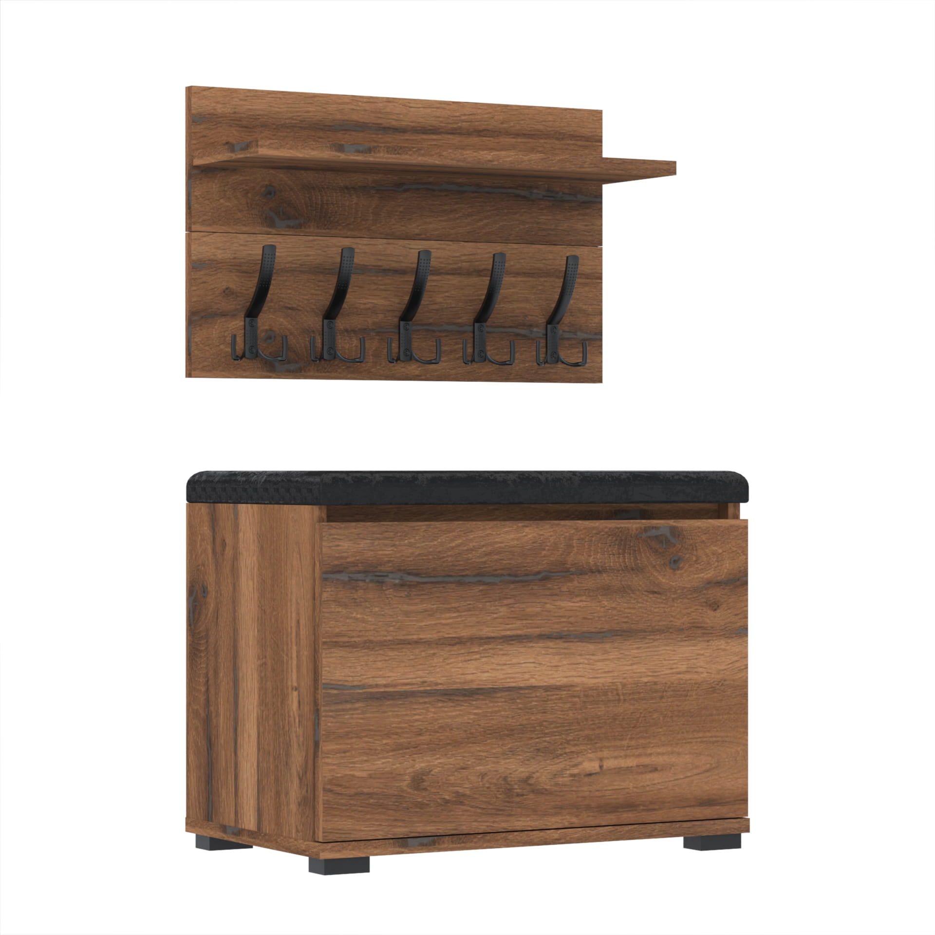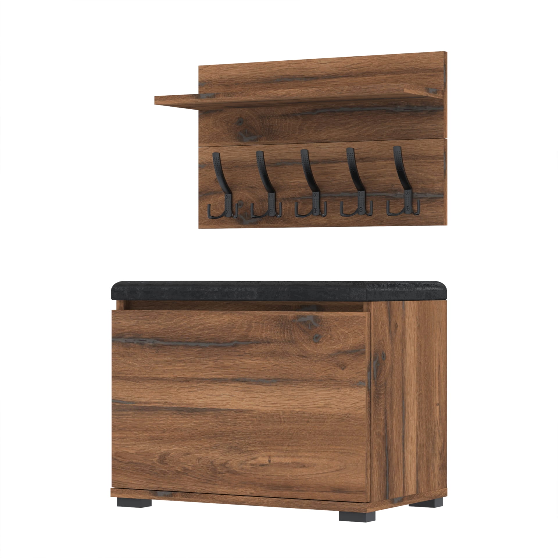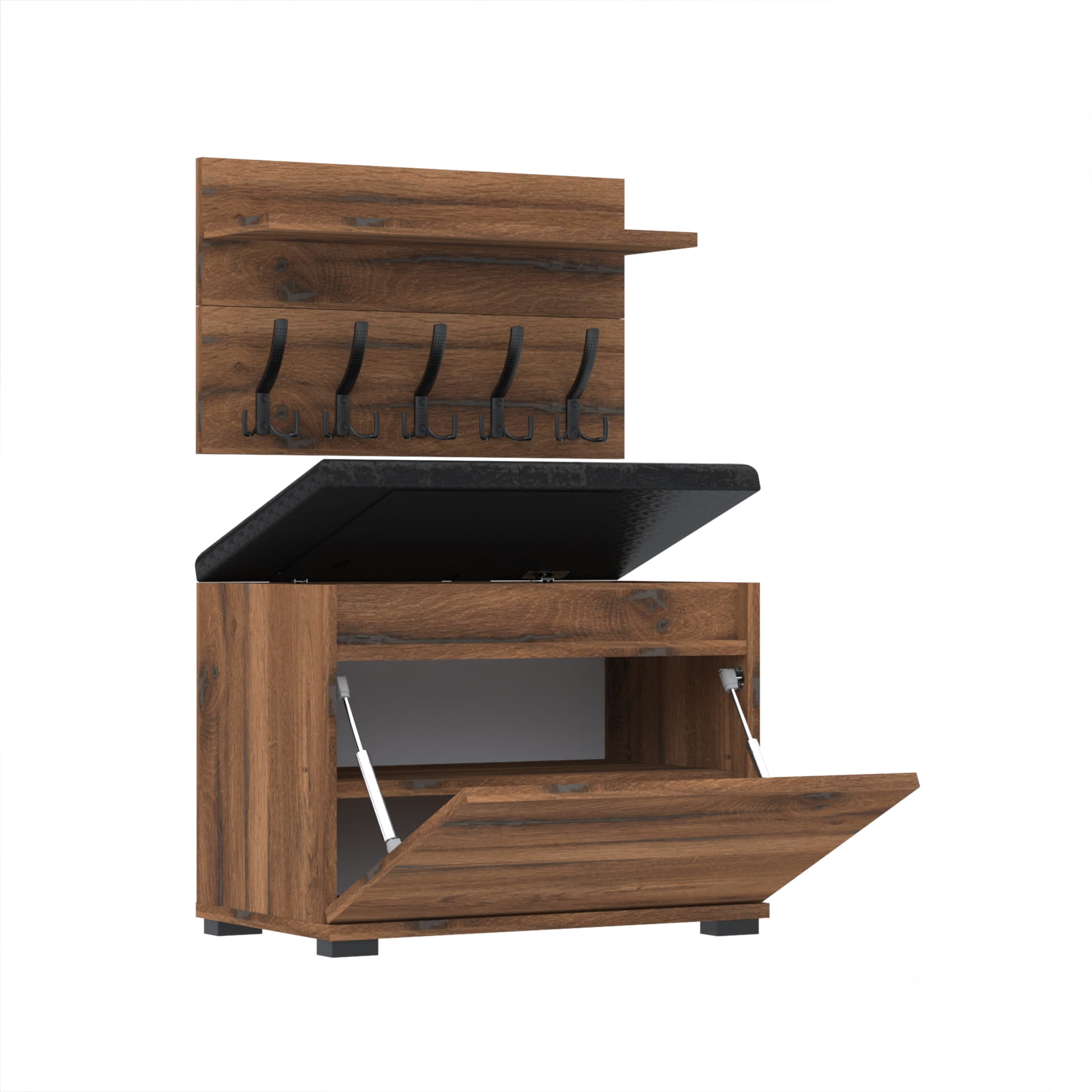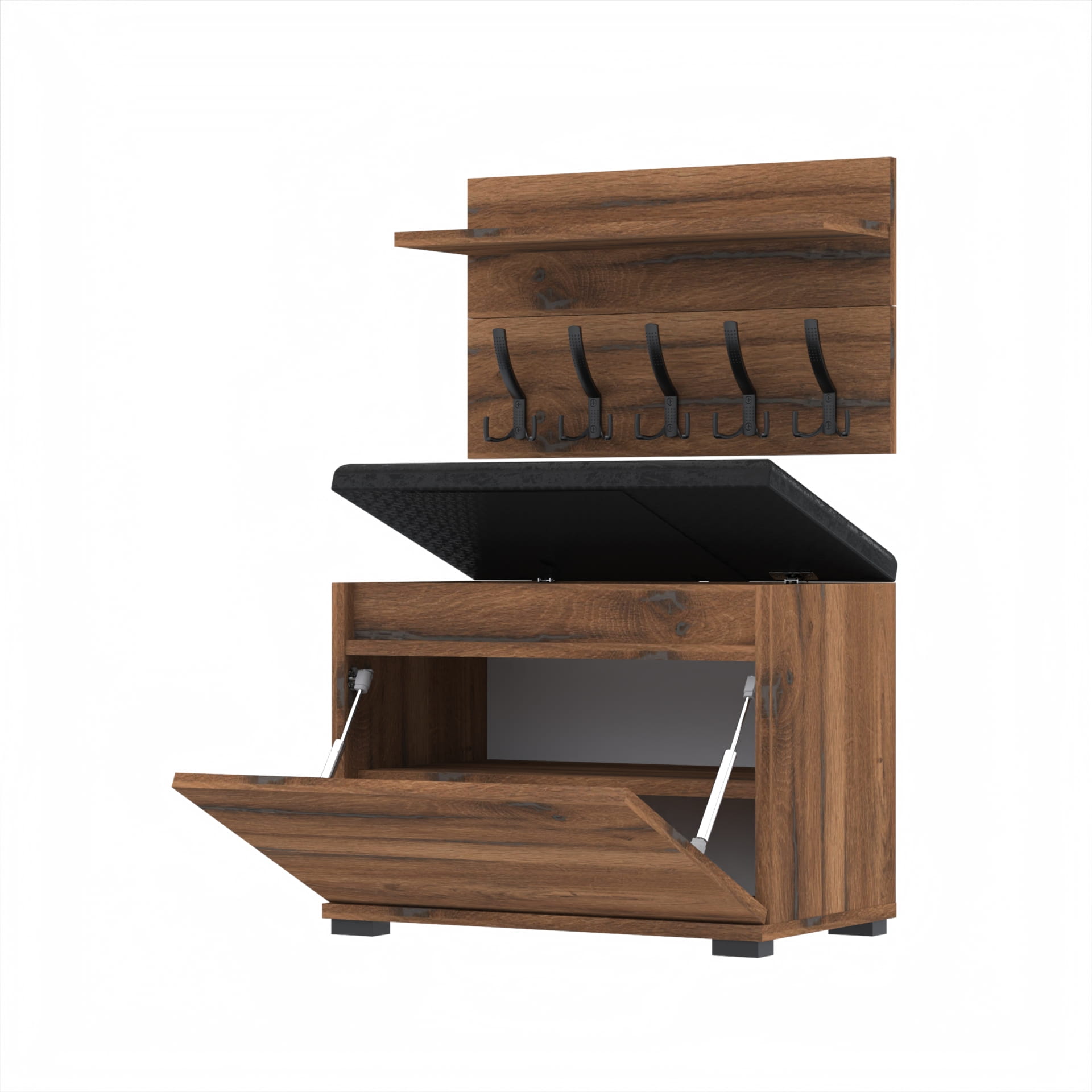 Szafka na buty z siedziskiem tapicerowanym, schowkiem plus wieszak ścienny