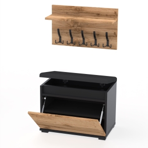 Szafka na buty z siedziskiem tapicerowanym, schowkiem plus wieszak ścienny