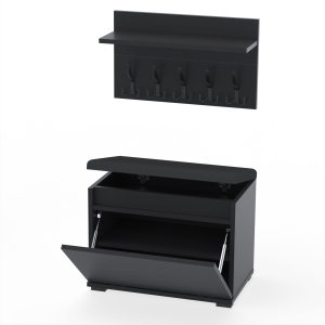 Szafka na buty z siedziskiem tapicerowanym, schowkiem plus wieszak ścienny