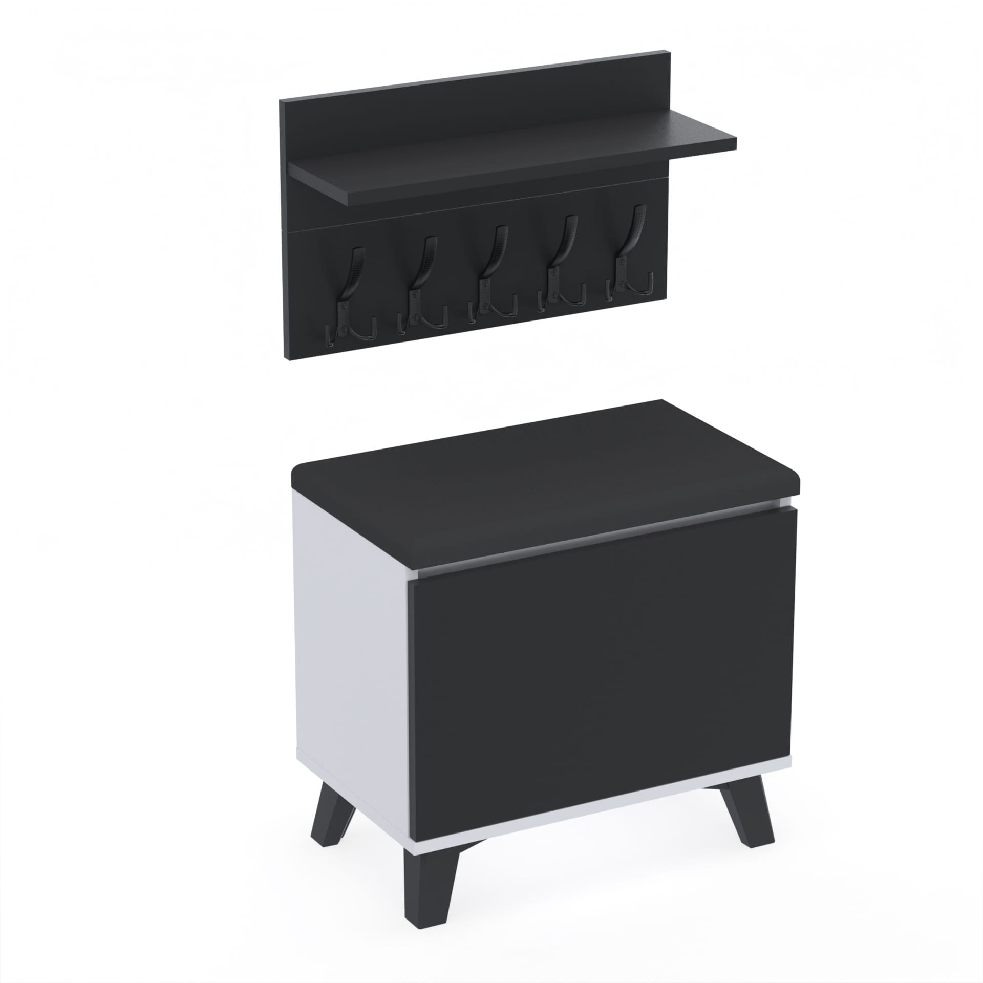 Szafka na buty z siedziskiem tapicerowanym, schowkiem plus wieszak ścienny