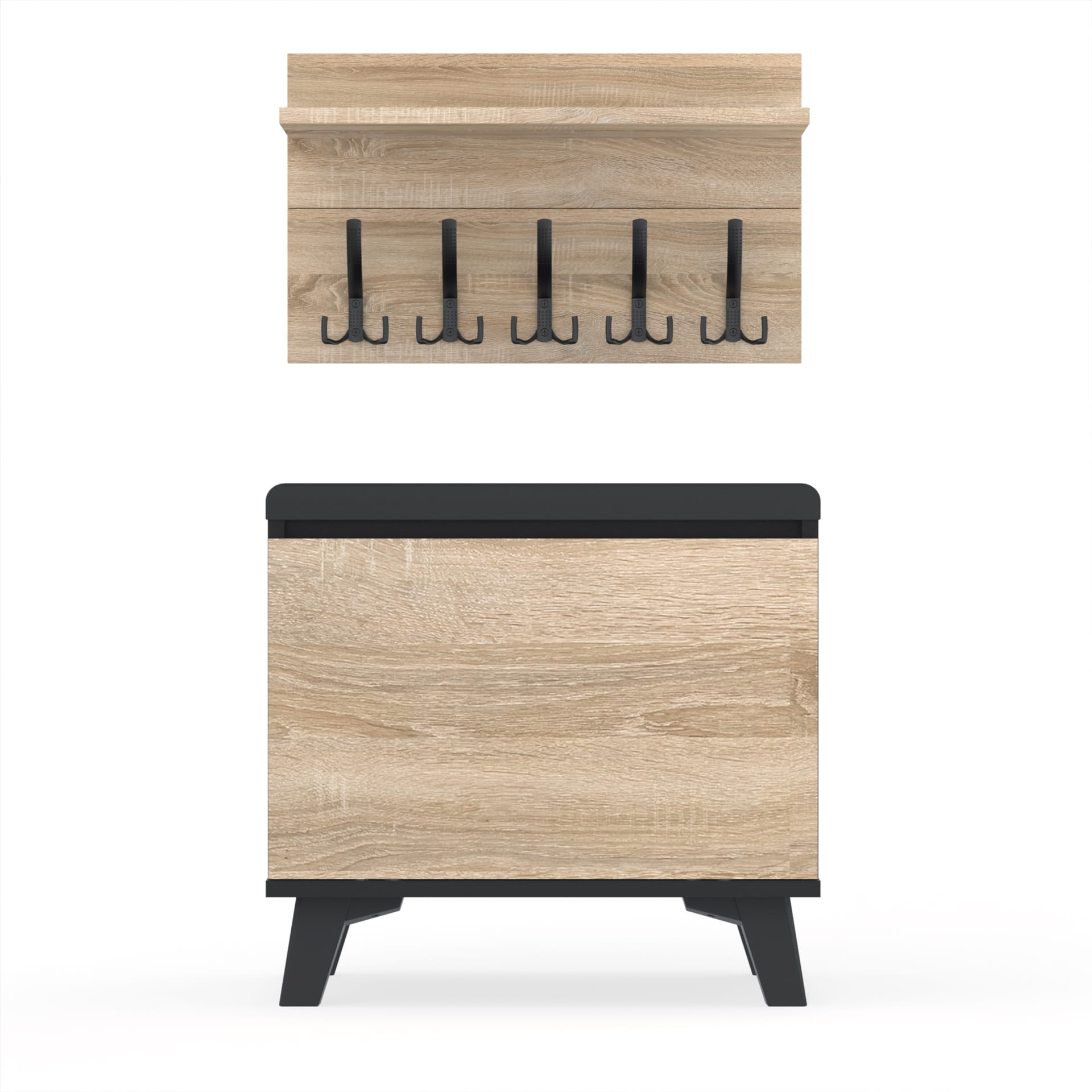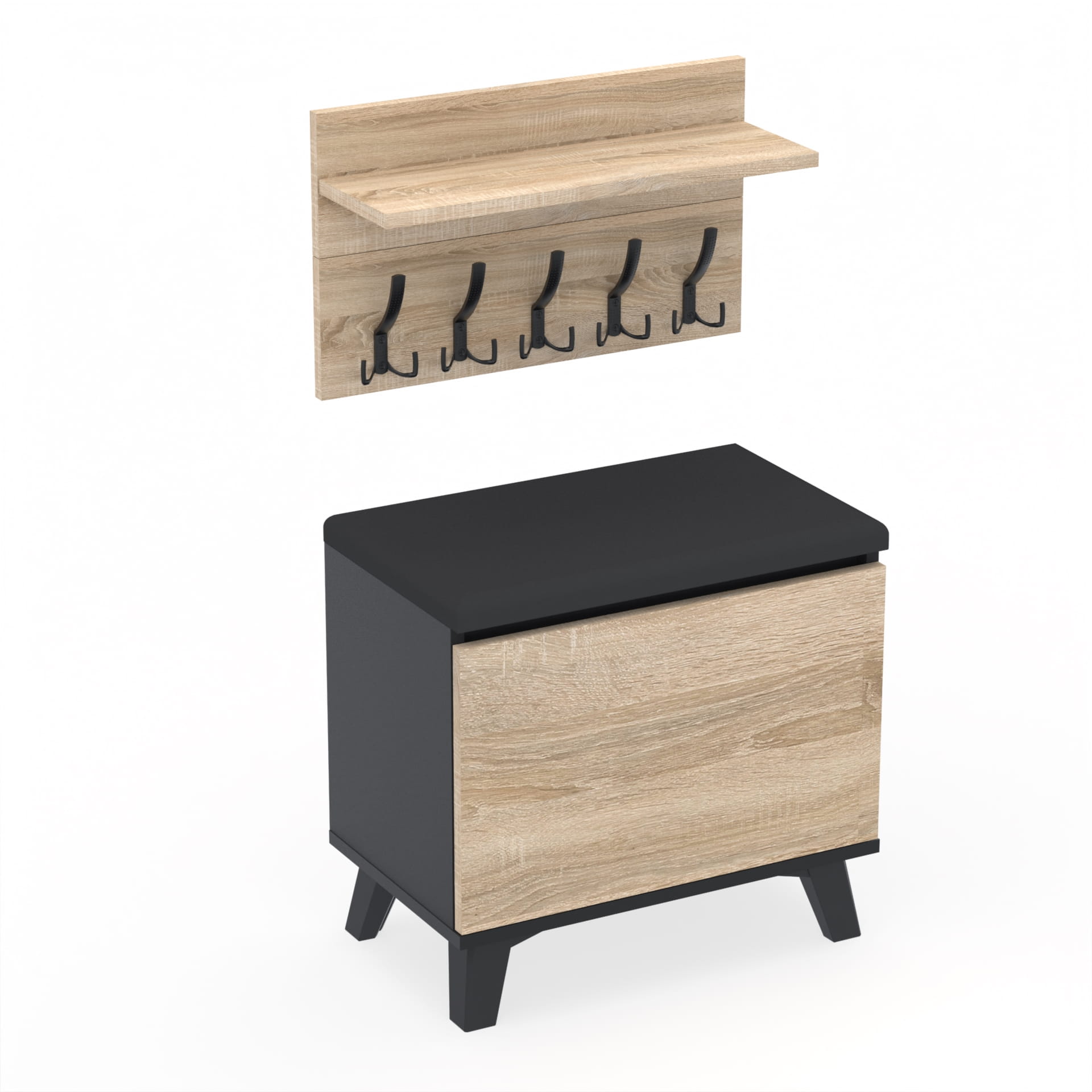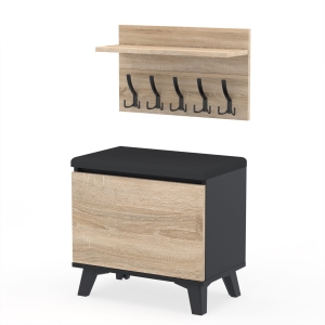 Szafka na buty z siedziskiem tapicerowanym, schowkiem plus wieszak ścienny