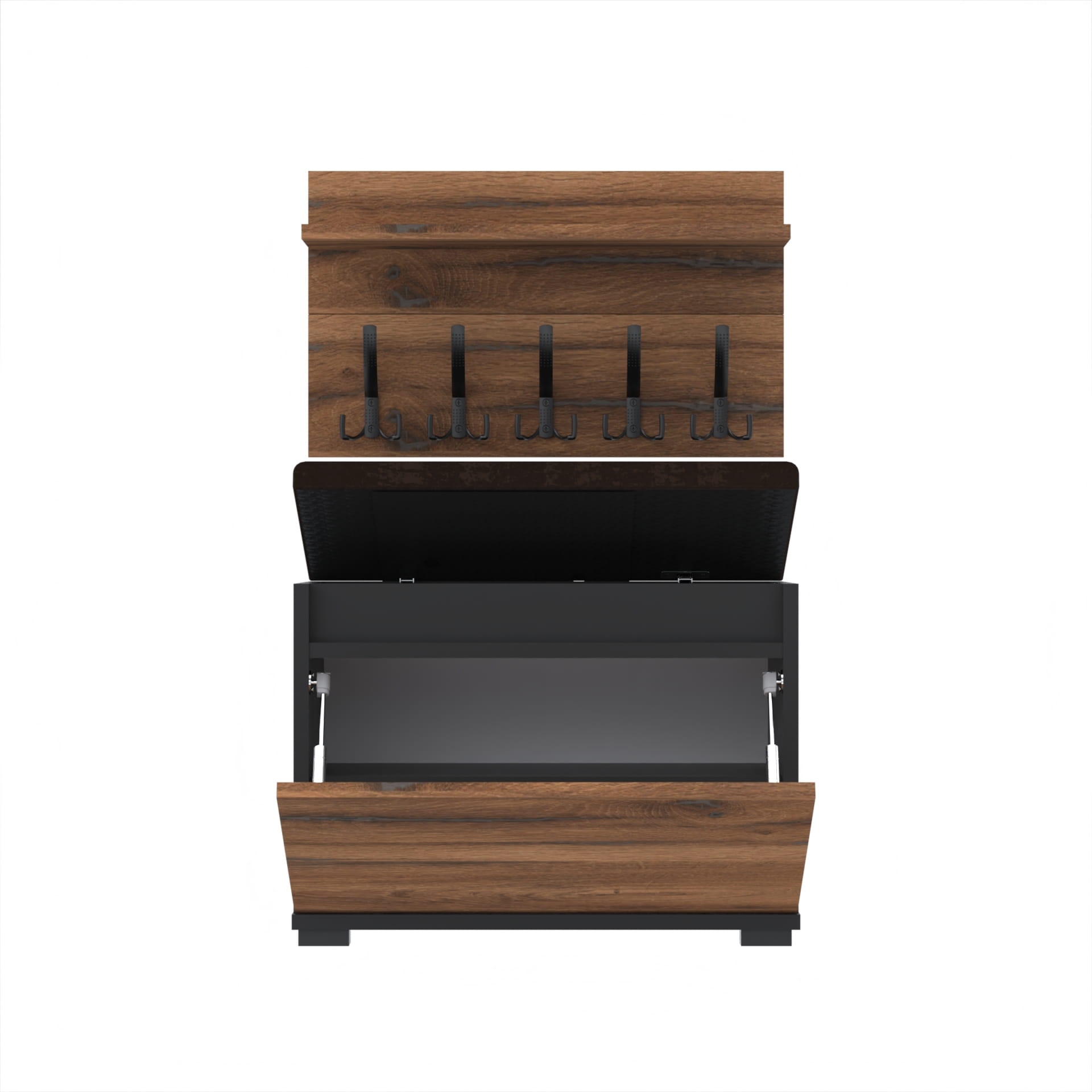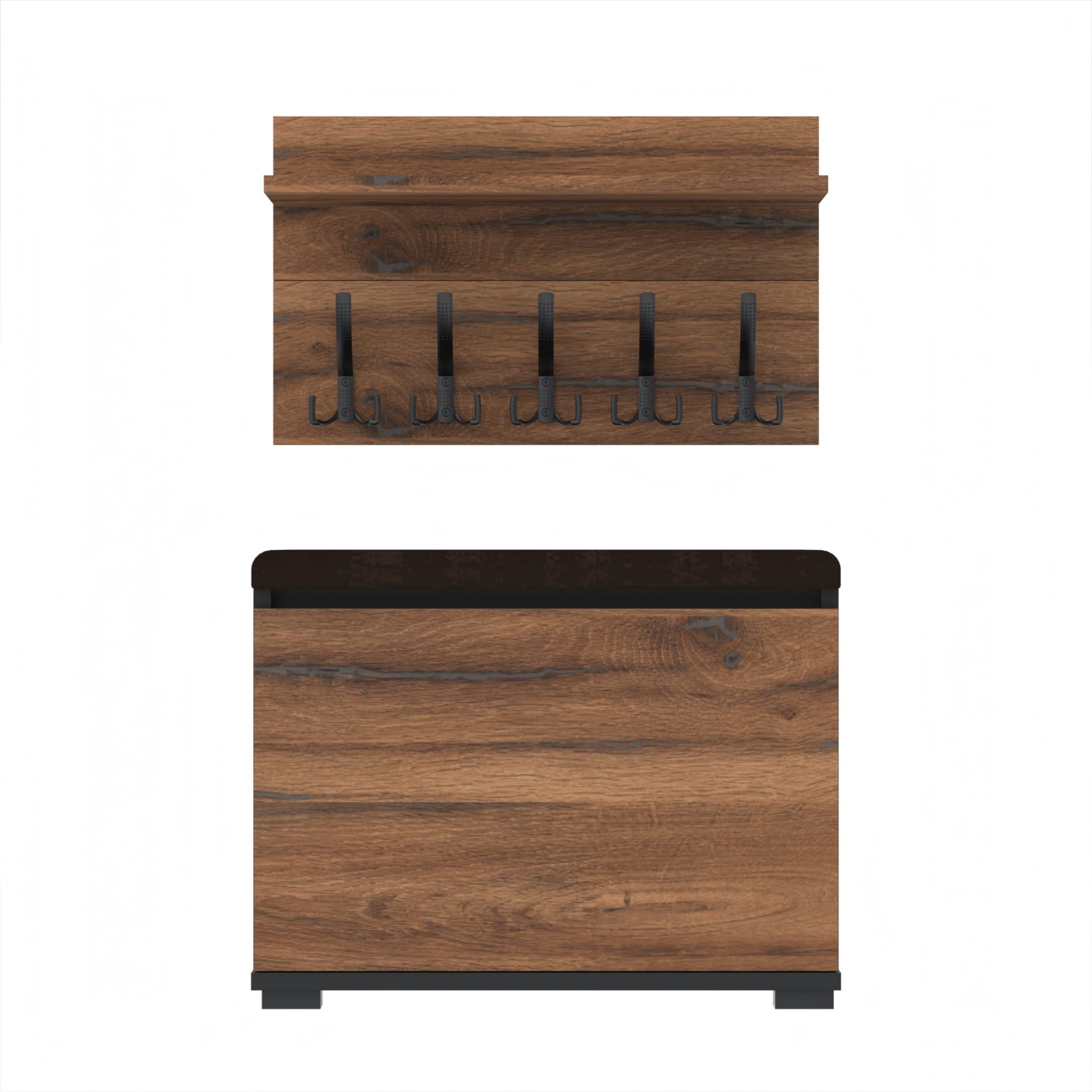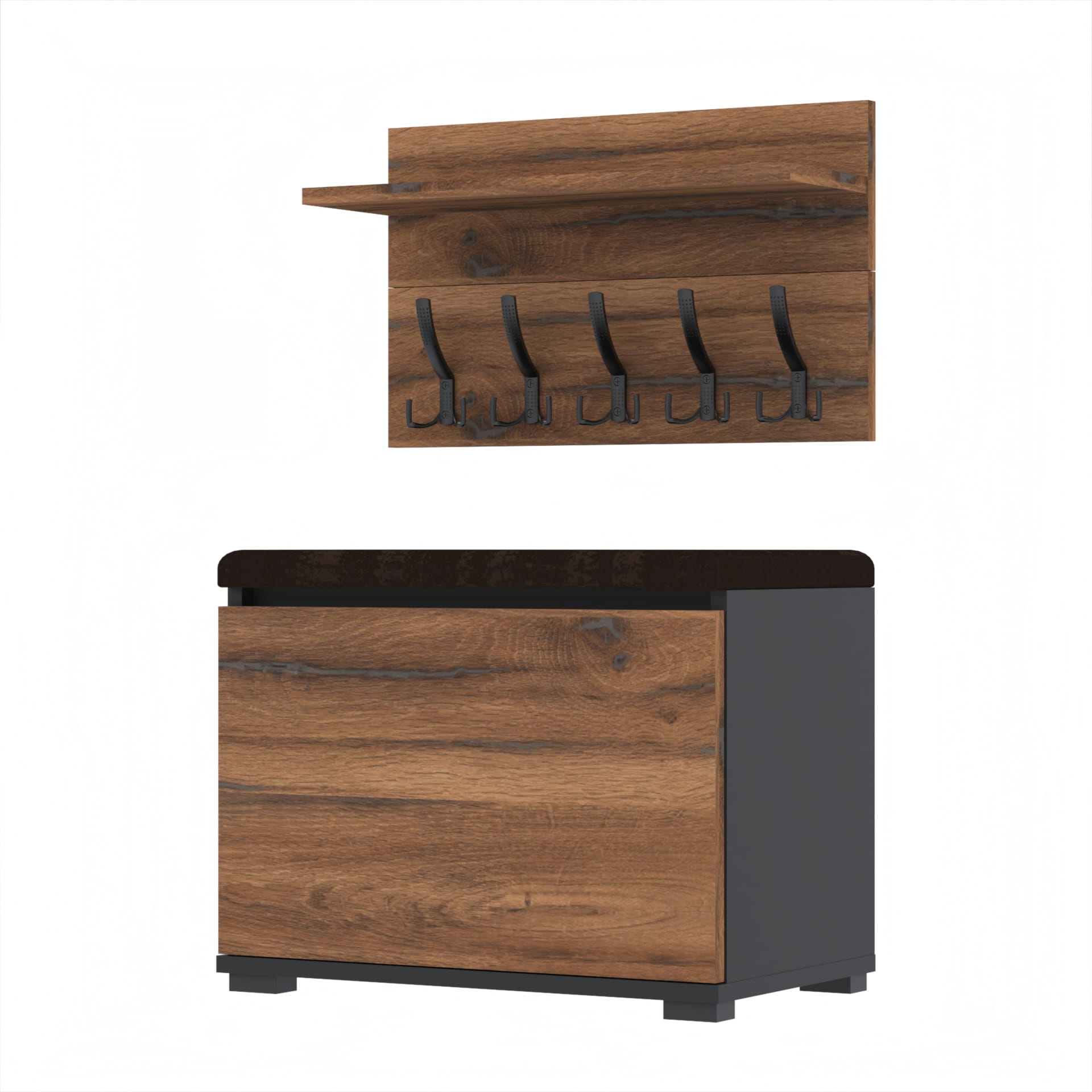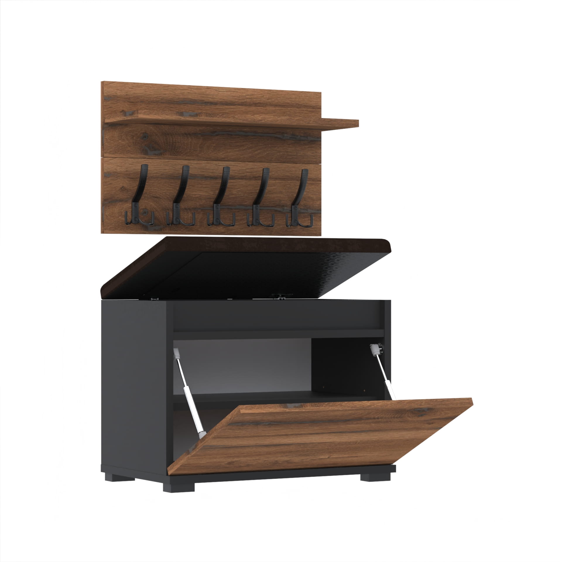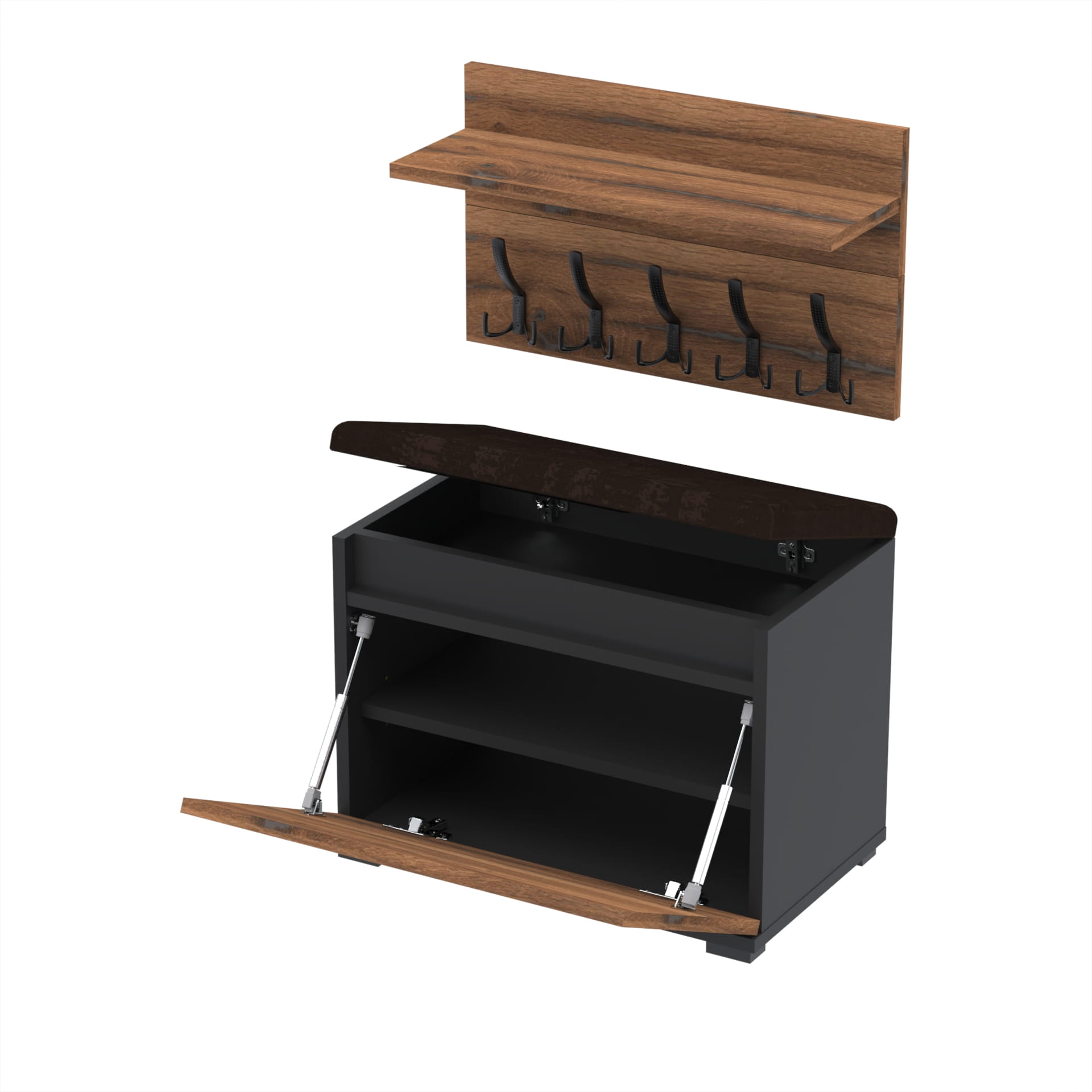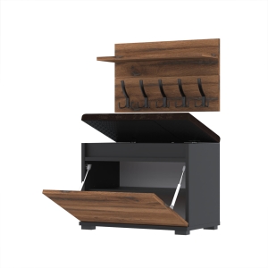 Szafka na buty z siedziskiem tapicerowanym, schowkiem plus wieszak ścienny