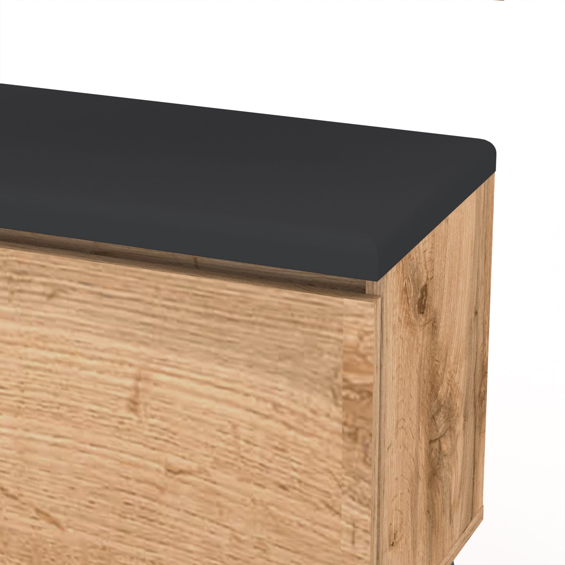 Wykonana jest z grubej, 18 mm płyty meblowej laminowanej, co gwarantuje jej trwałość i odporność na uszkodzenia. Brzegi szafki pokryte są twardym obrzeżem ABS, które jest odporne na uszkodzenia.