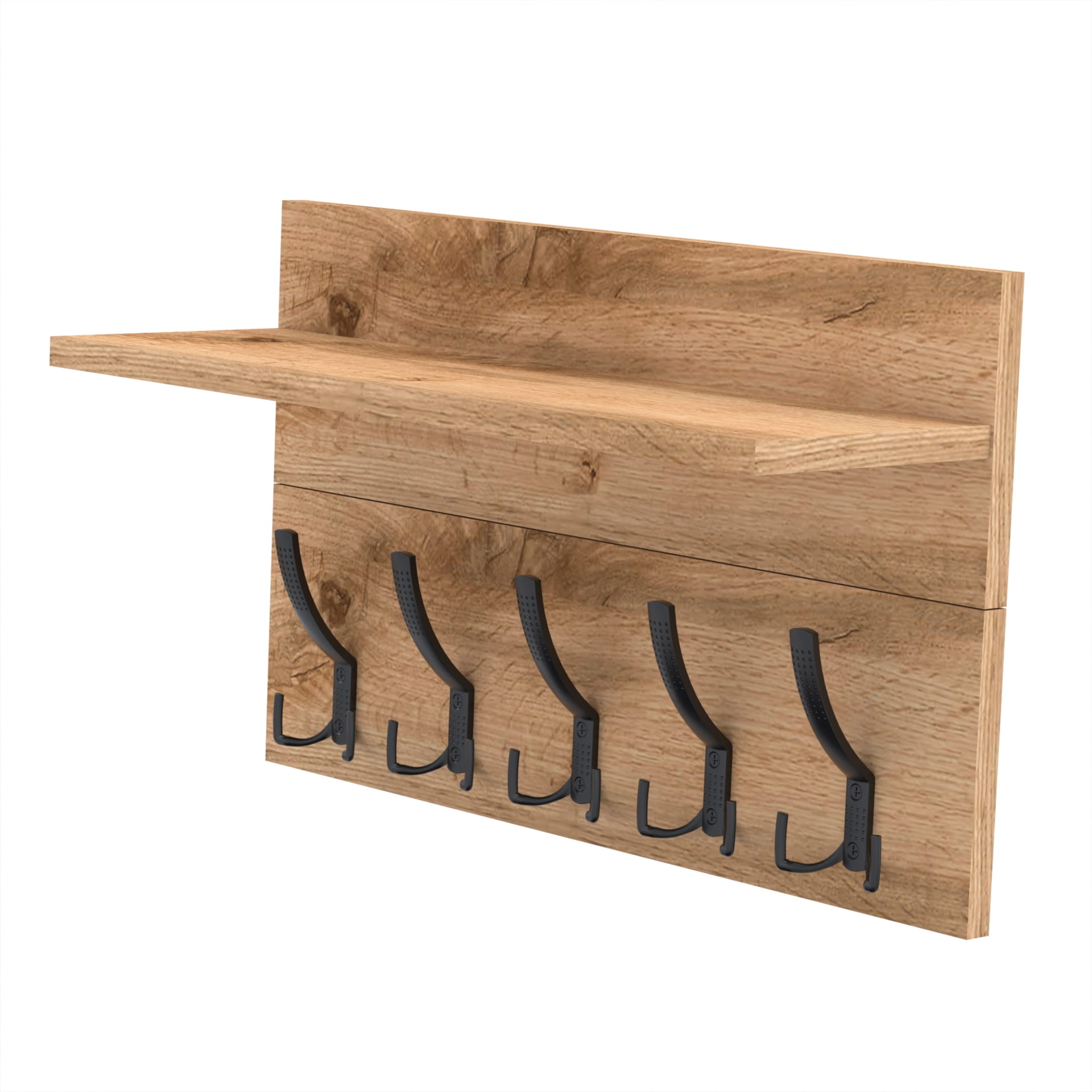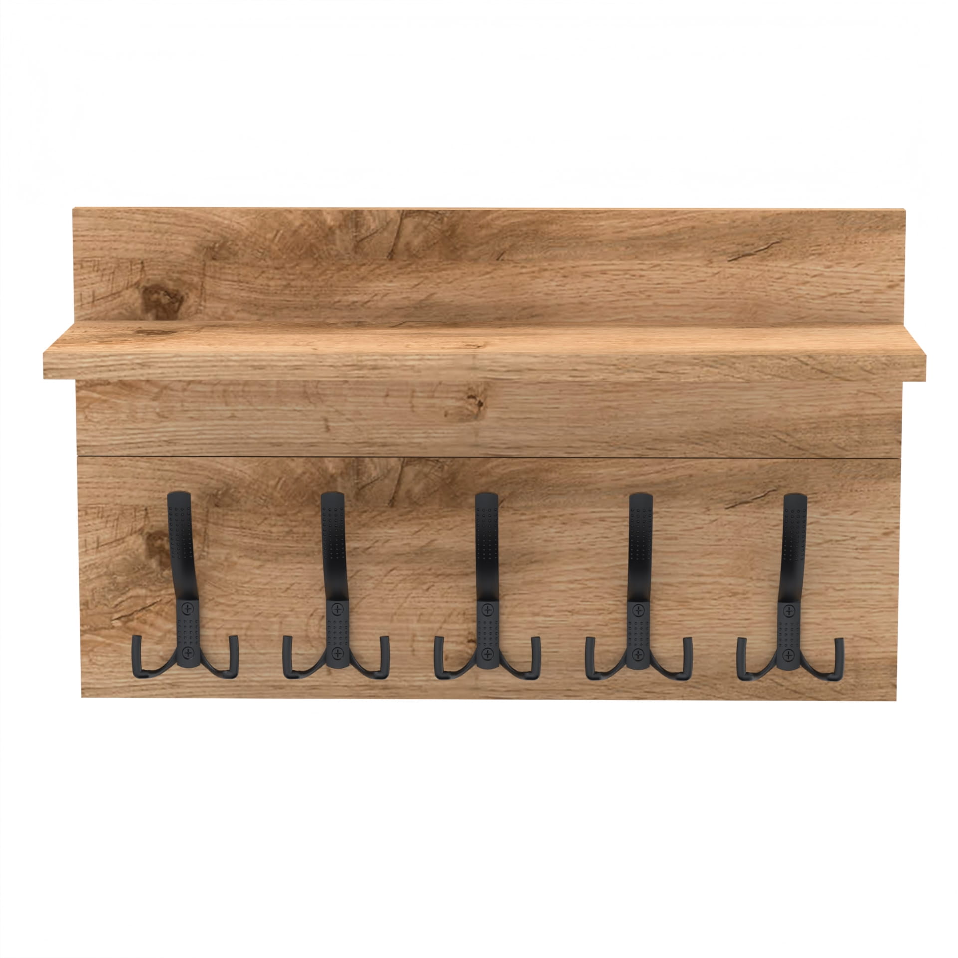 Na górze struktury znajduje się praktyczna półka o głębokości 18 cm, która jest idealna do przechowywania różnych przedmiotów. Półka nie tylko zapewnia dodatkową przestrzeń do przechowywania, ale także stanowi integralną część designu wieszaka, nadając mu ciekawy, nowoczesny wygląd.