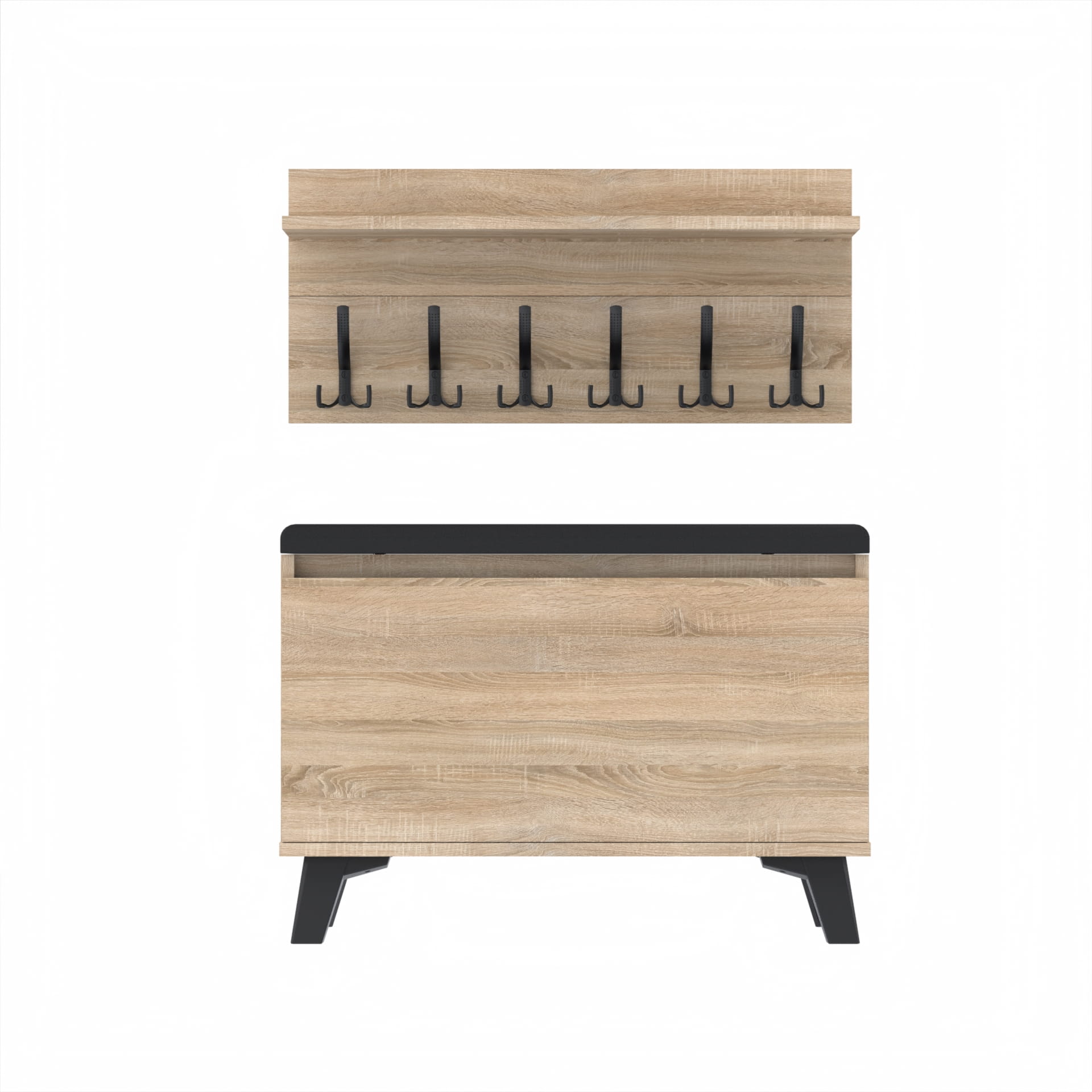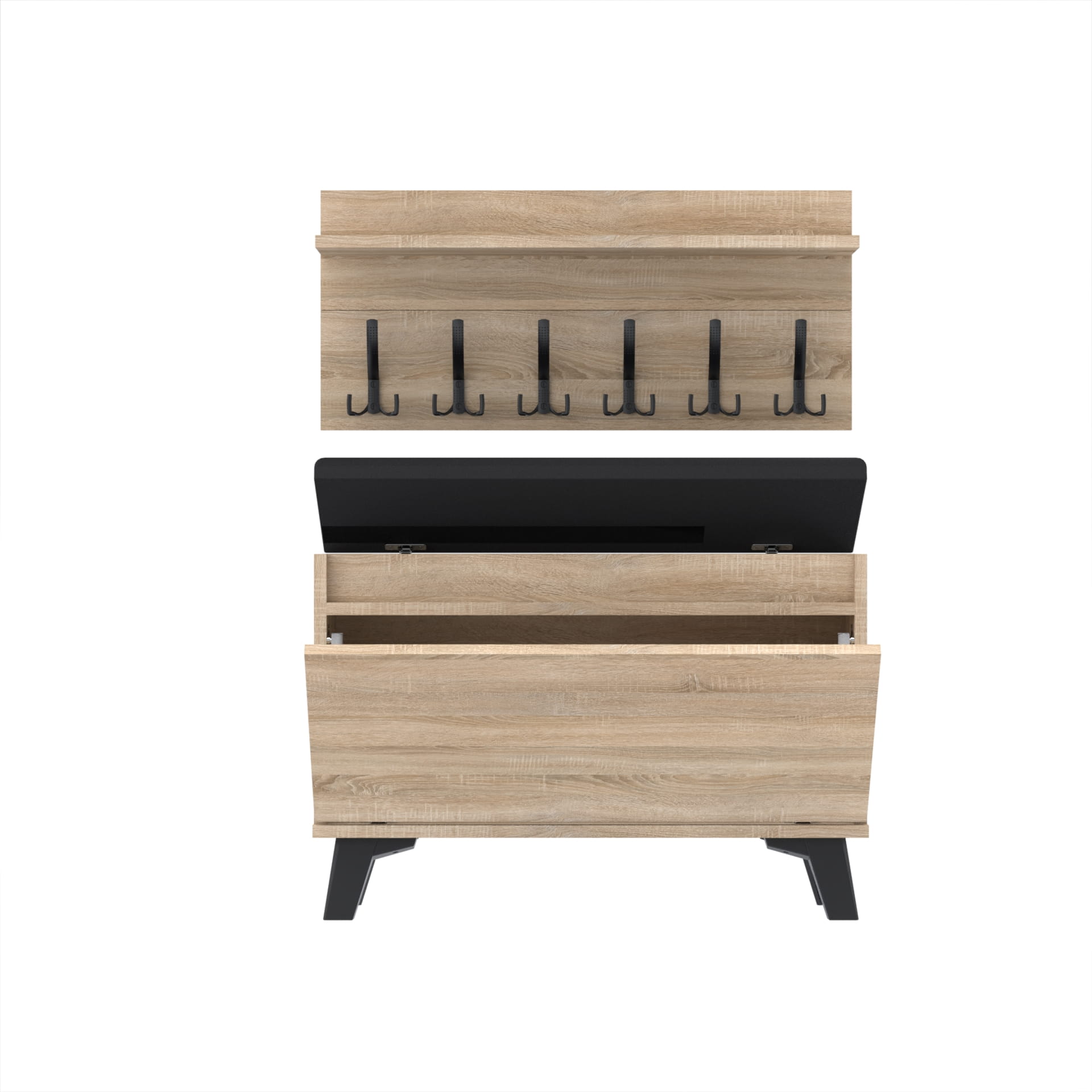 Szafka na buty z siedziskiem tapicerowanym, schowkiem plus wieszak ścienny