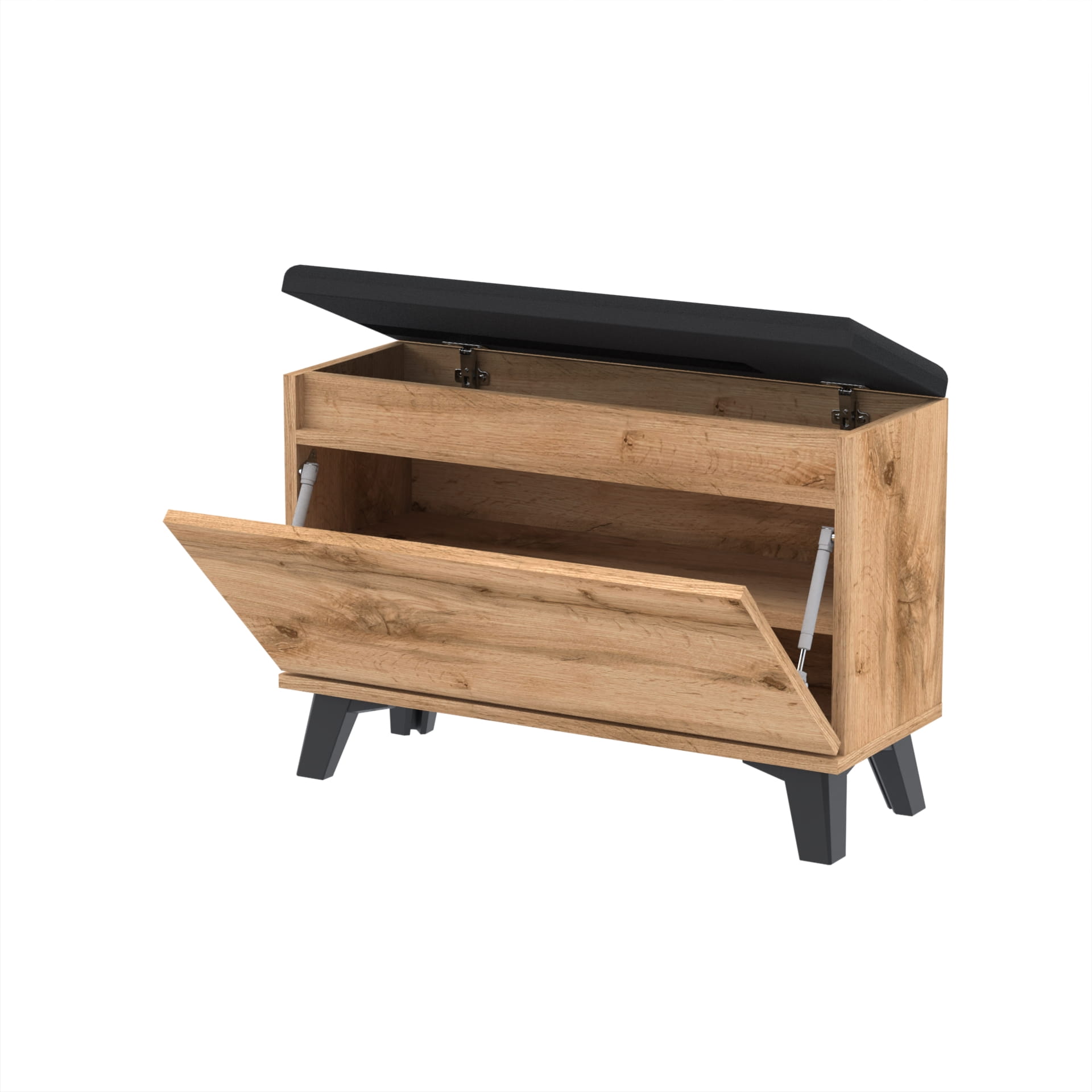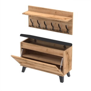 Szafka na buty z siedziskiem tapicerowanym, schowkiem plus wieszak ścienny